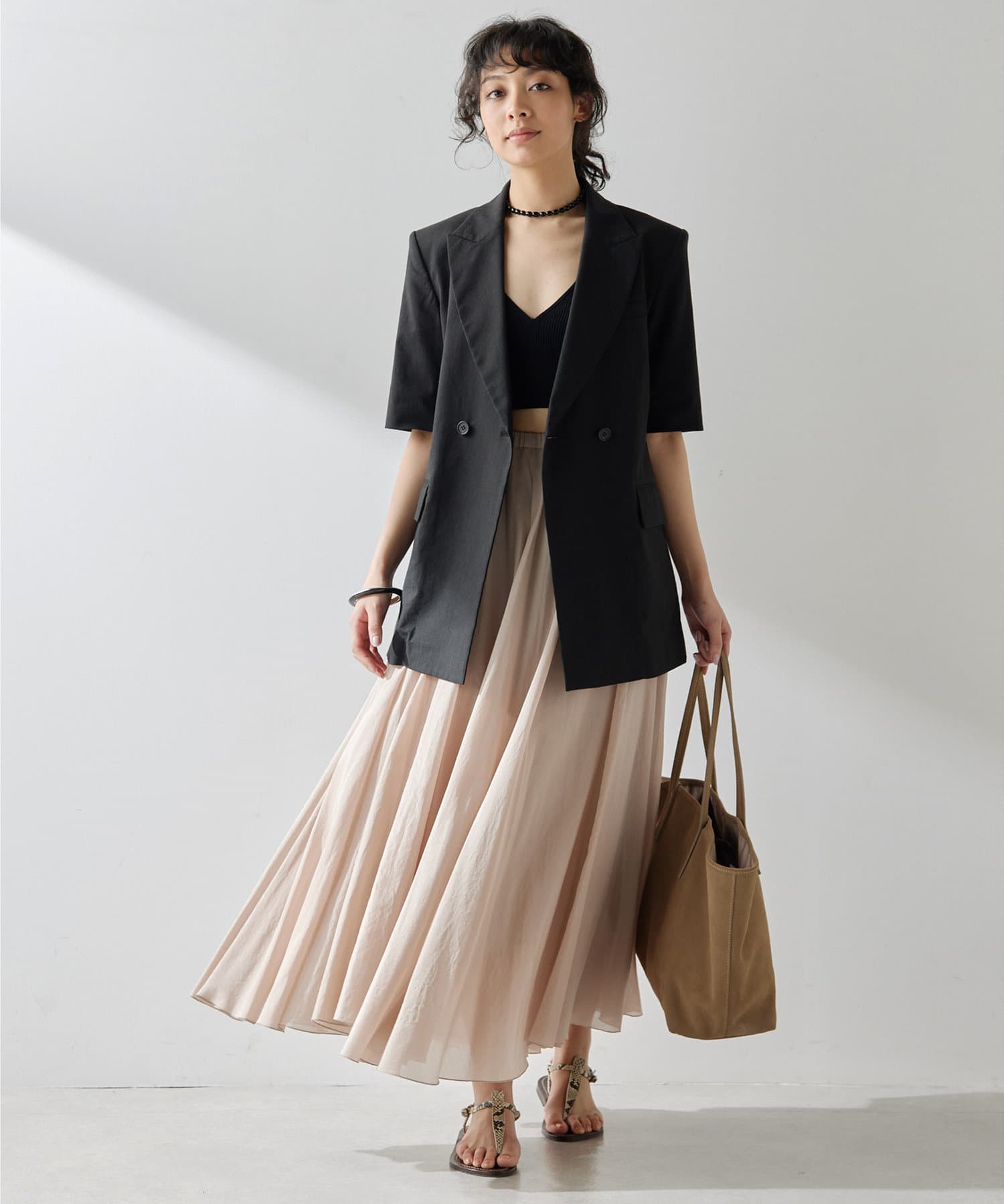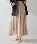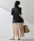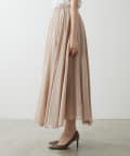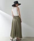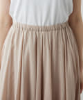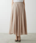 柔らかい素材で夏にピッタリのスカート。程よいプリーツが軽やかで、旅行などにもおすすめ。ウエストは絞れるような仕様なので、楽にはけますよ。