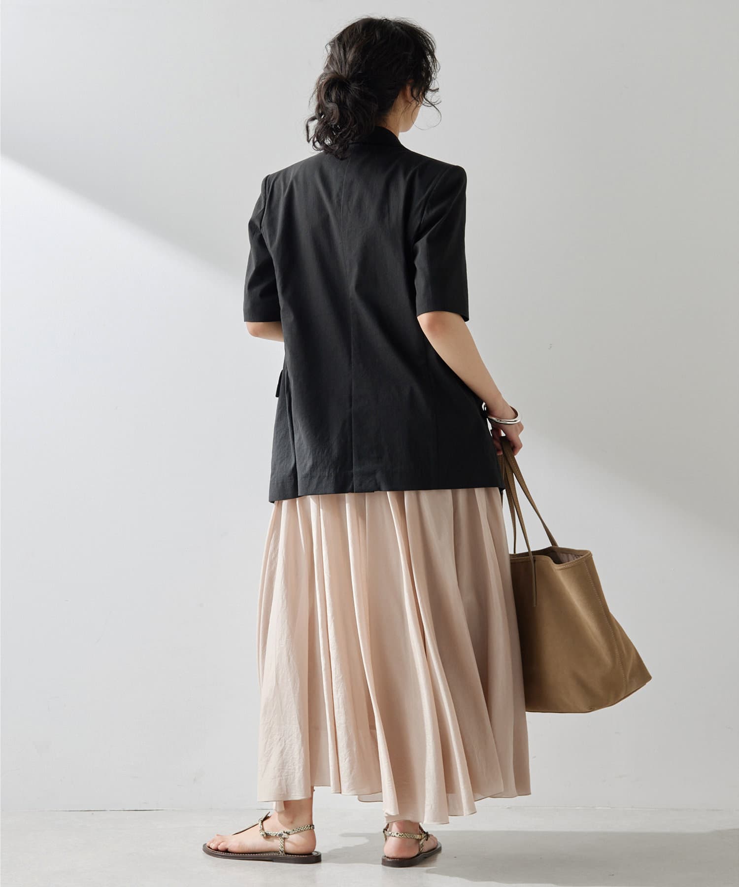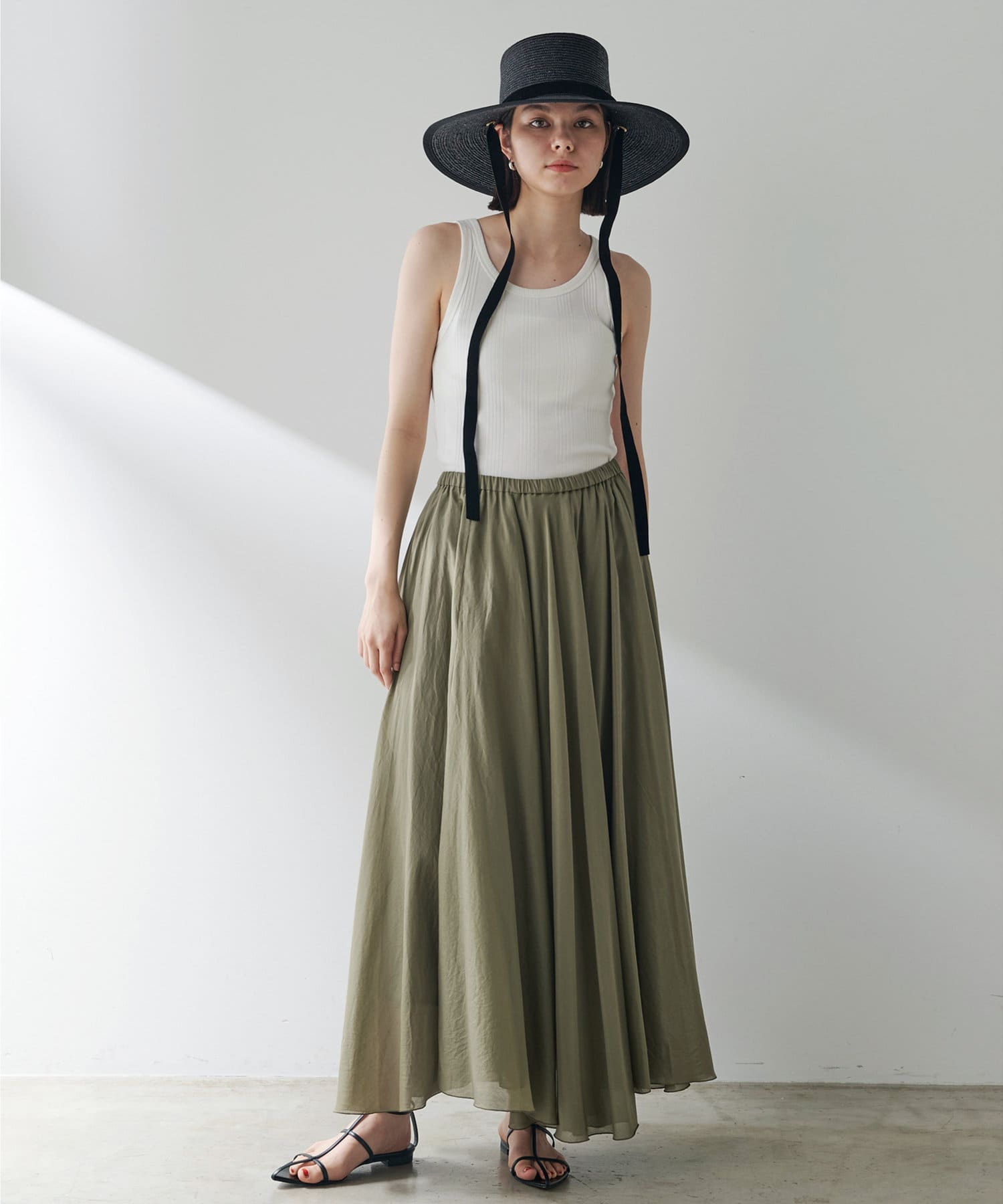 ■たっぷりとギャザー分量を入れたフルレングスで、コーディネートの主役になる一枚。