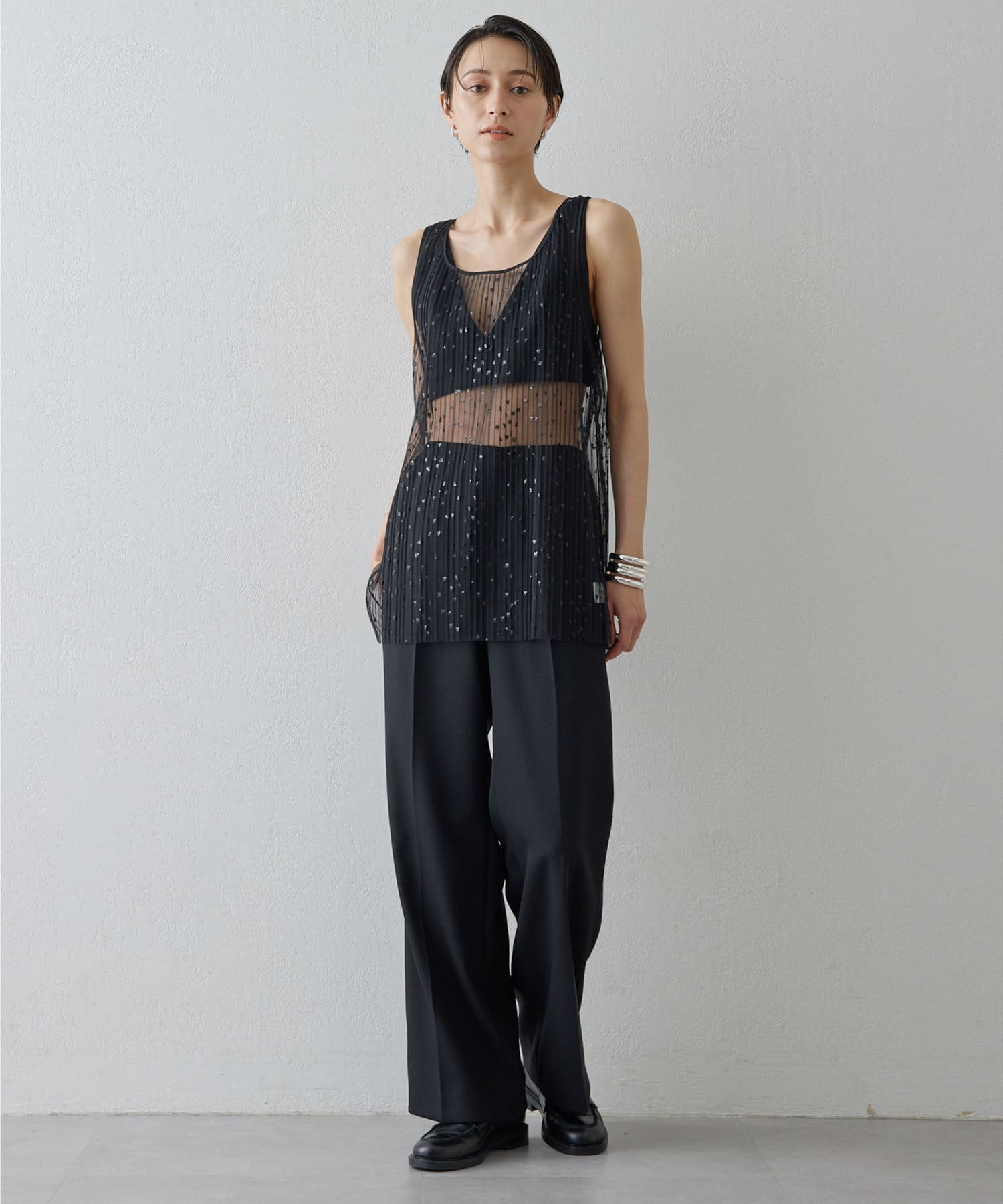 あえてイージーに仕上げた、上品素材のストレートパンツ