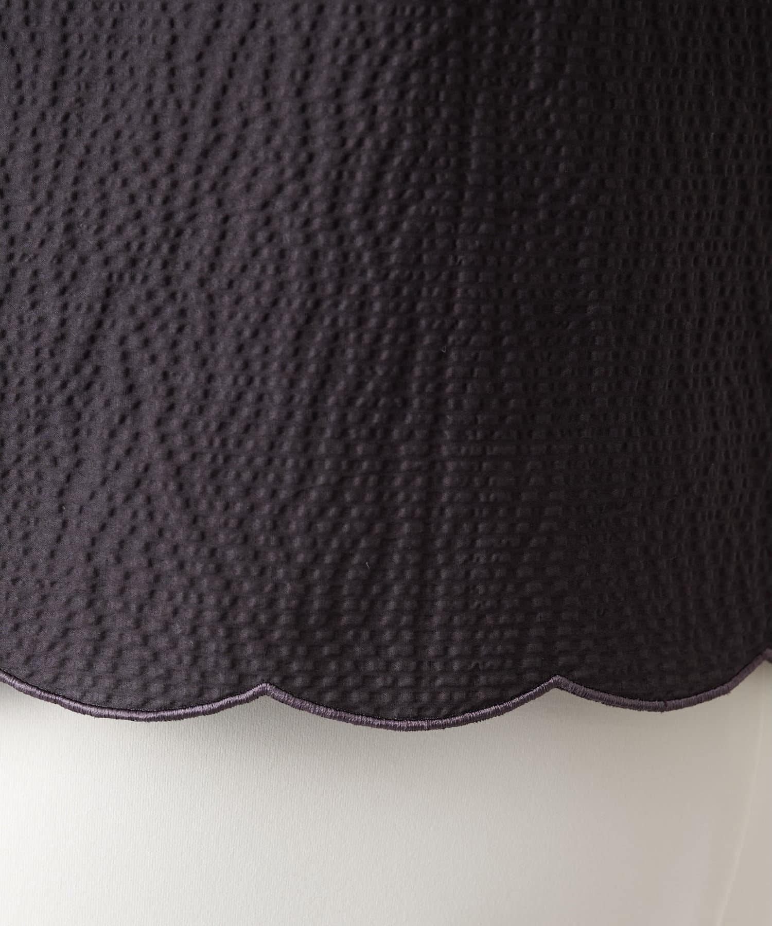 裾がスカラップデザインの上品なブラウス。スカラップとは英語でホタテ貝という意味。半円の波状の縁取りがコーデのポイントに。オフィスカジュアルにもおすすめです。