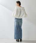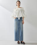 袖口と裾にはゴムが入っていて、自然とふんわりとしたフォルム感が出ます。ボリュームがある分、小顔効果も期待出来るのも◎。甘めのデザインなので、デニムやカーゴパンツなどでカジュアルダウンしていただくのがおすすめです。