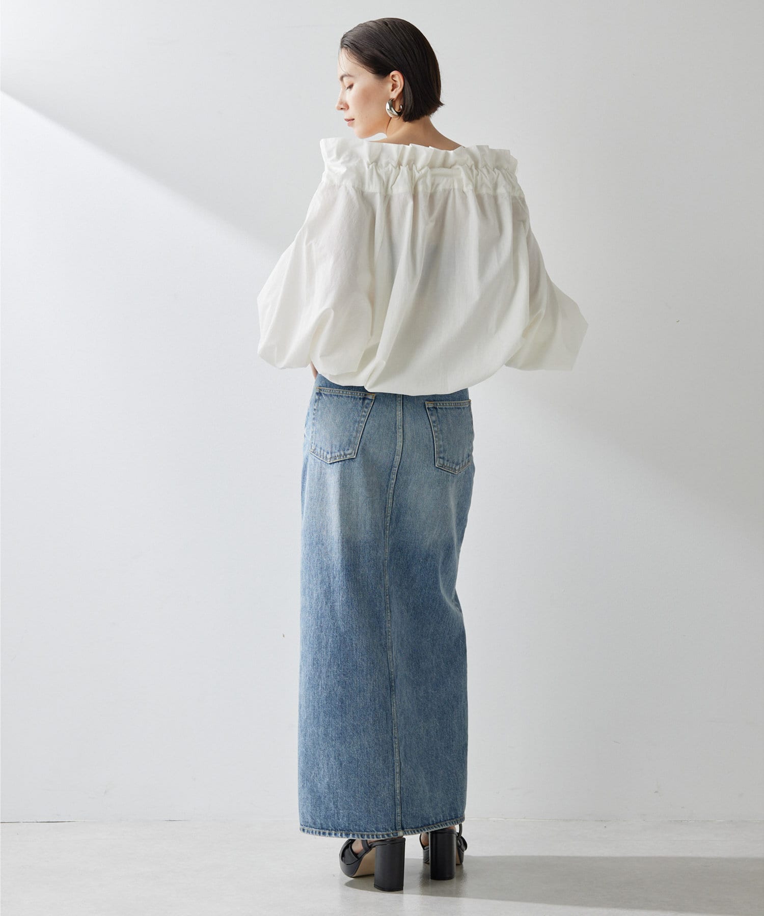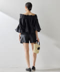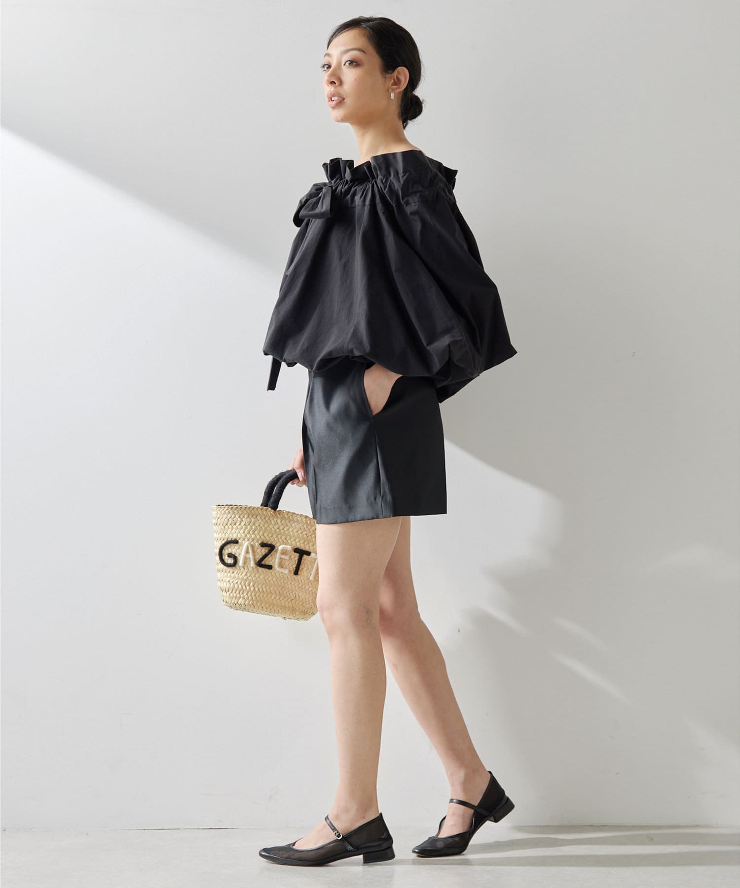 ■ハリのあるタイプライターを使用したギャザーブラウス。