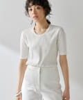 ■程よい開きのネックラインがモダンかつ上品な印象の一枚。
