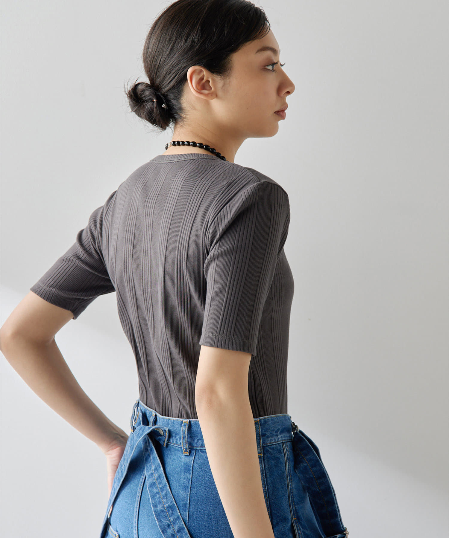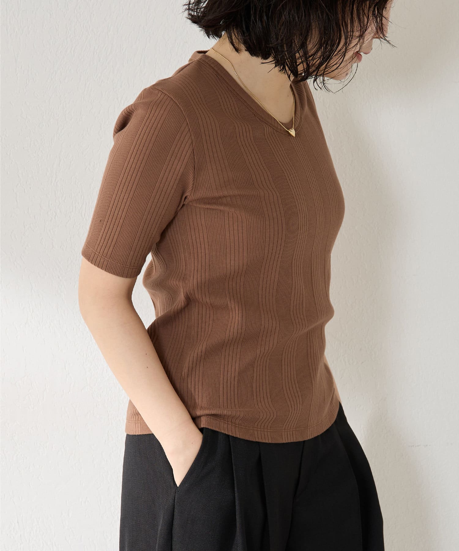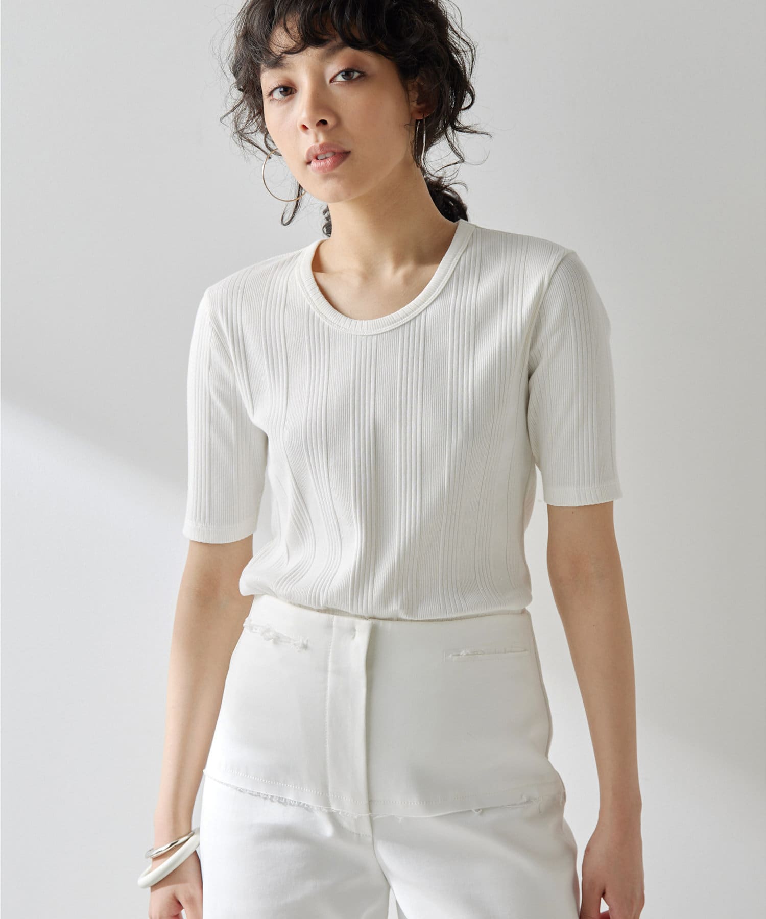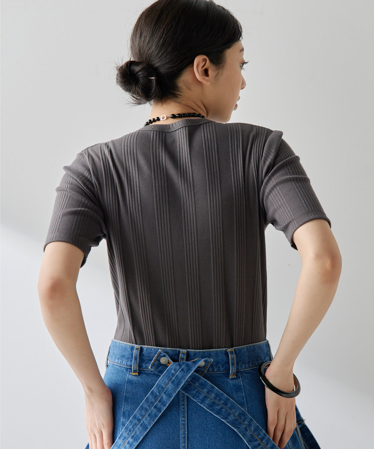 一枚で気軽に楽しめる、大人のランダムリブTシャツ
