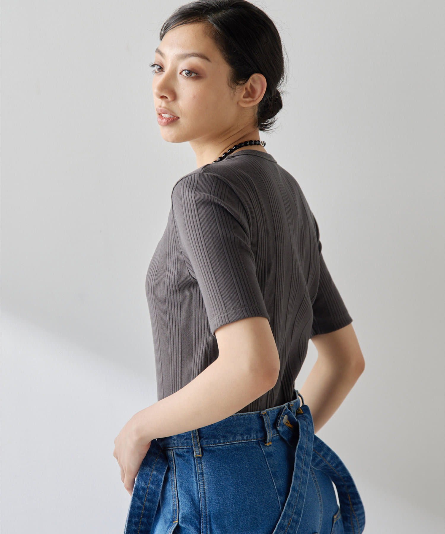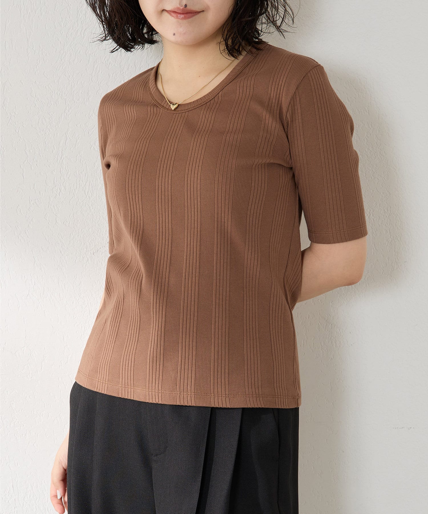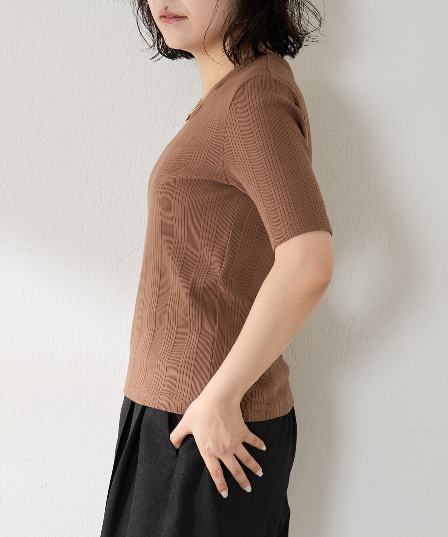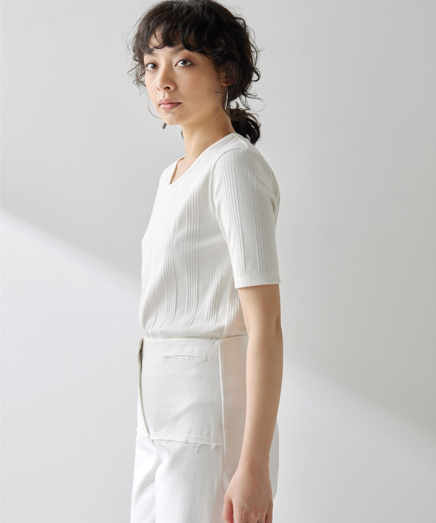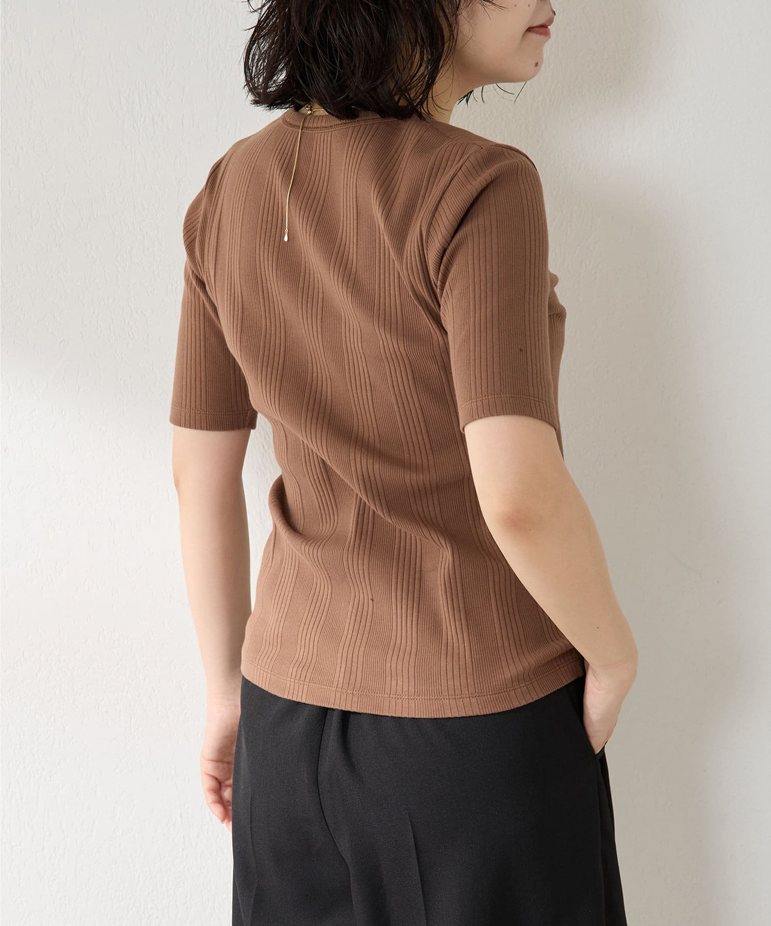 一枚で気軽に楽しめる、大人のランダムリブTシャツ