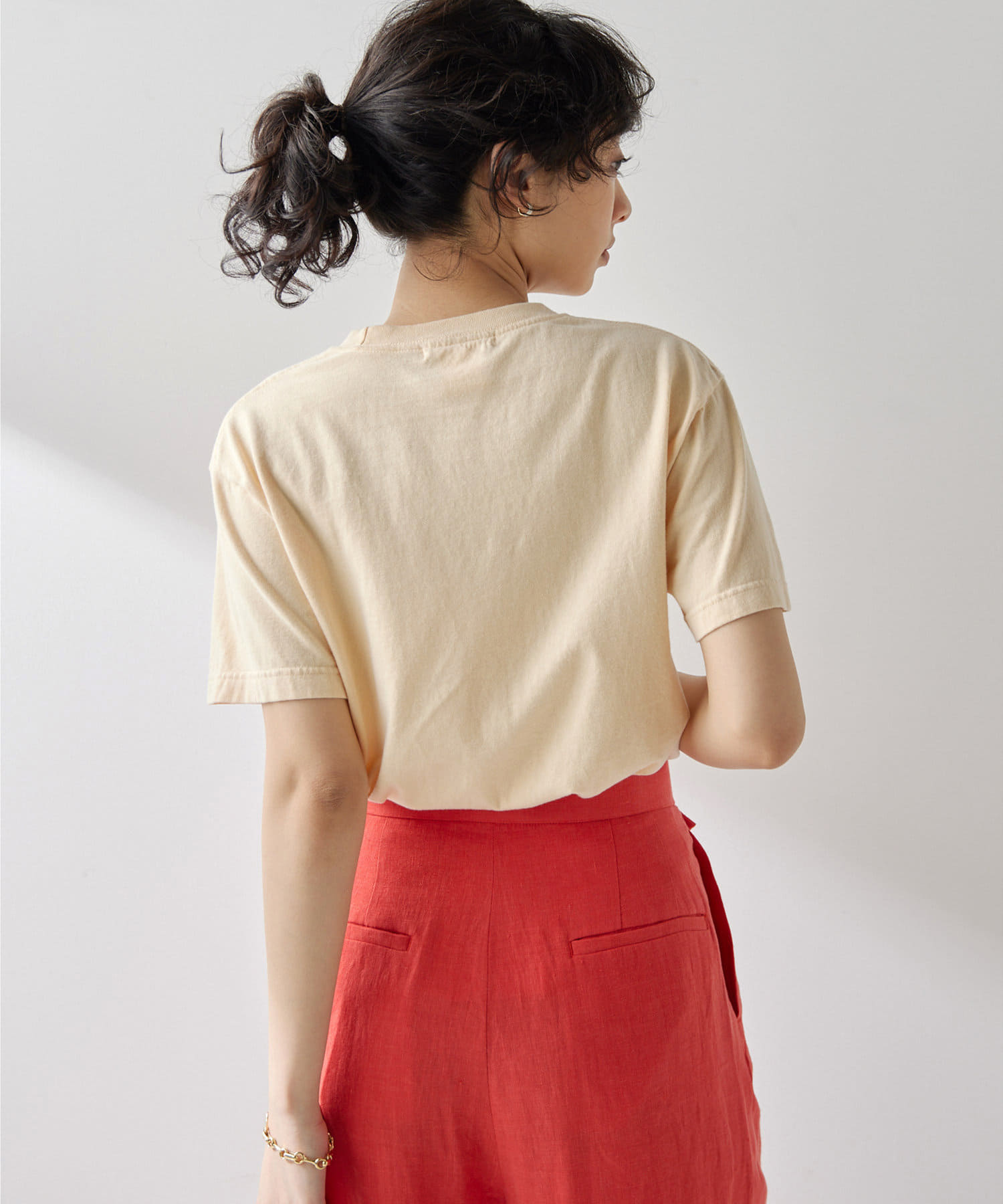 大人のスタイリングに馴染む、主張しすぎないロゴTEE