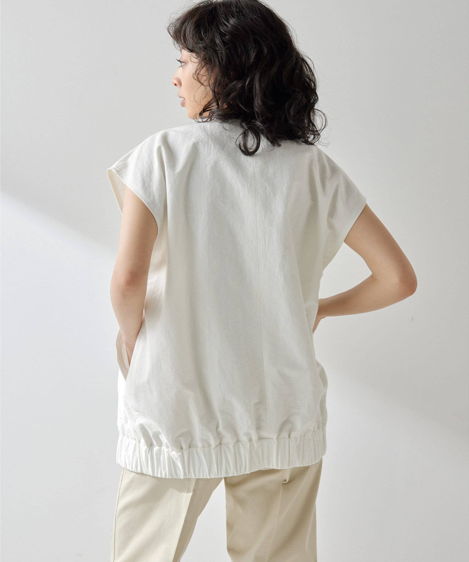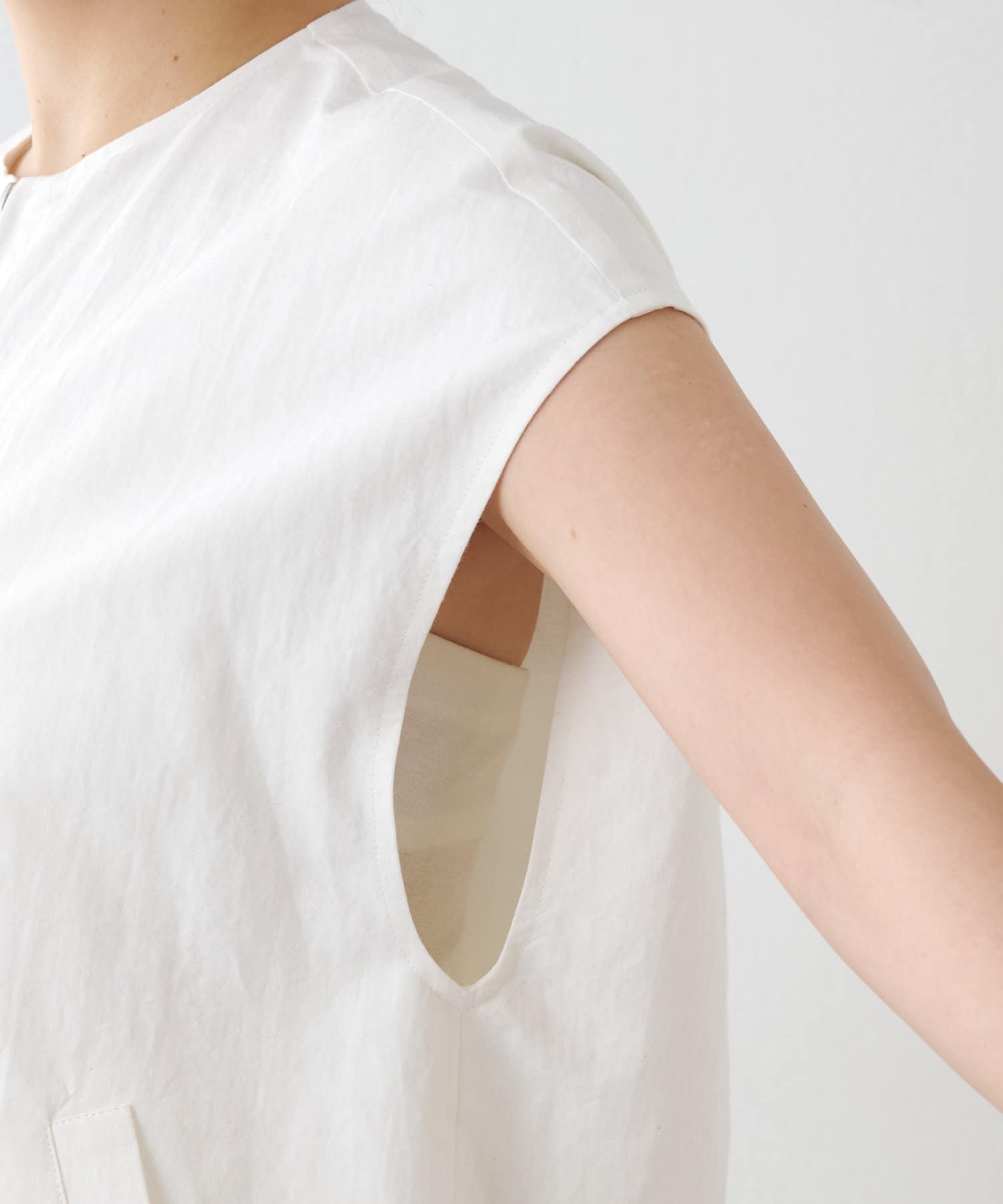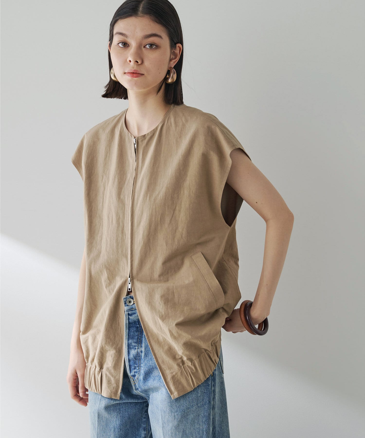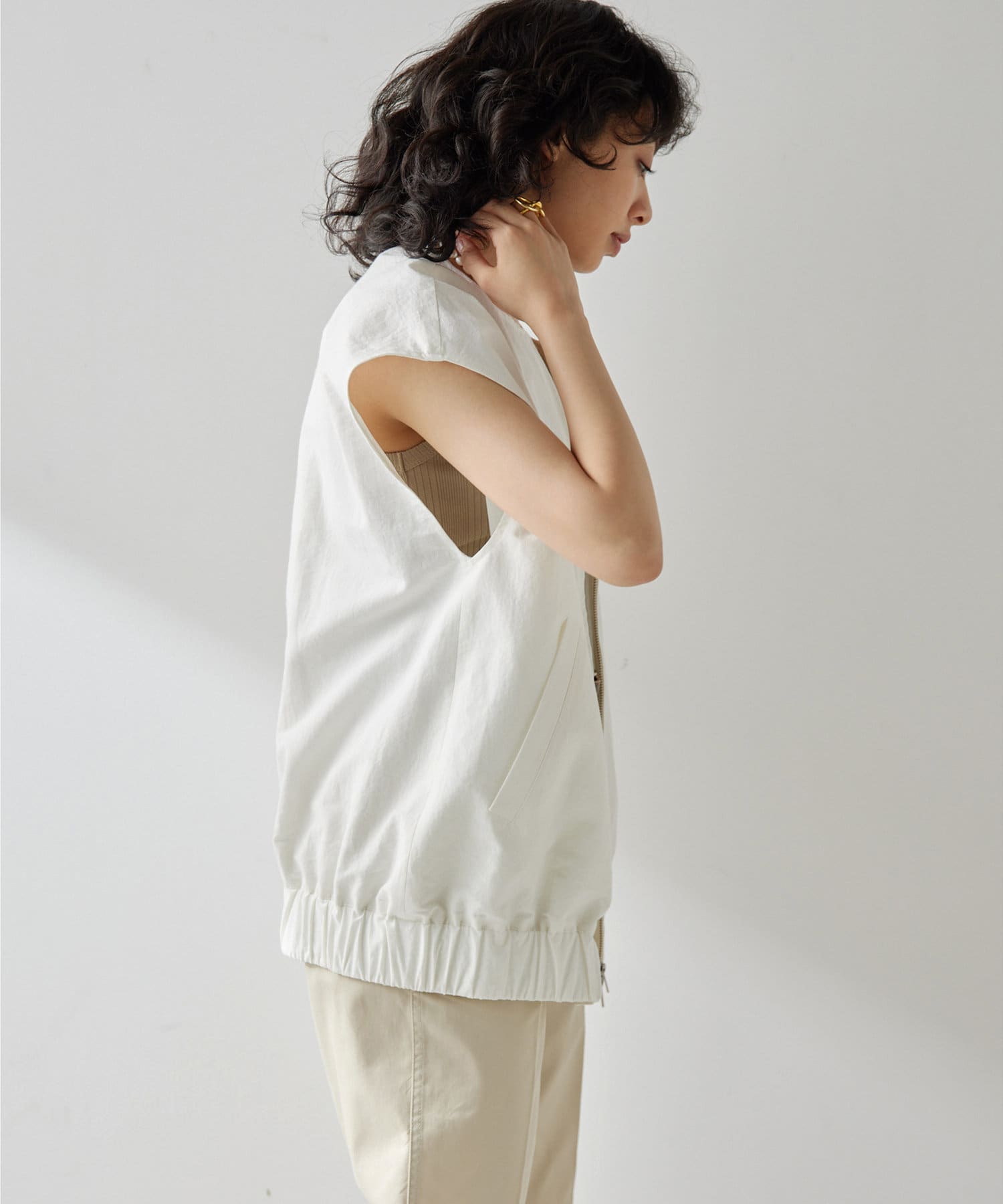 ■コットンリネンの清涼感のある素材を使用したノースリーブブルゾン。