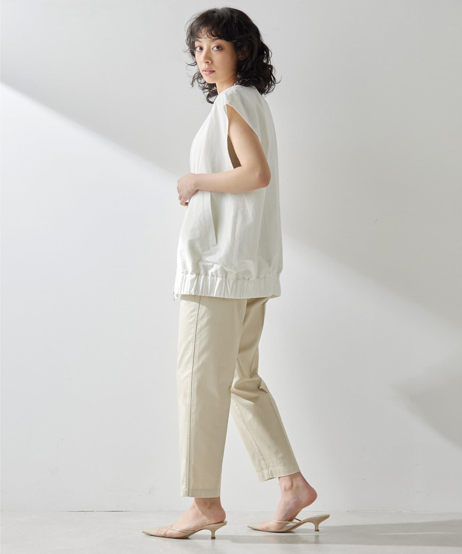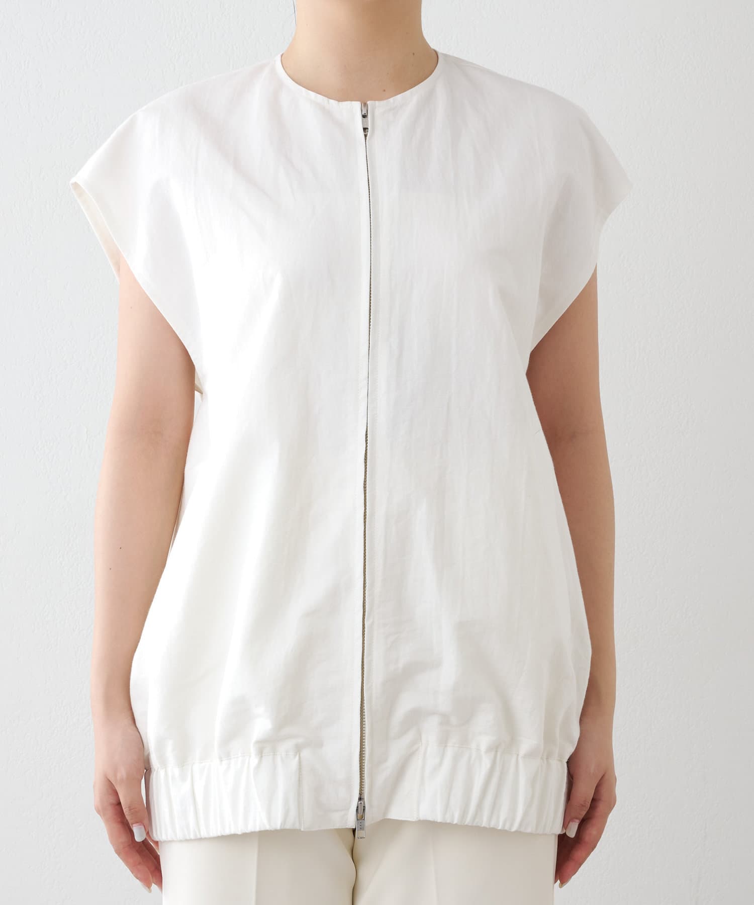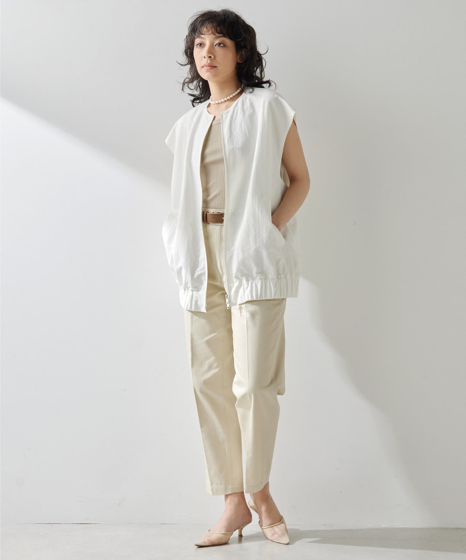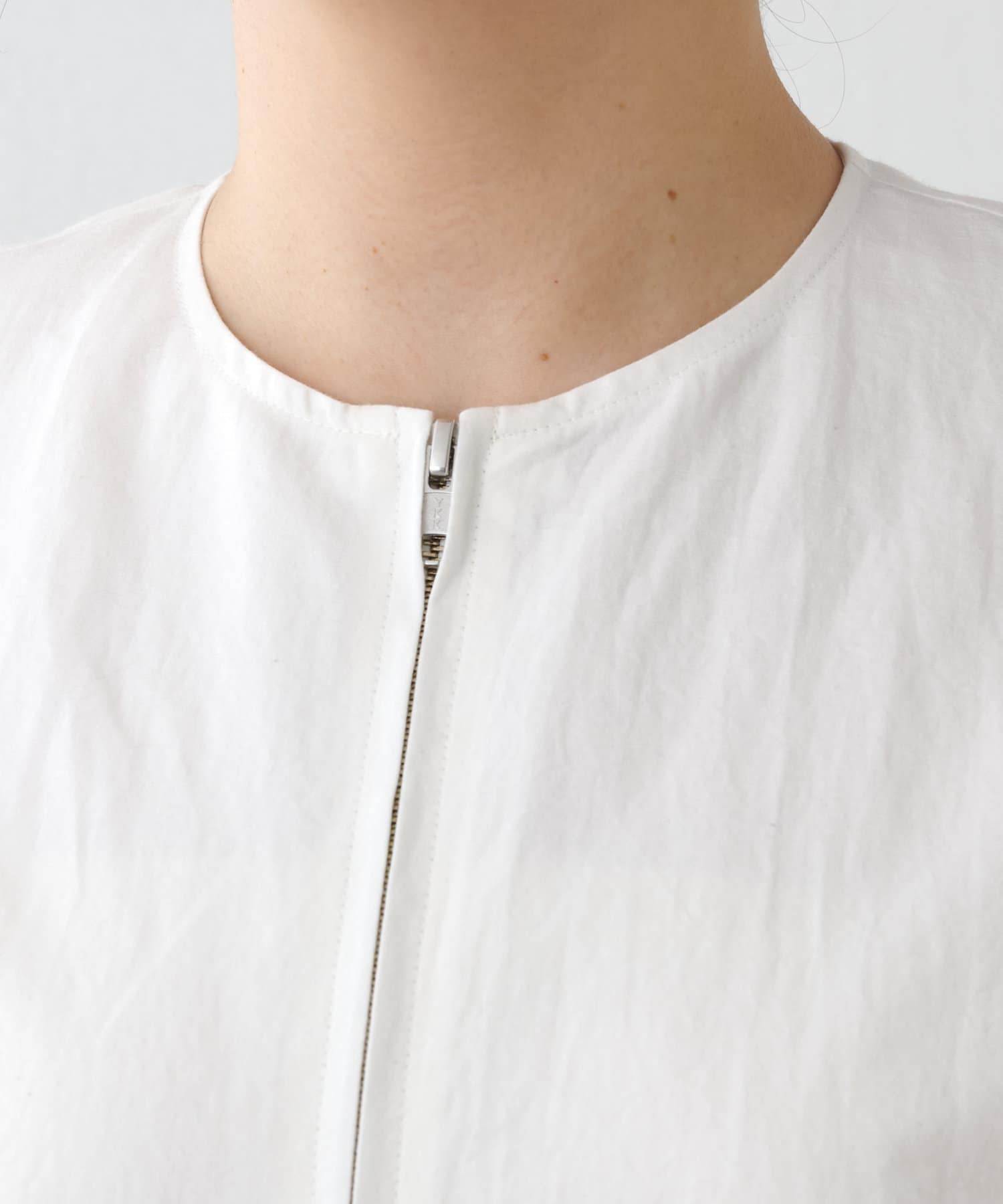 ■コットンリネンの清涼感のある素材を使用したノースリーブブルゾン。