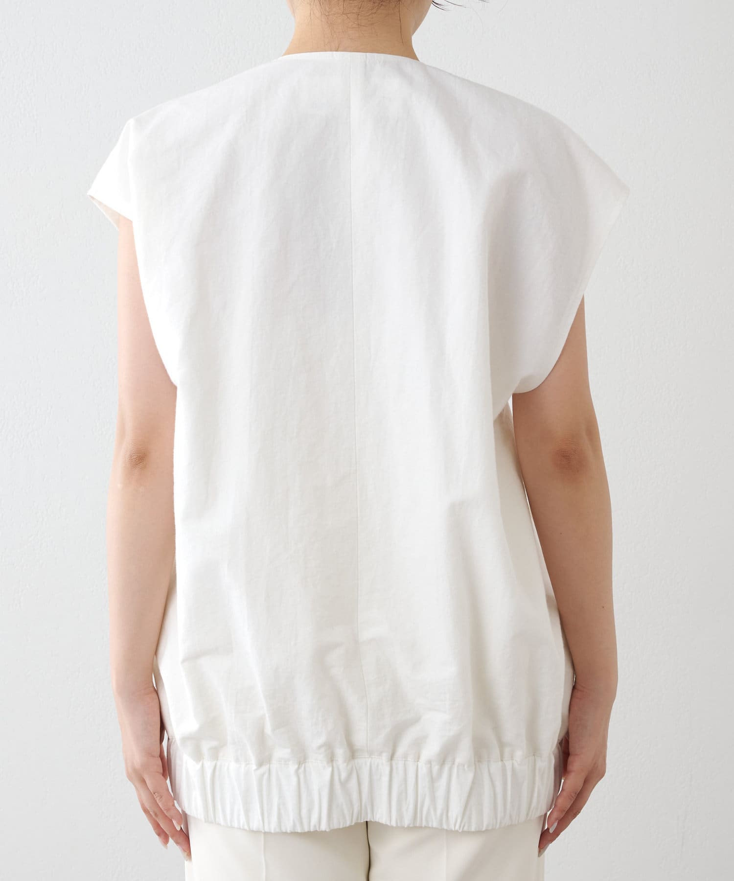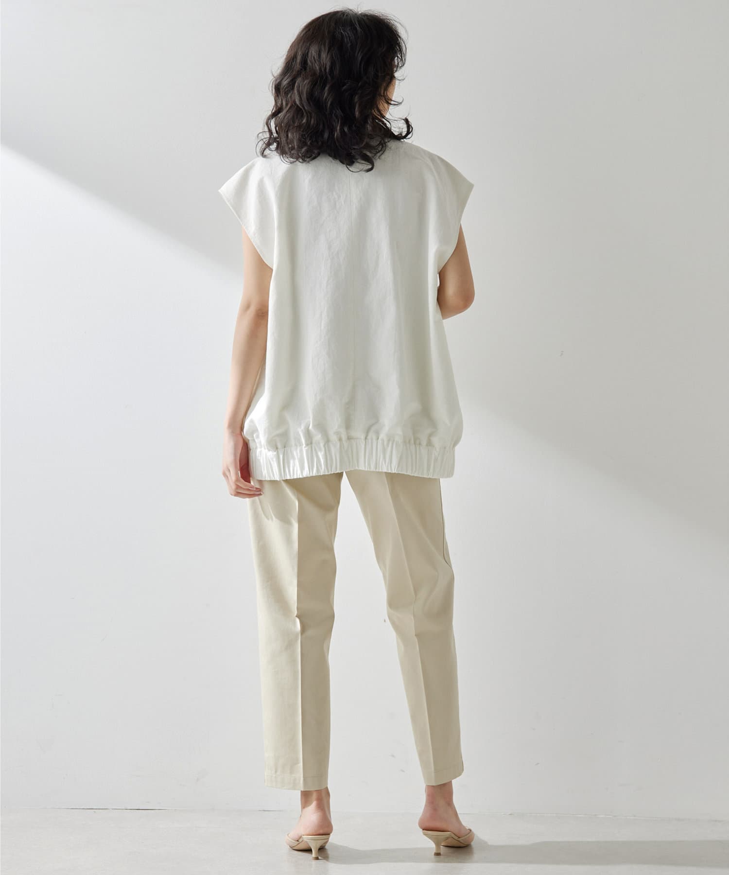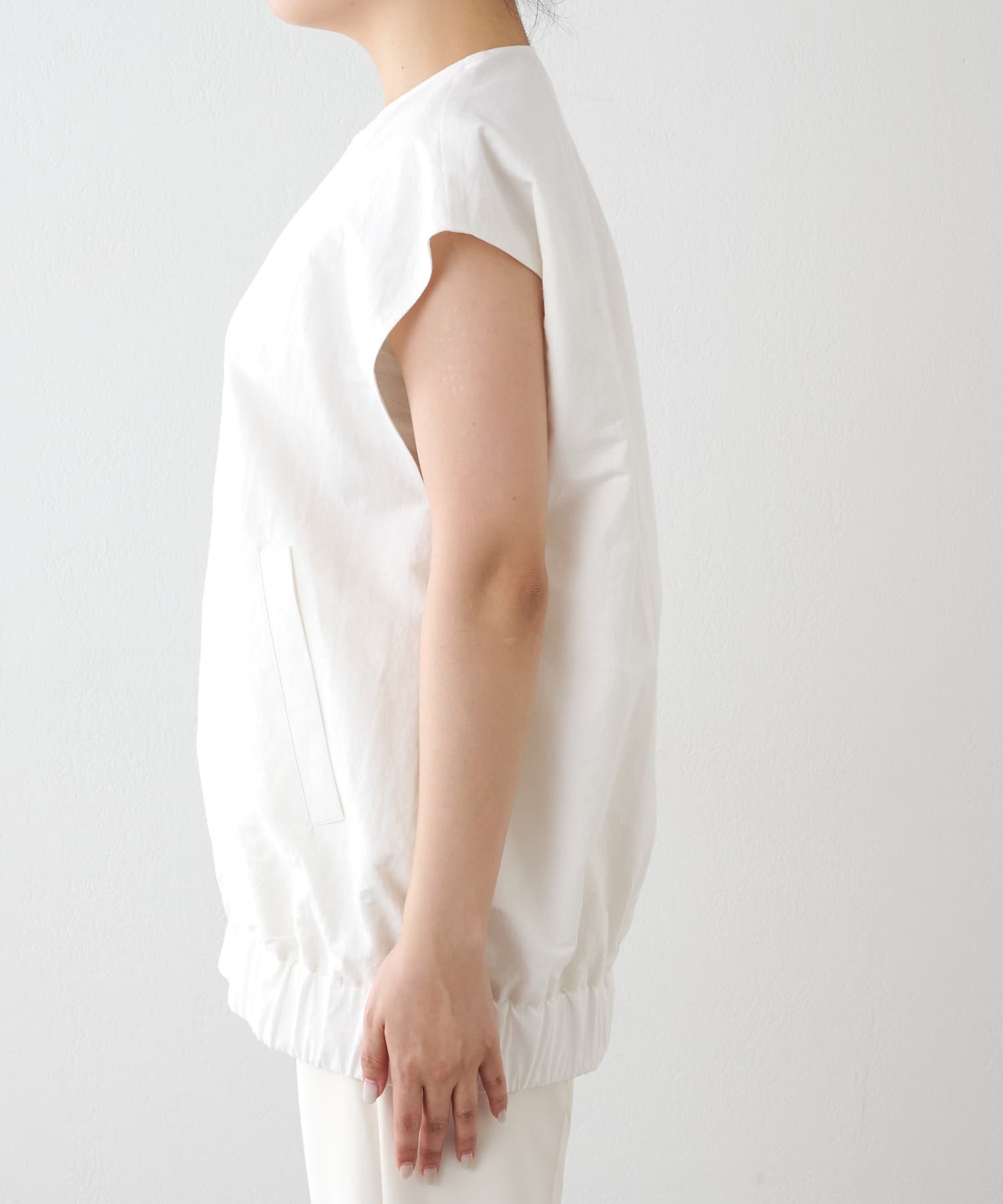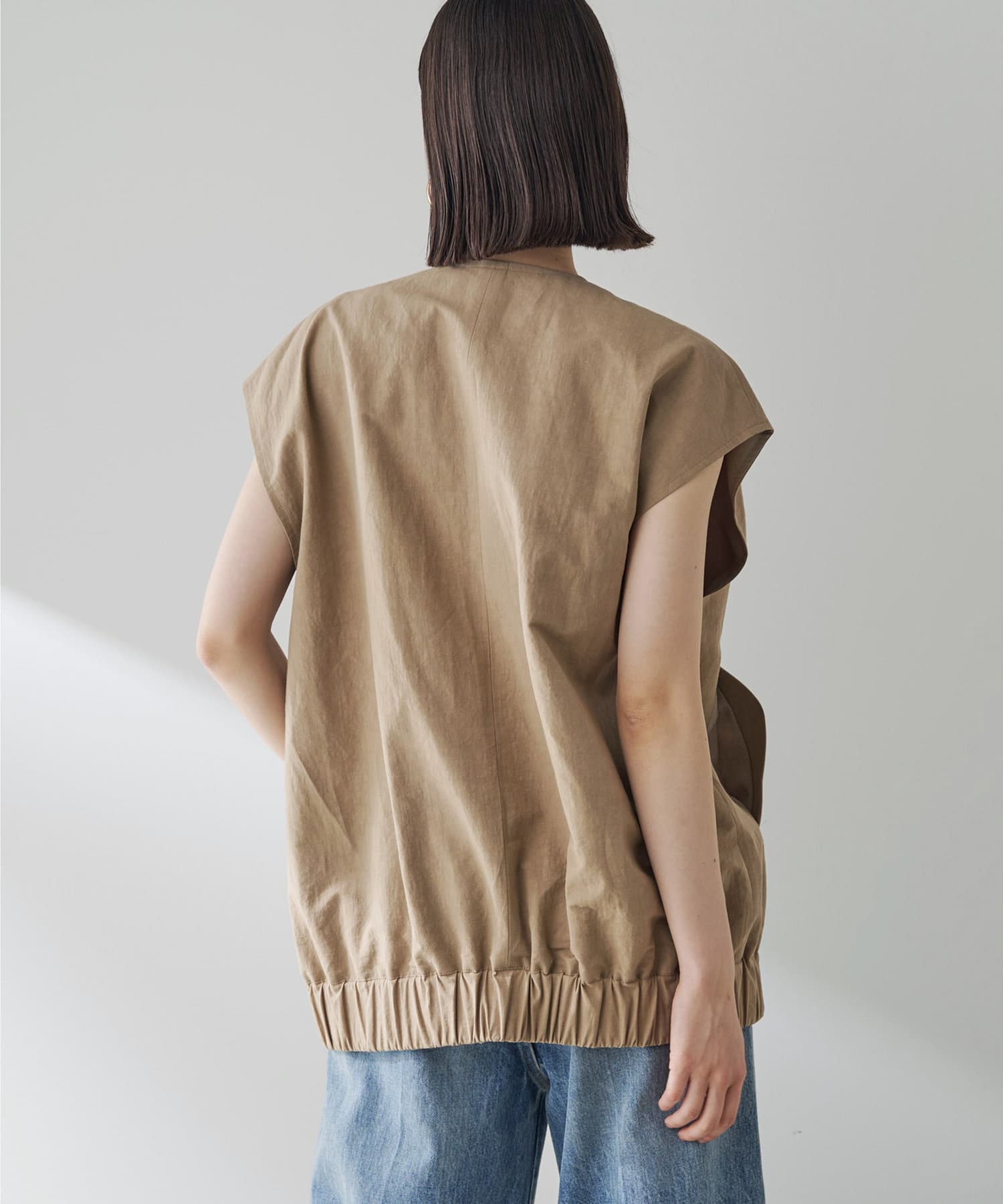 ■コットンリネンの清涼感のある素材を使用したノースリーブブルゾン。