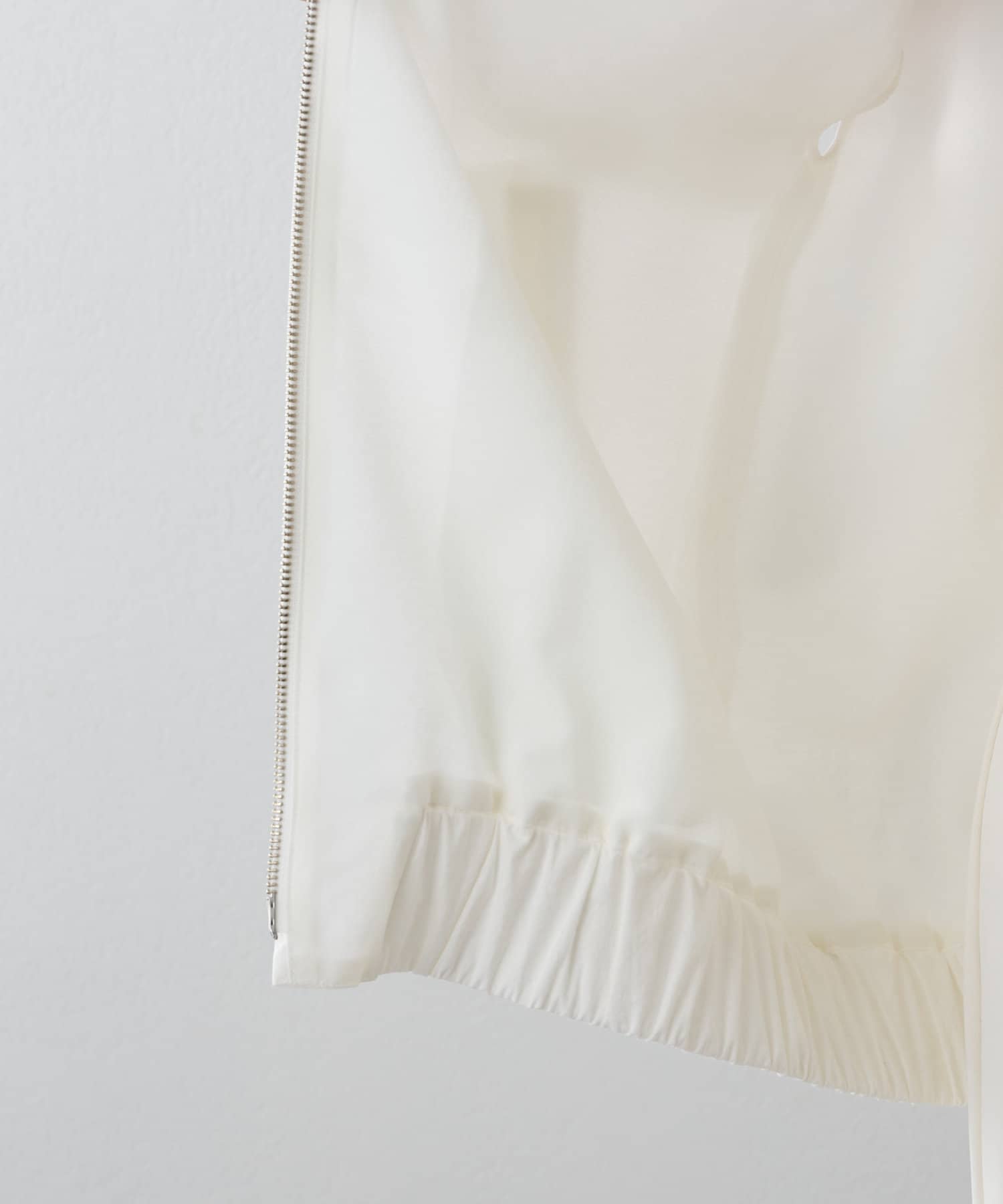 とても軽くさらっと羽織れます。タンクトップやキャミソールワンピースなど肩周りの露出が気になるという方におすすめ。裾ゴムデザインが広がりすぎず収まりが良く、ロングスカートでもバランスよく着こなせます。上までZIPを閉めてていただけるのでトップスとしても着回しが効きますよ。