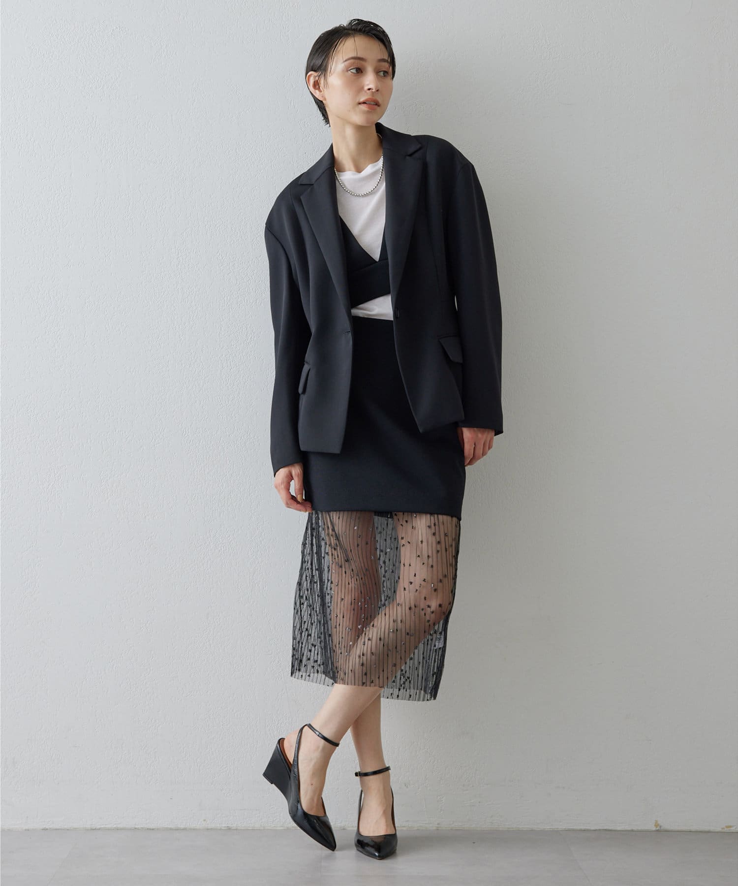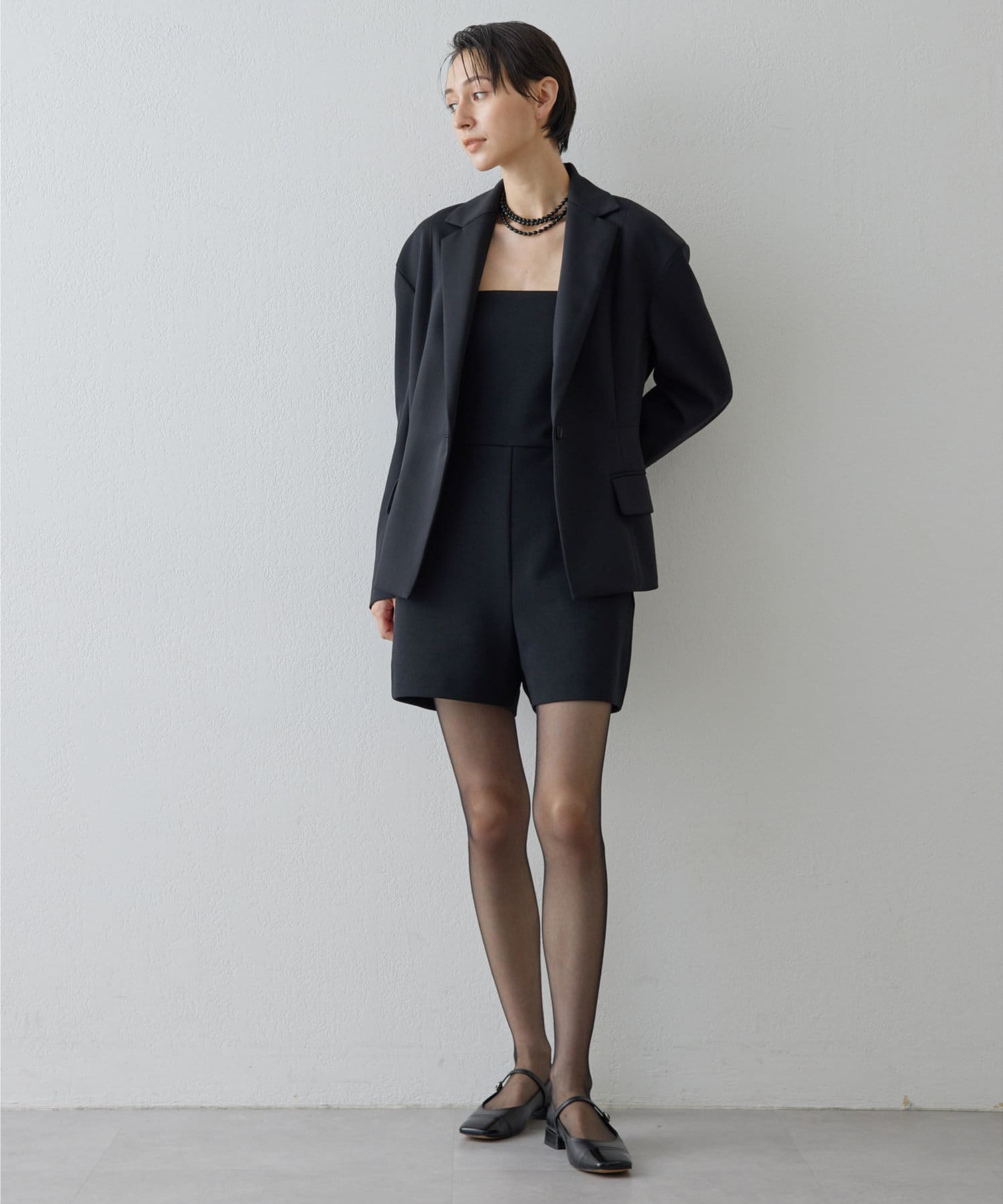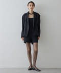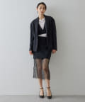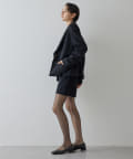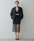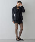 ■メンズライクなテーラードジャケットをベースに、着丈をカットしウエストからヒップにかけ絞りを入れ曲線的なラインをプラス。