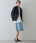 ■やや着丈の短いデザインで、幅広いボトムとバランス良く楽しめるのも◎。
