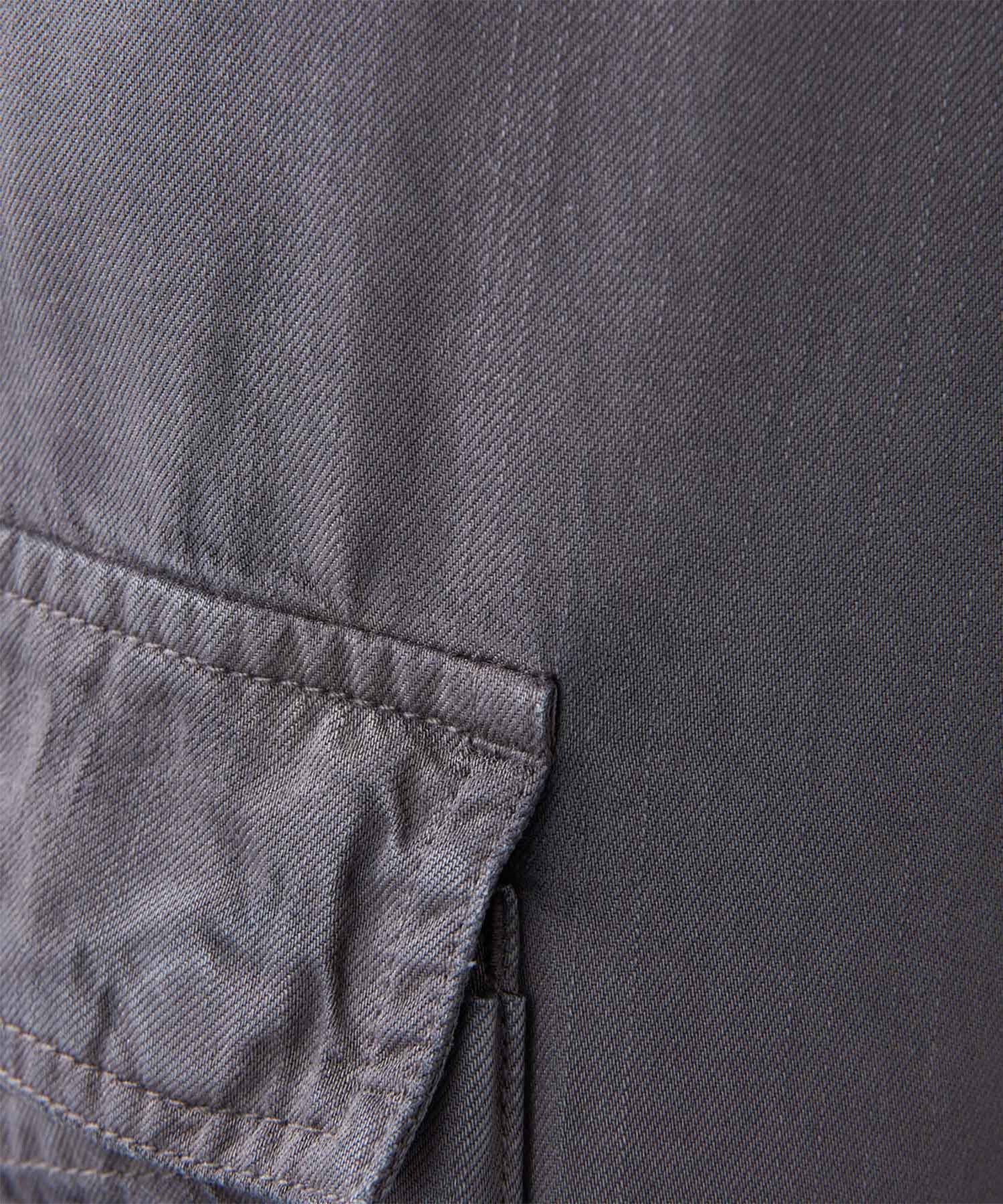 ■デニムのように経年変化を楽しめる顔料染めを施し、加工感を出した生地を使用。