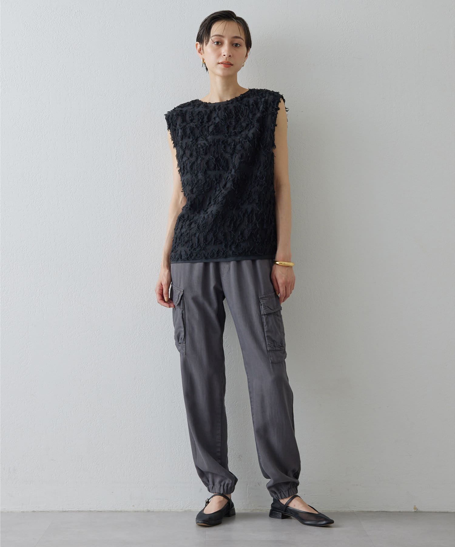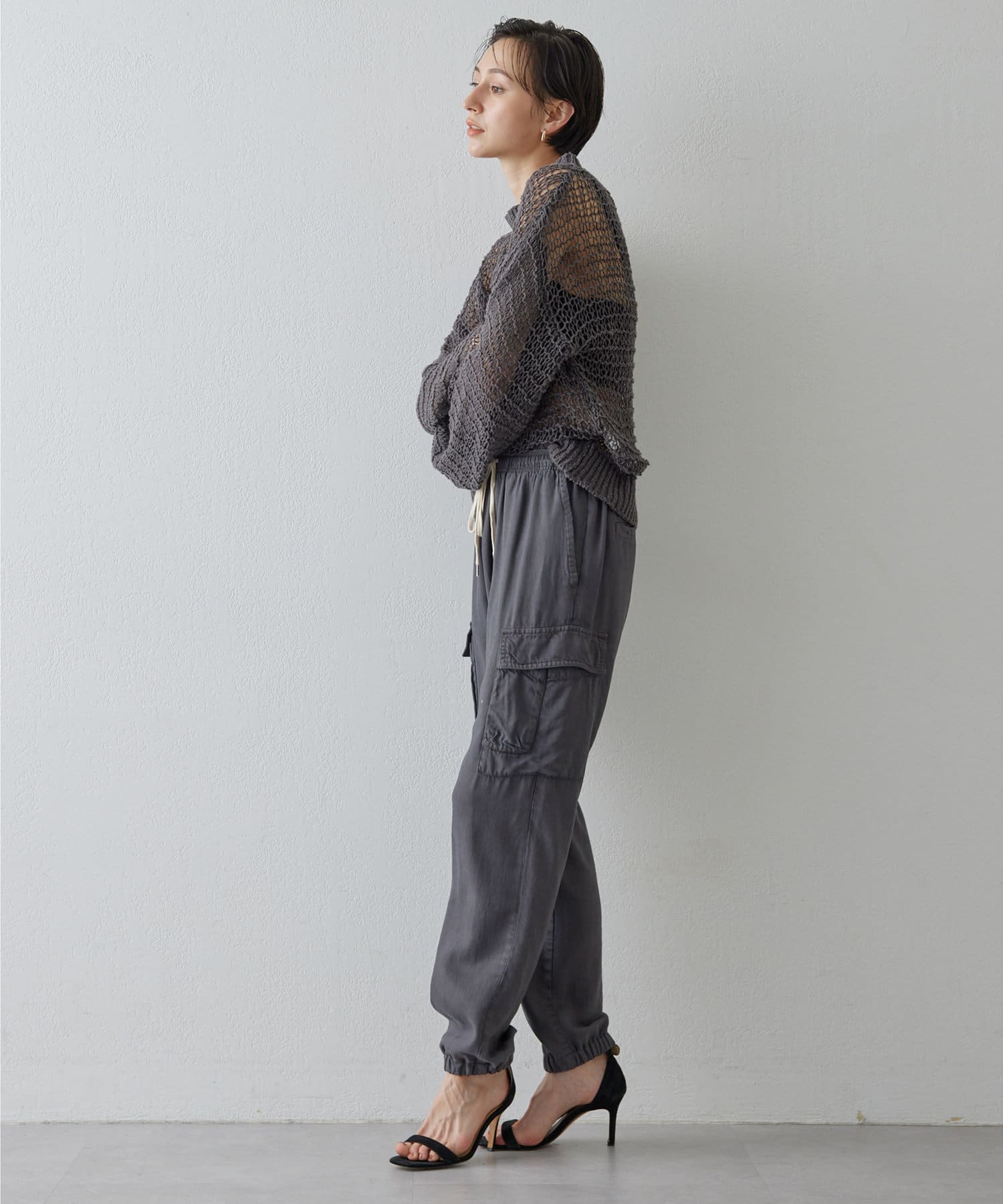 ■抜け感たっぷりに仕上げたドロストカーゴパンツ。