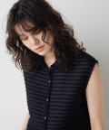 ■ミニボーダー柄とコンパクトな襟付きデザインで甘すぎない雰囲気に。