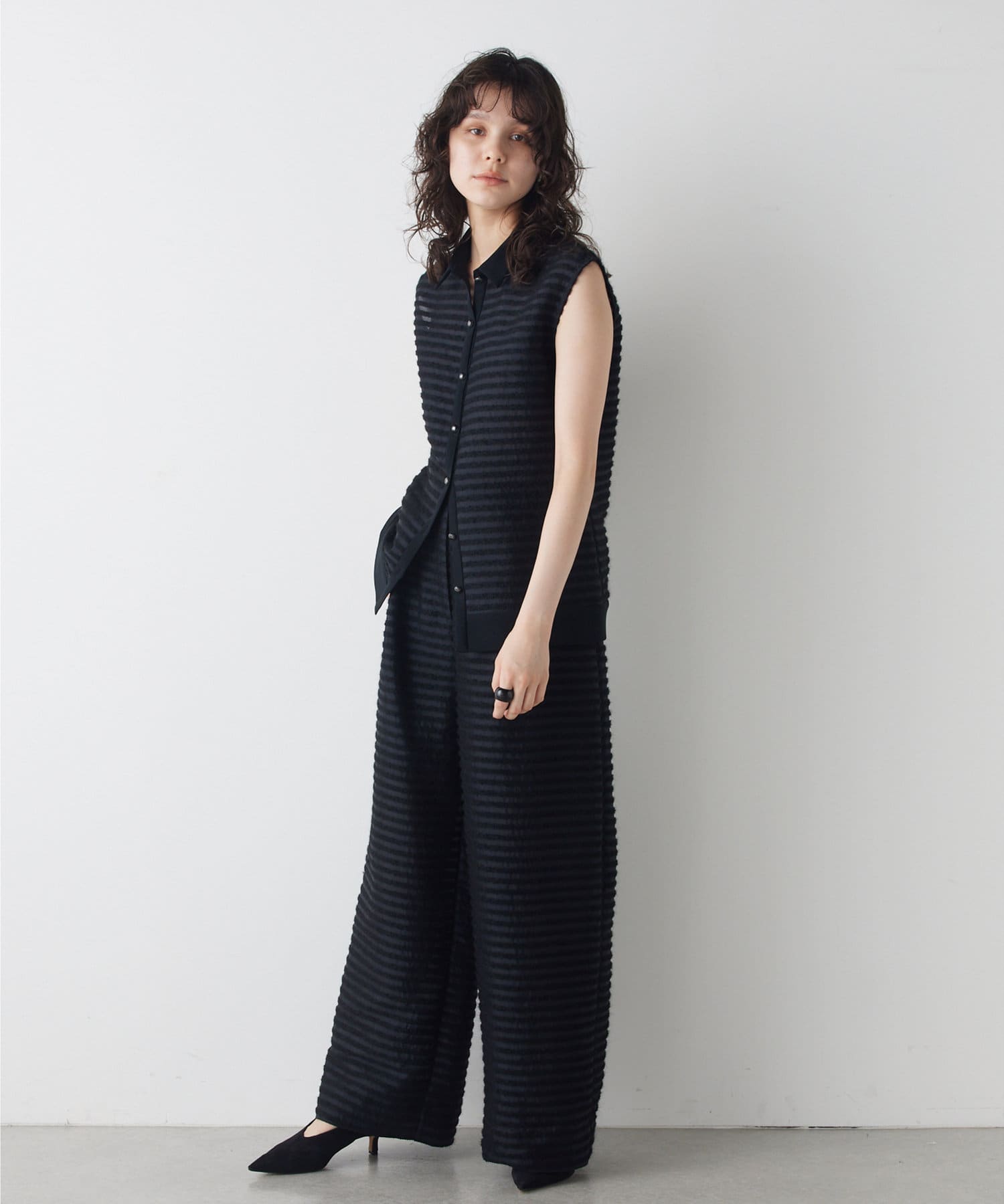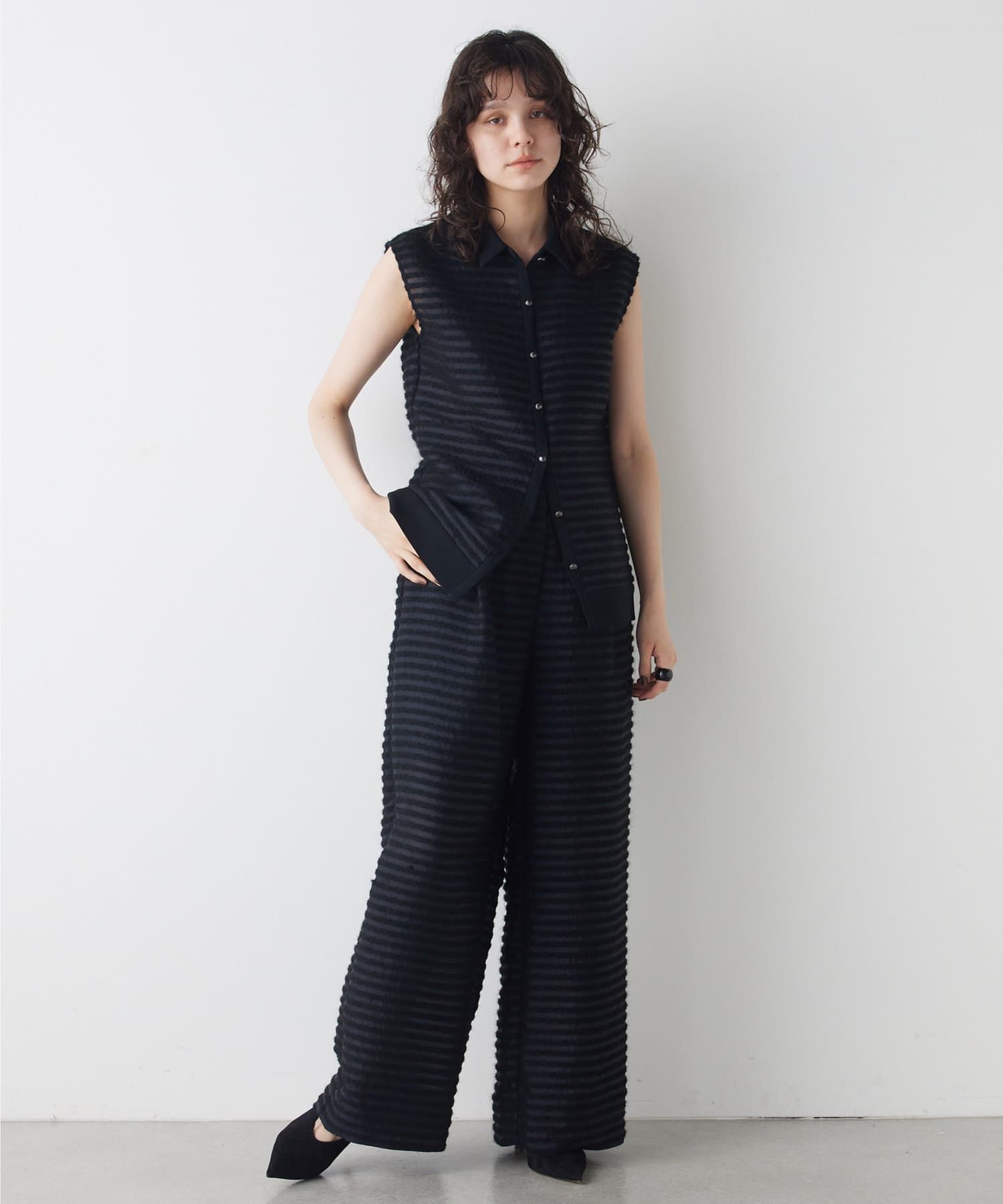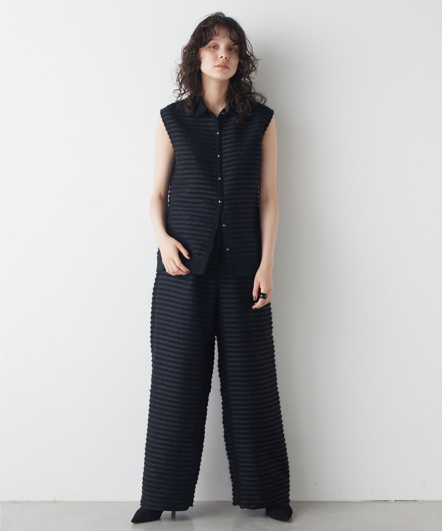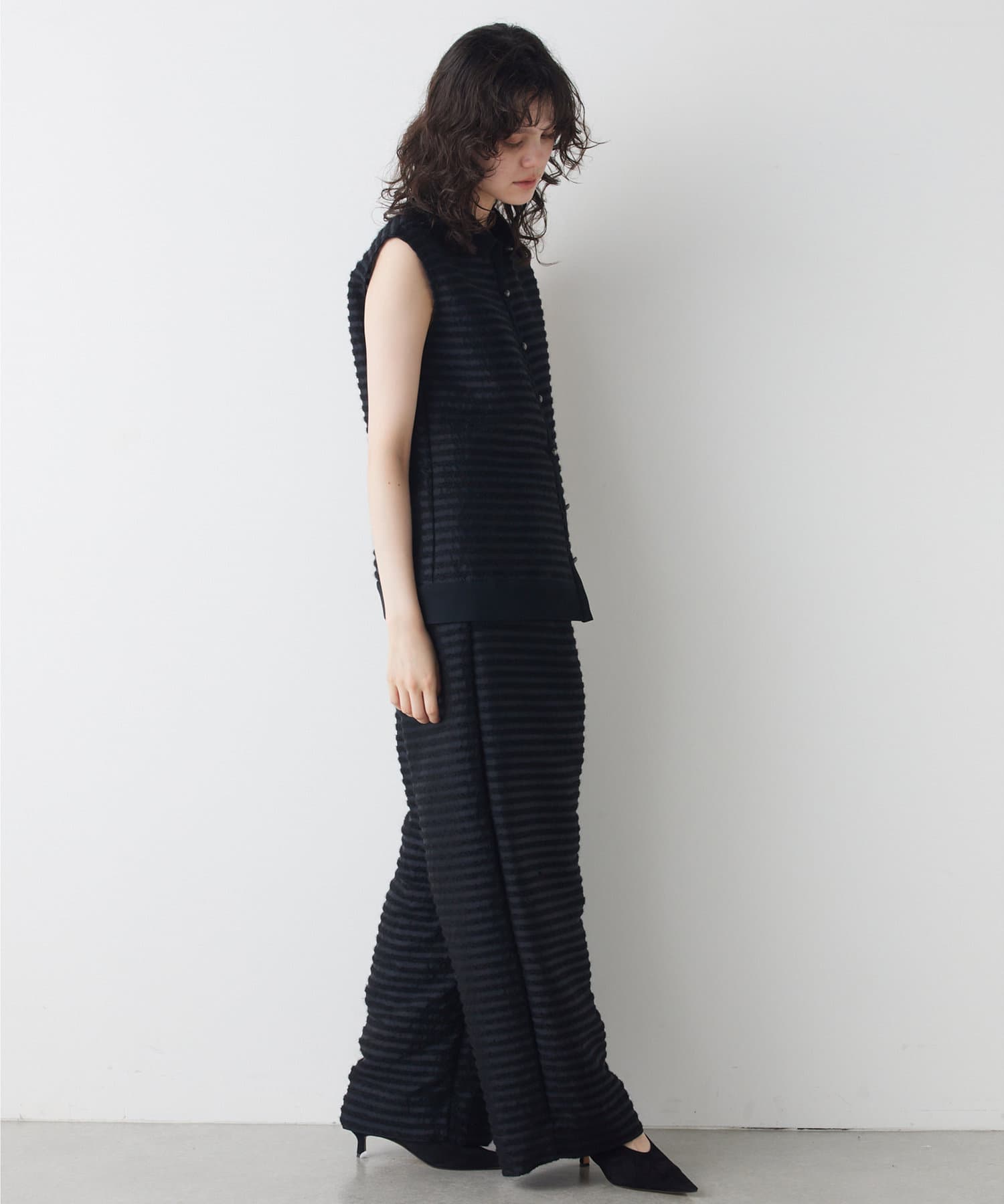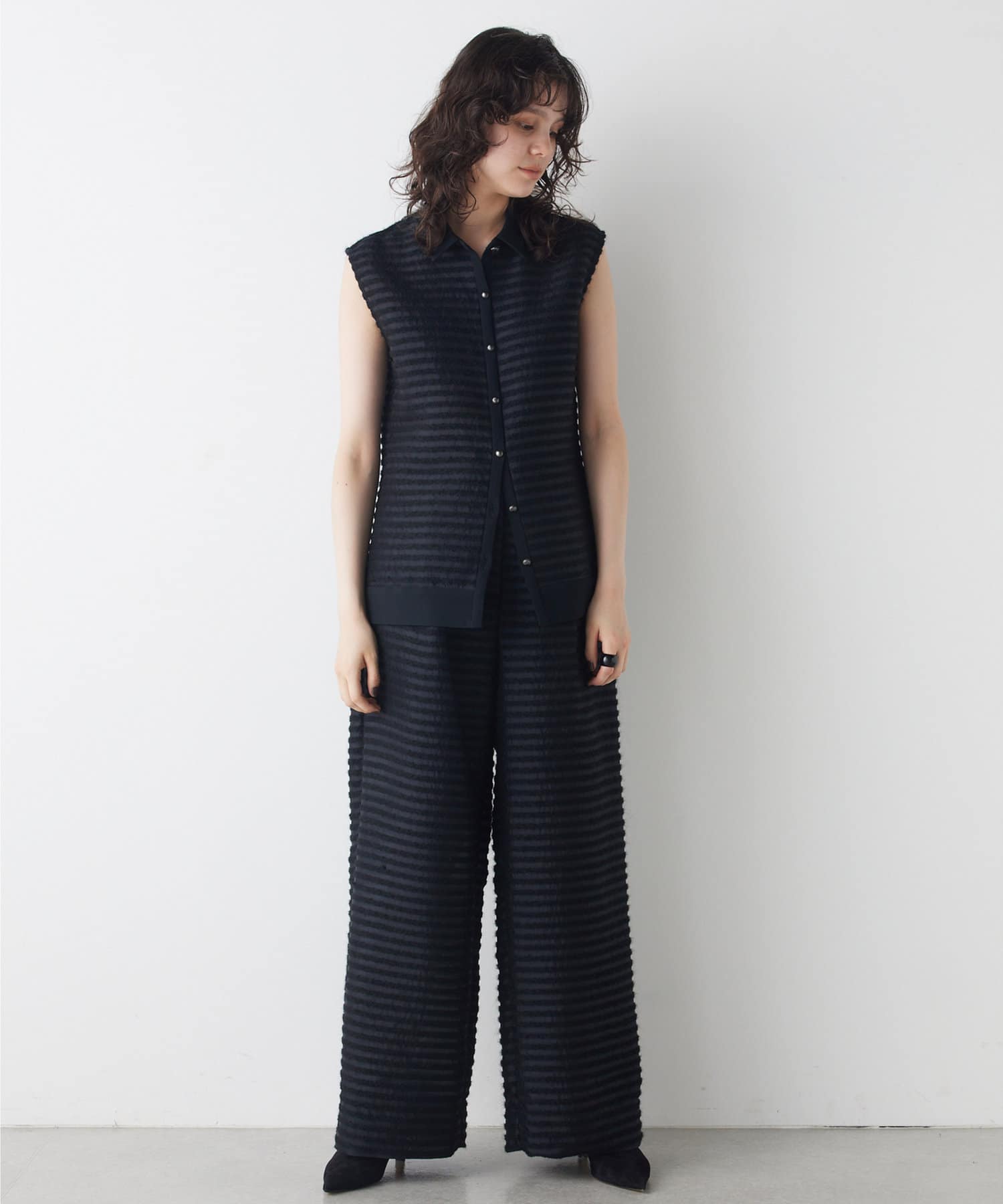 ■同素材のシアーボーダーパンツ(ブランド品番:WGZ1041702A0002)とのセットアップもおすすめ。