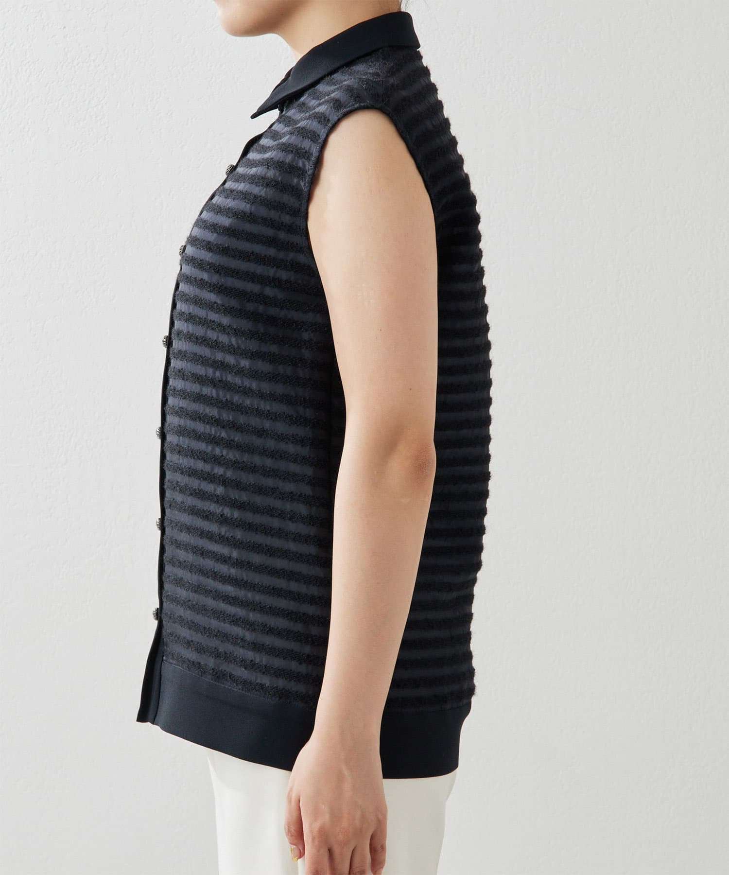 ■国内で作られたモヘアとシルクオーガンジーのハリ感がある生地を使用したノースリブラウス。