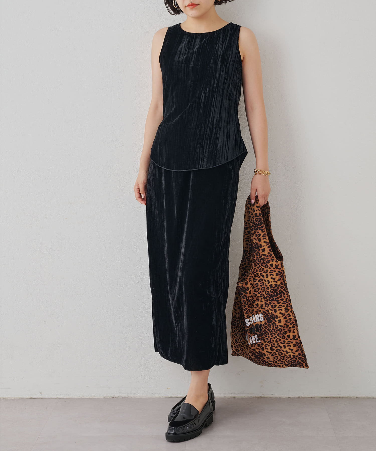 ■同素材のタテジワベルベットスカート(ブランド品番:WGZ1041701A0001)とのセットアップもおすすめ。