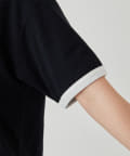 ■襟ぐりと袖口に施したパッチワークと同様の配色トリミングもアクセントポイントに。