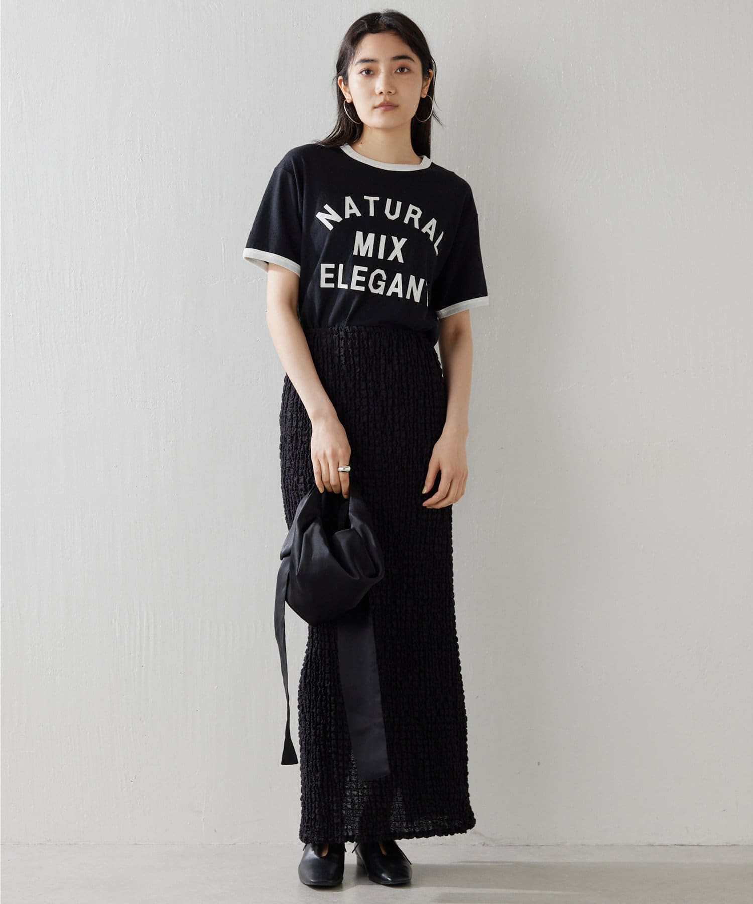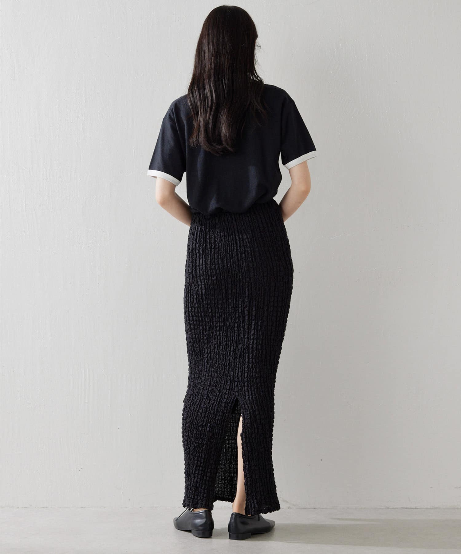 ■程よくゆとりのあるボディシルエットがこなれた印象に仕上げてくれる一枚。