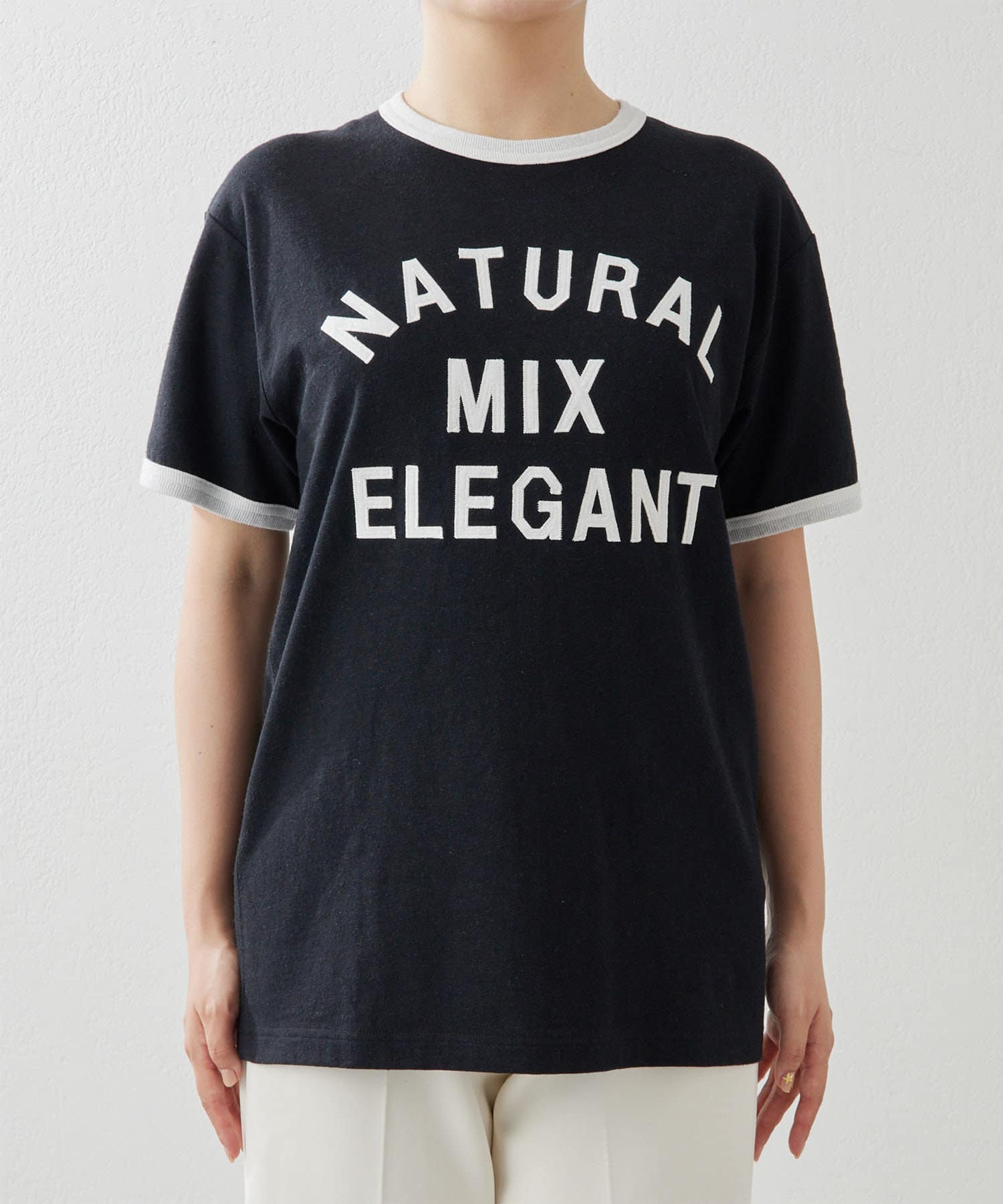 パッチワークロゴが印象的な、大人のトリムTシャツ