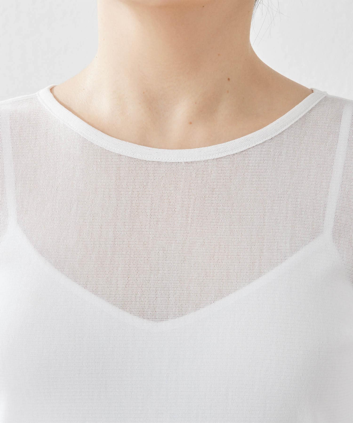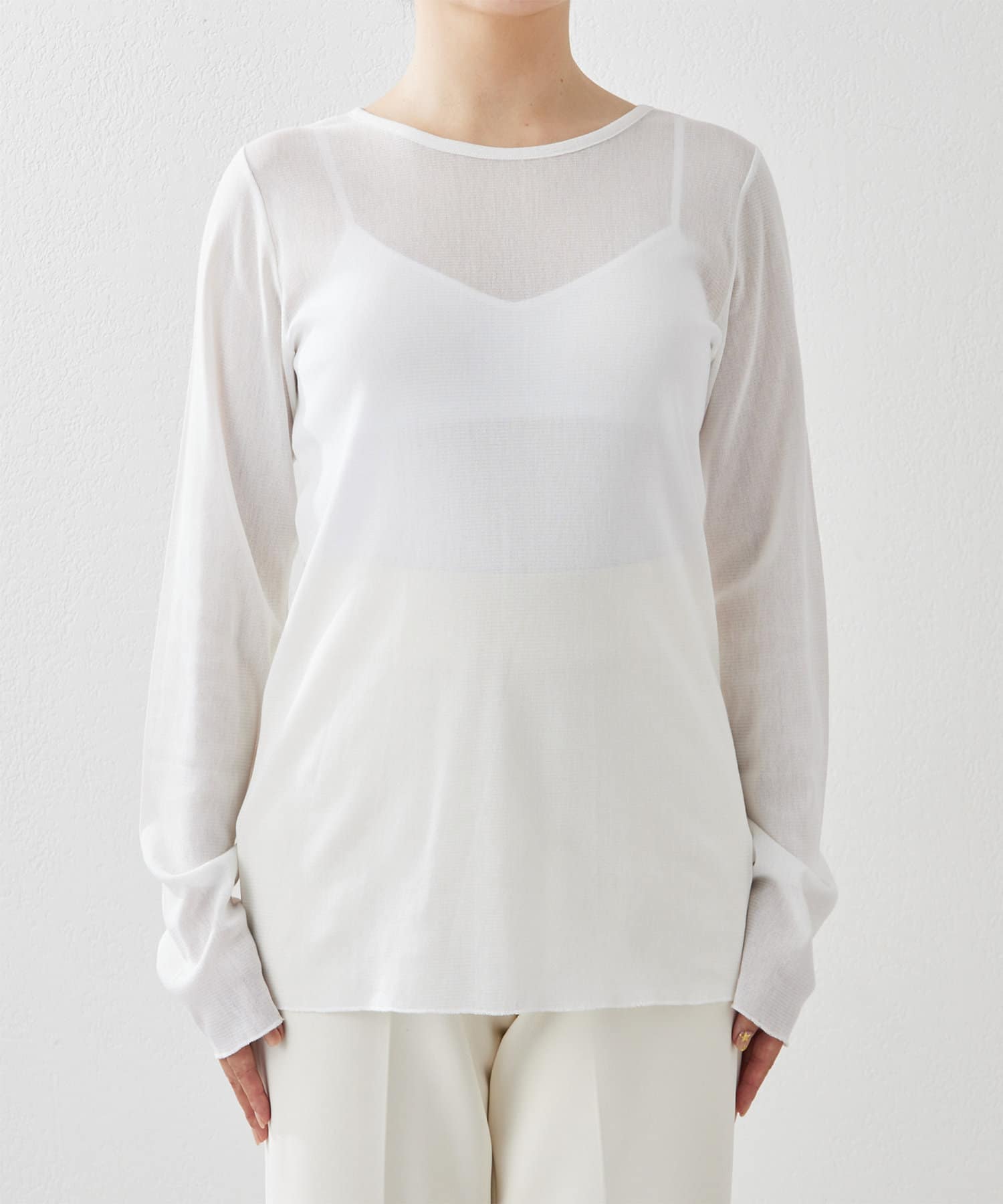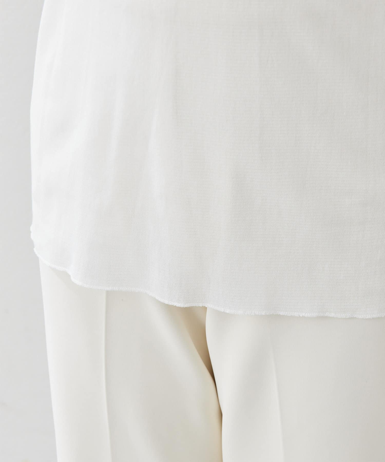 ■細番手コットンを使い、ナチュラルな表情のあるチュール素材で仕立てた一枚。