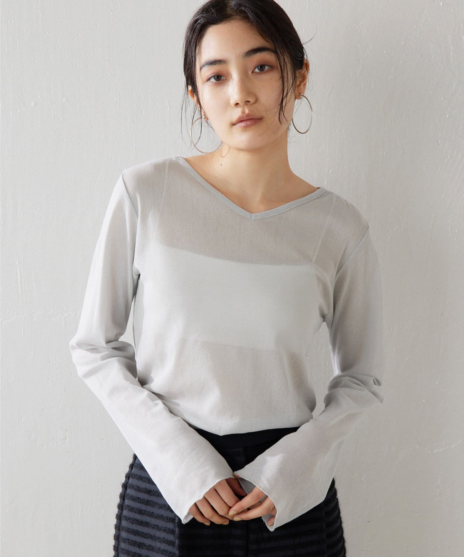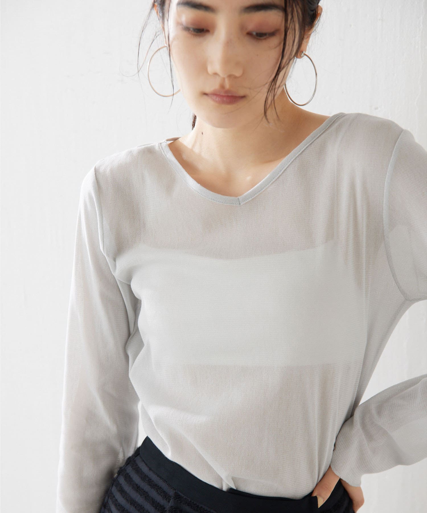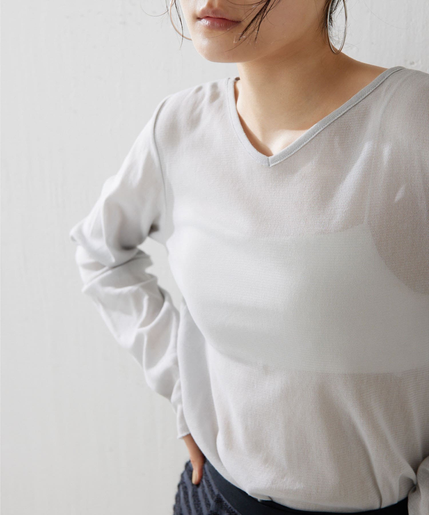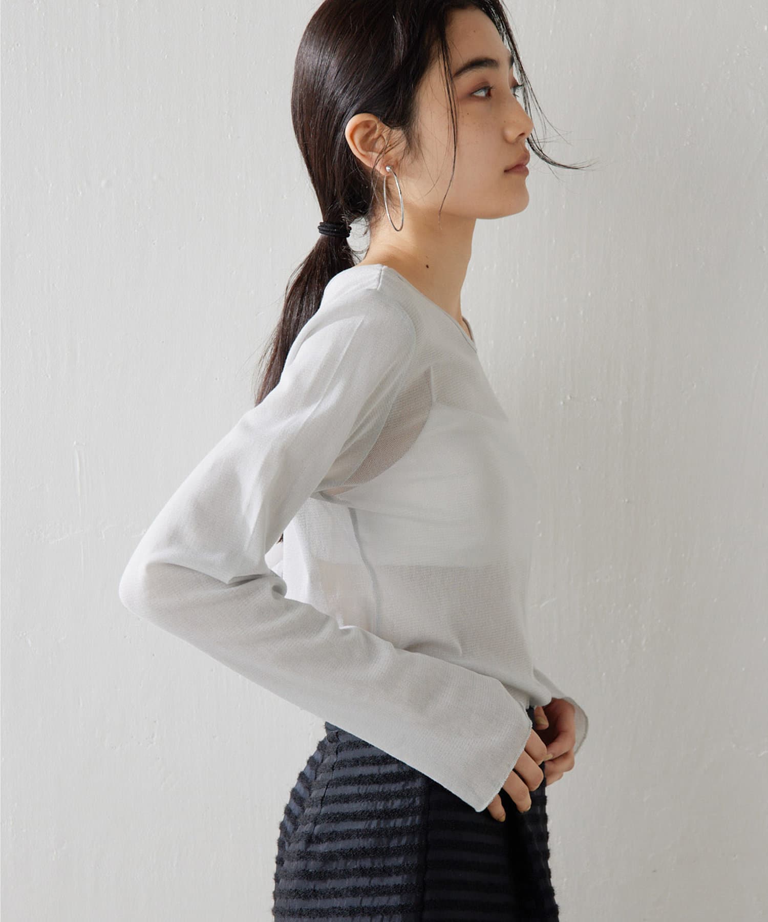 ■上品な透け感がヘルシーなニュアンスをプラスするシアープルオーバー。