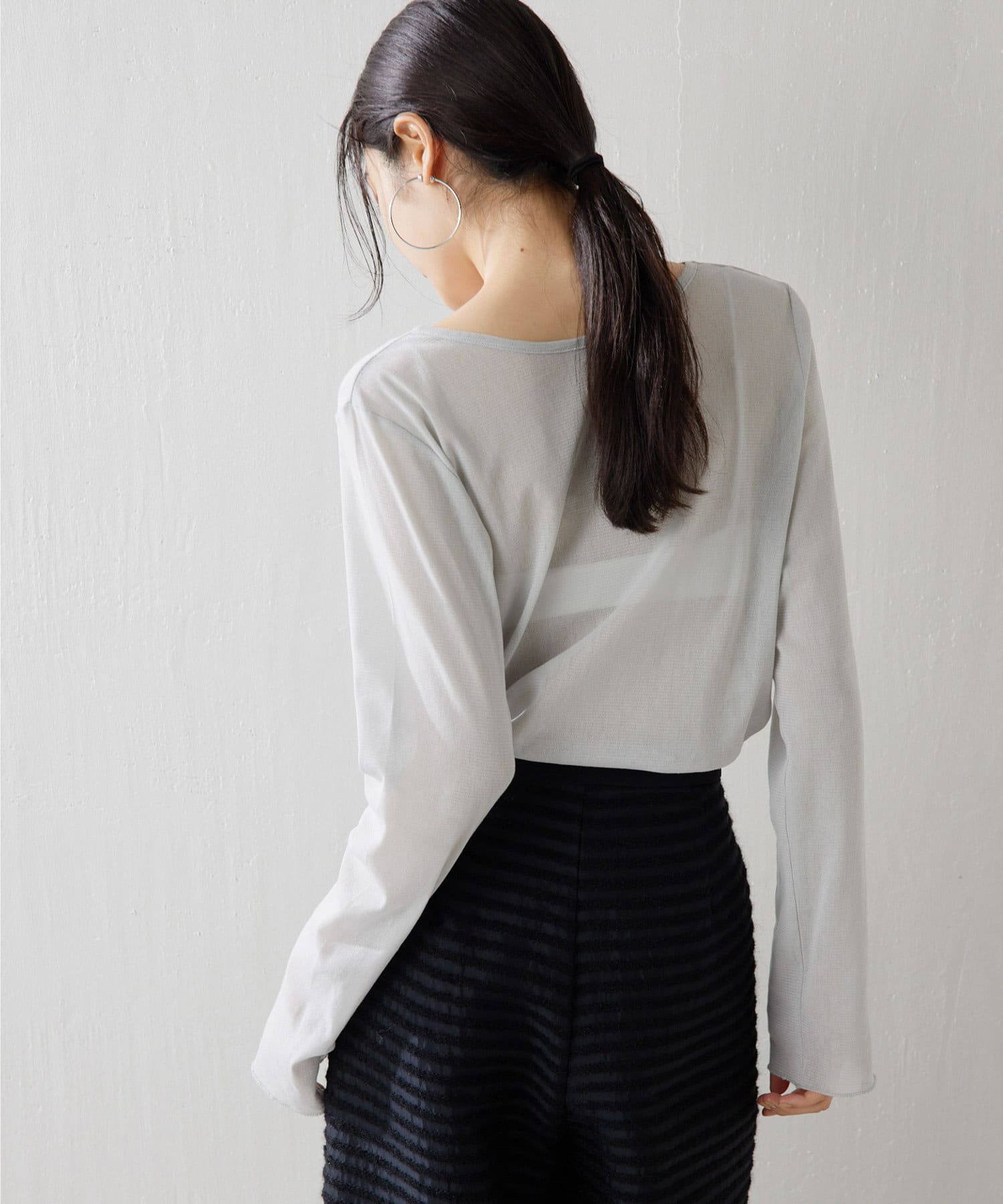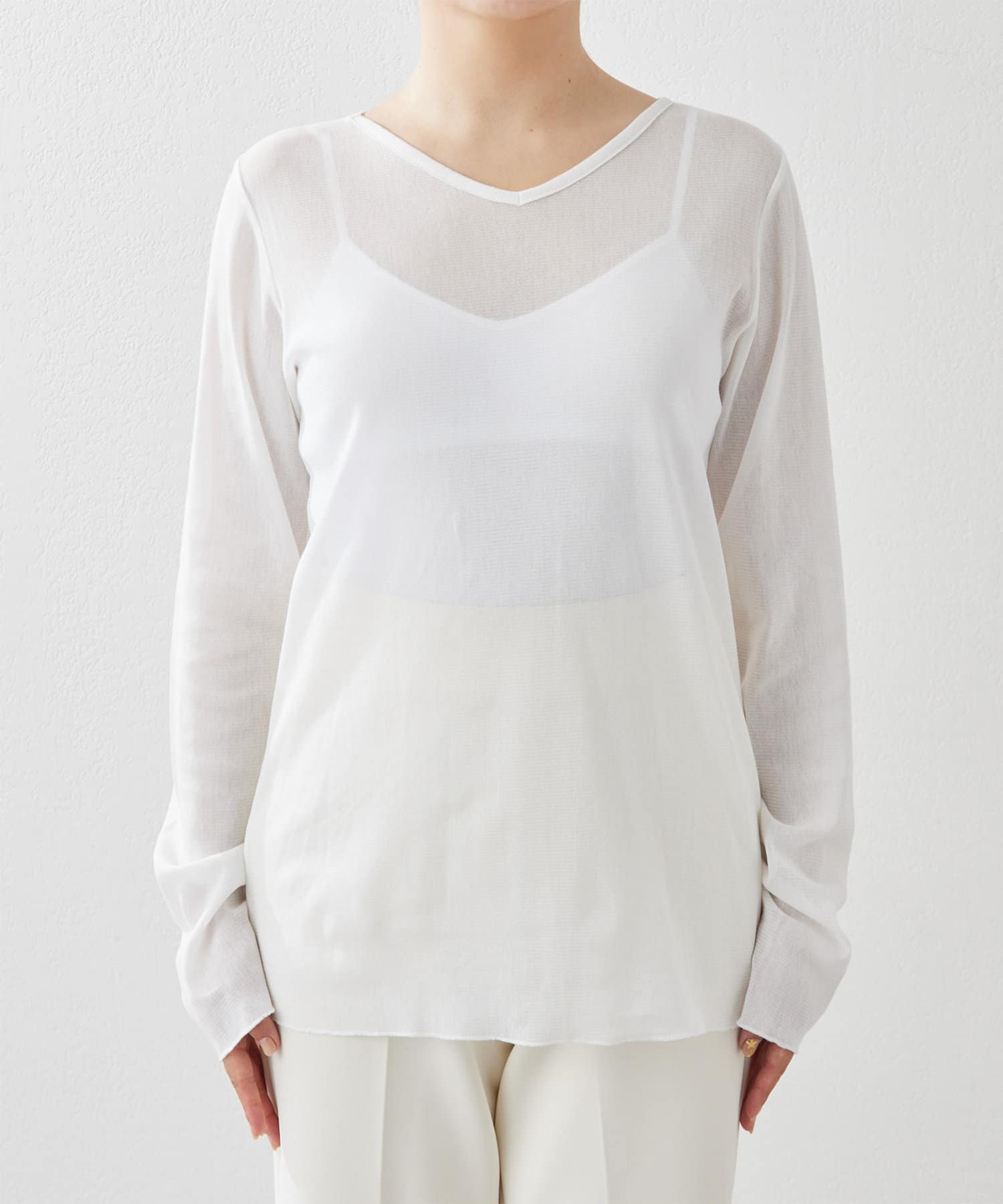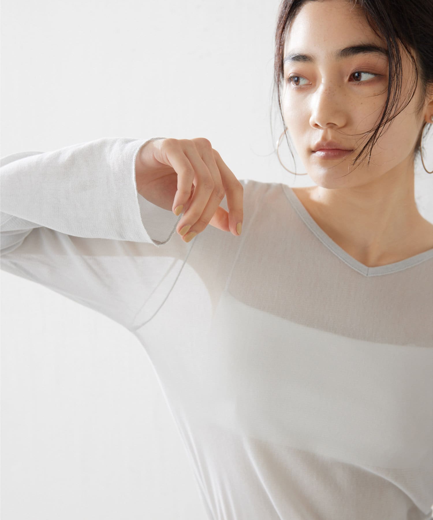 ■上品な透け感がヘルシーなニュアンスをプラスするシアープルオーバー。