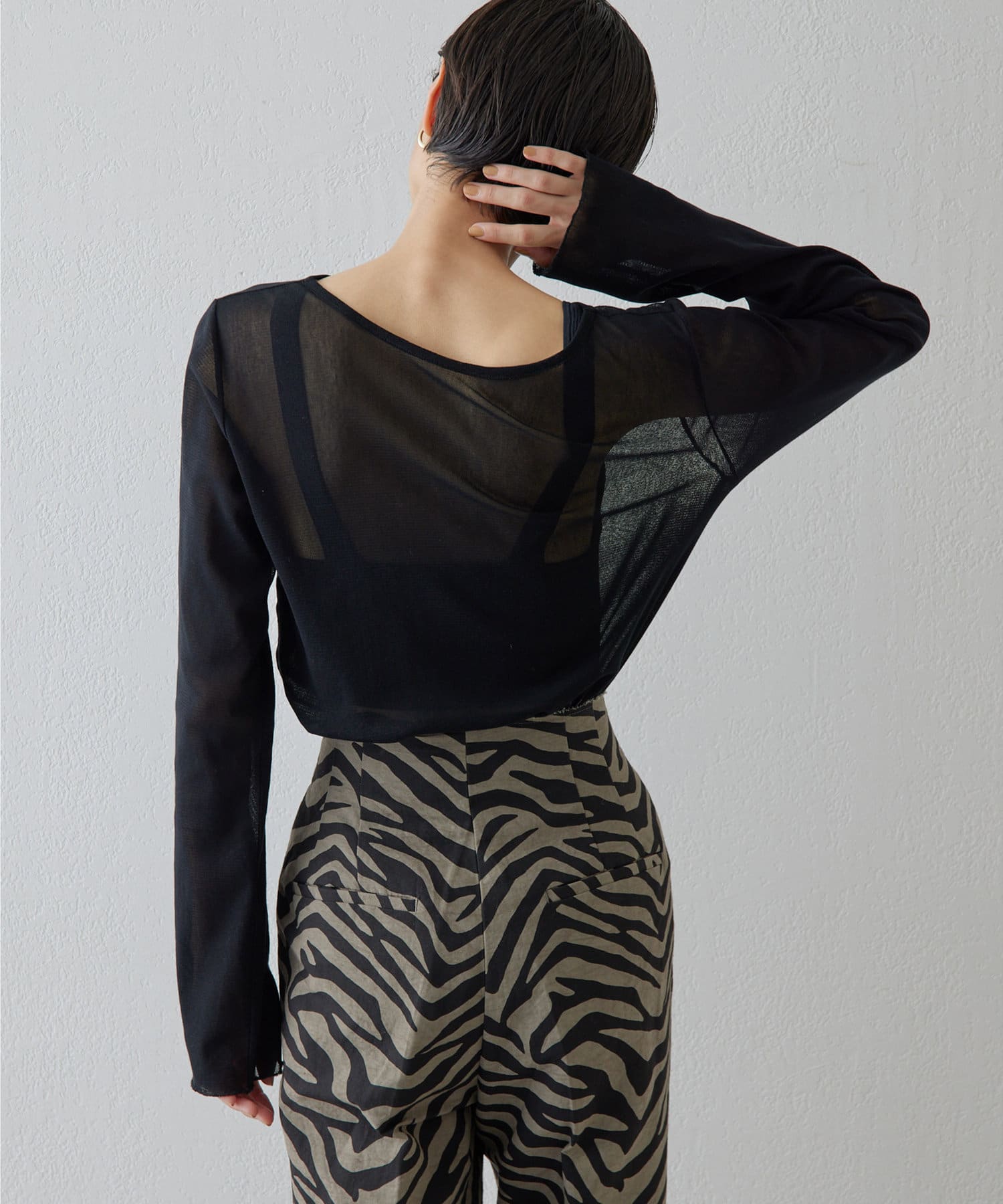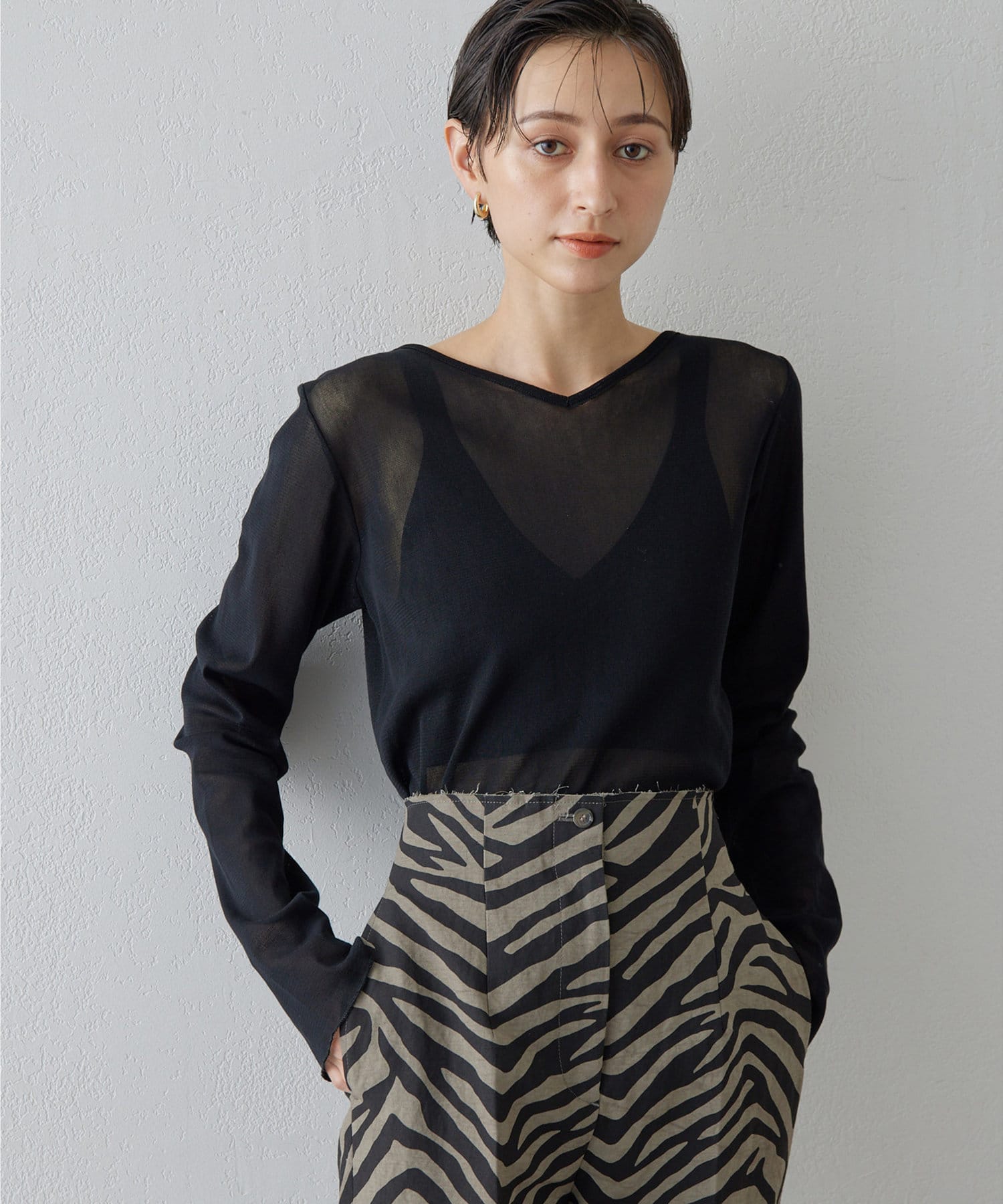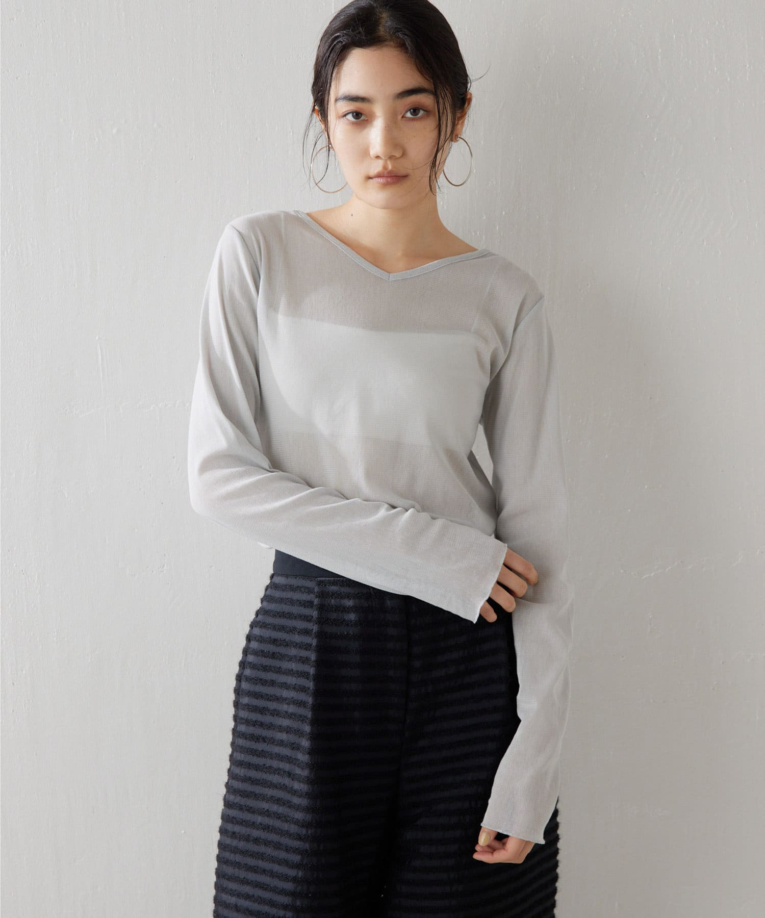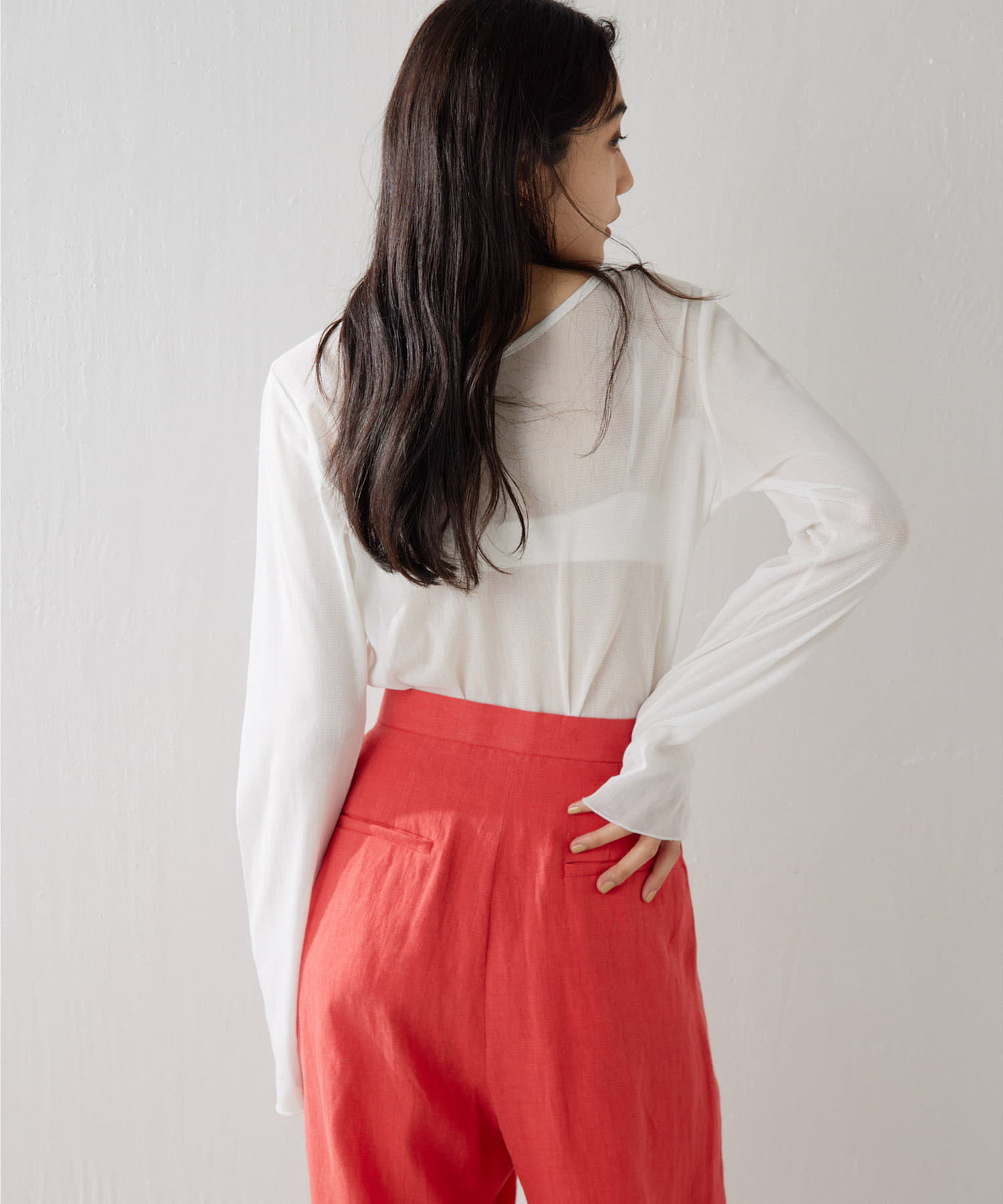 ■上品な透け感がヘルシーなニュアンスをプラスするシアープルオーバー。