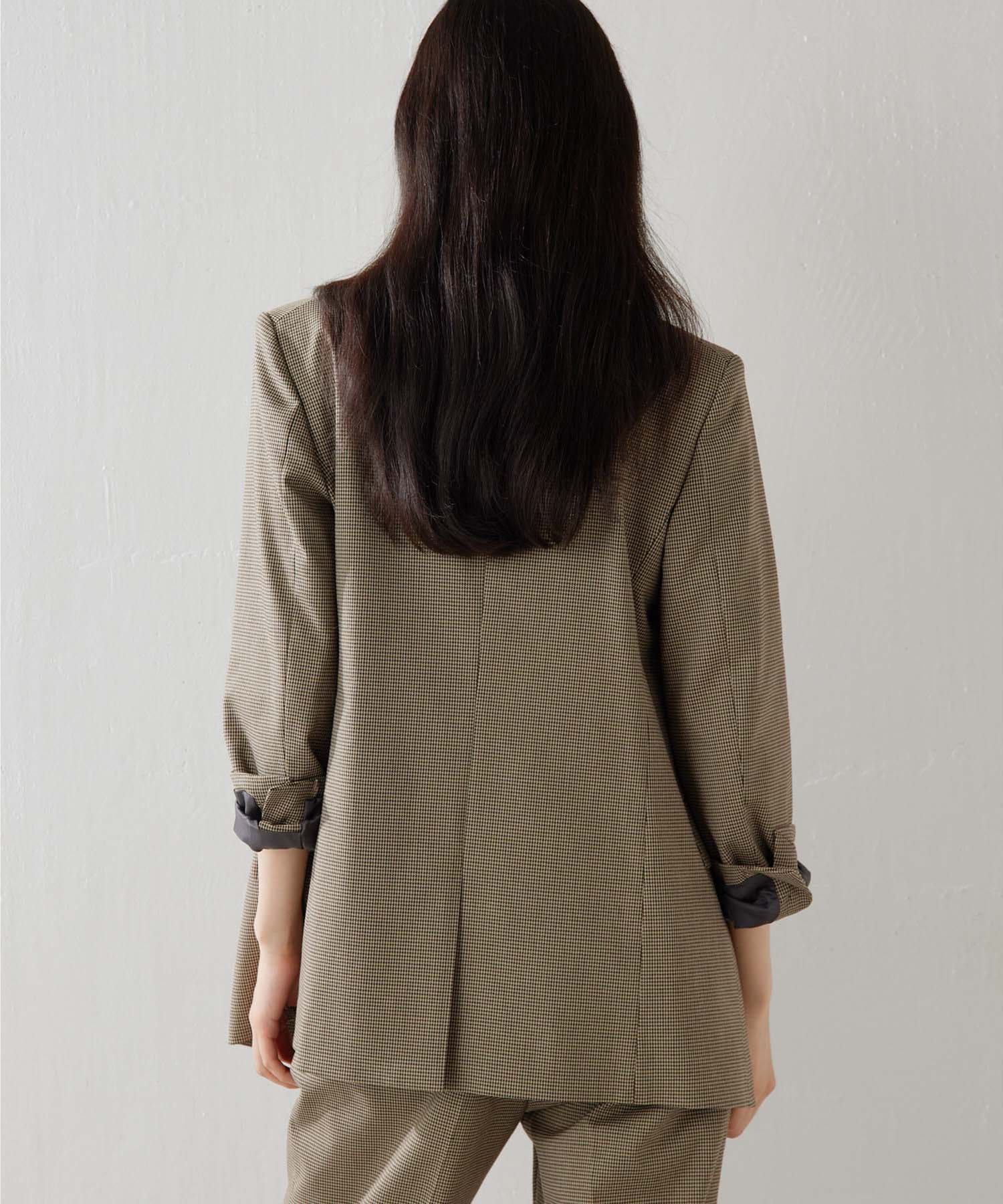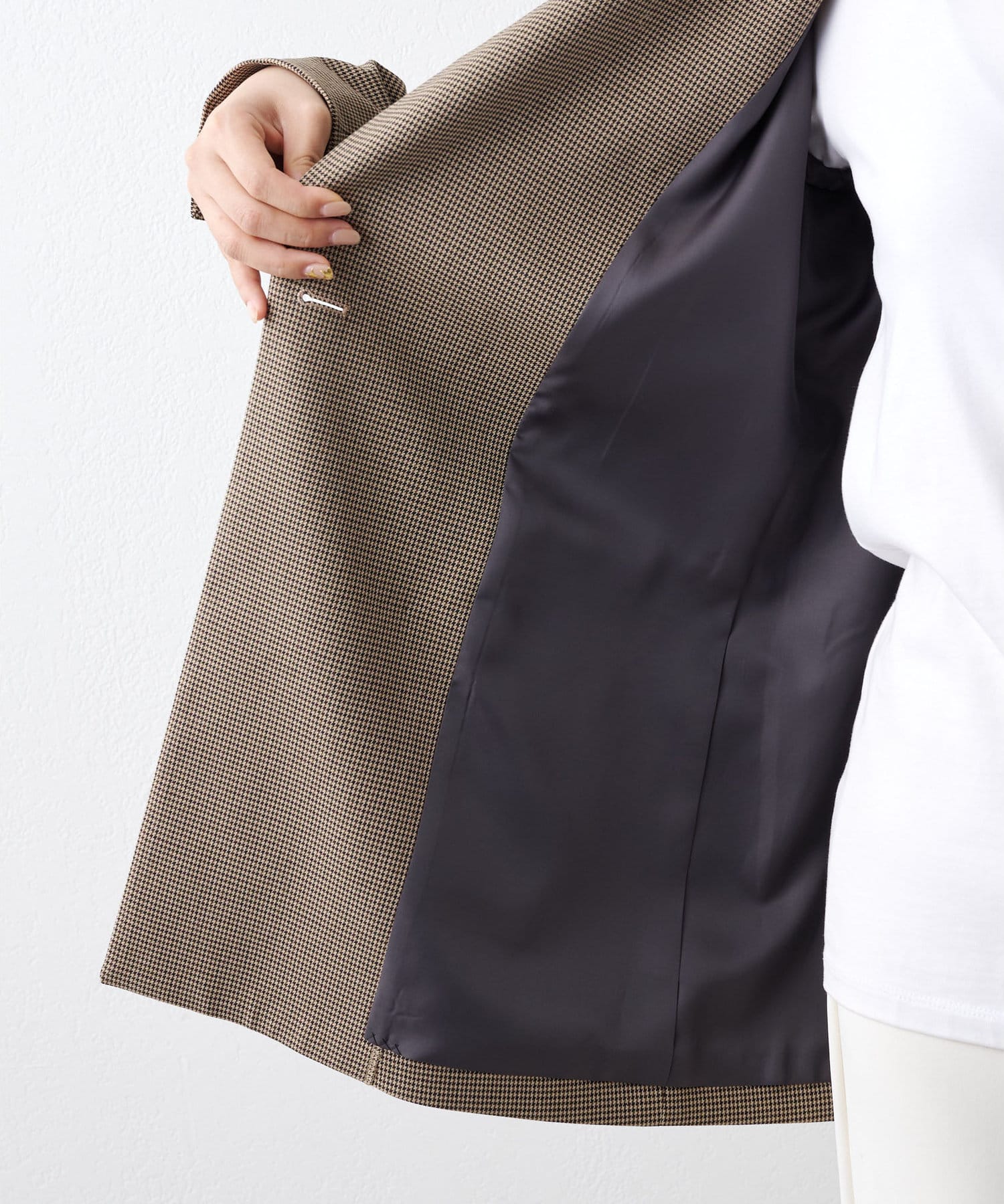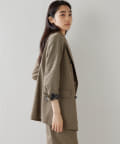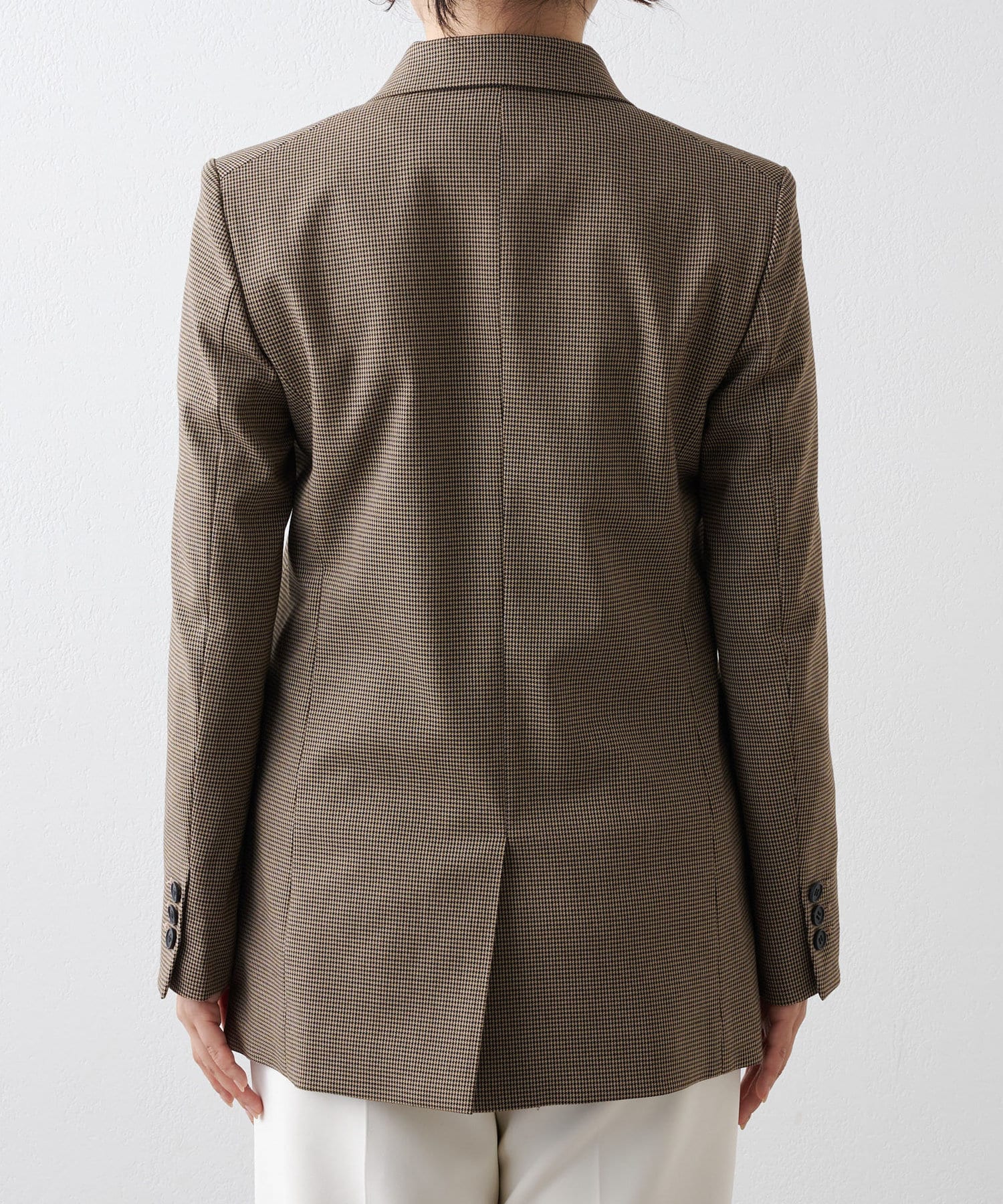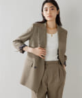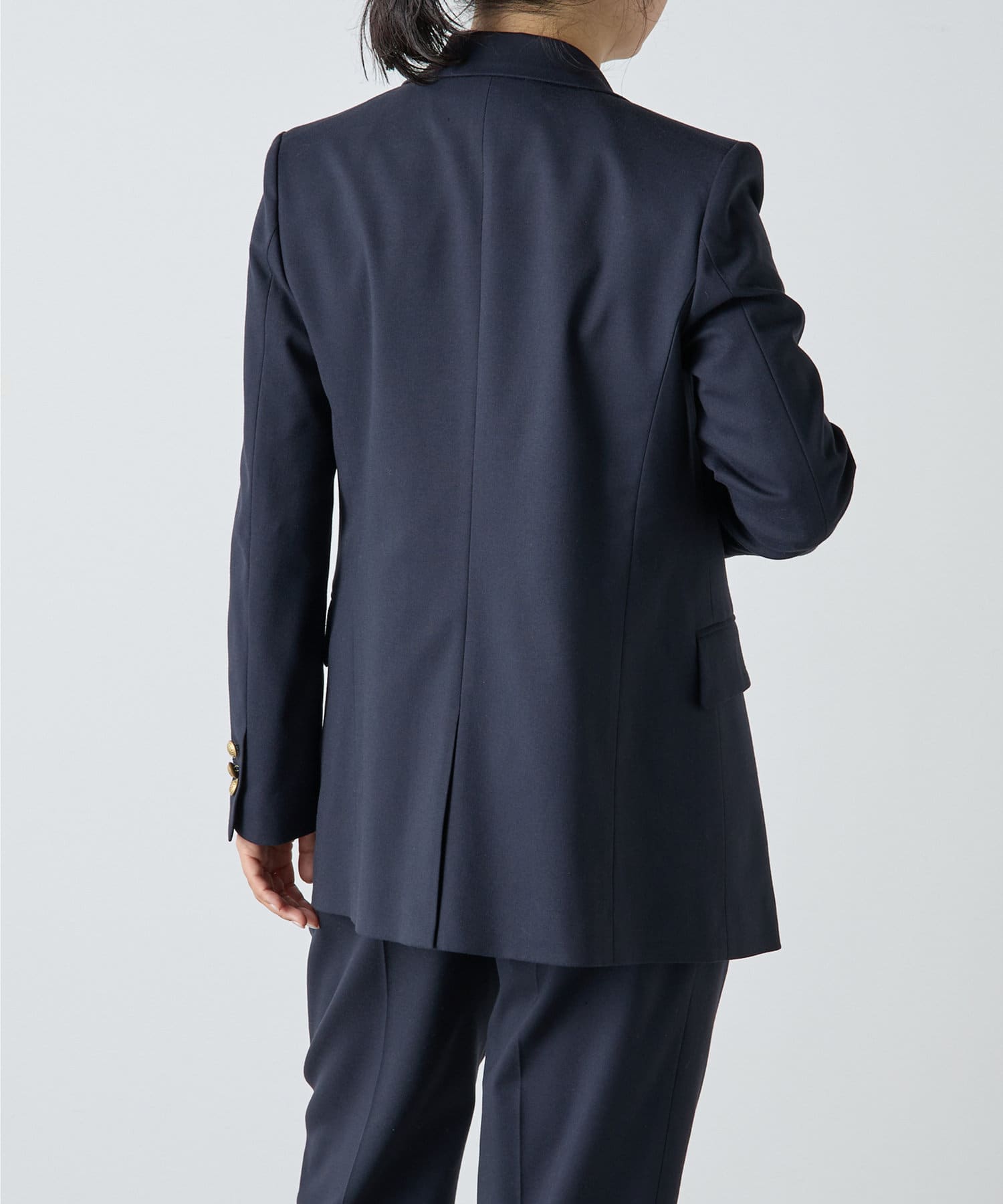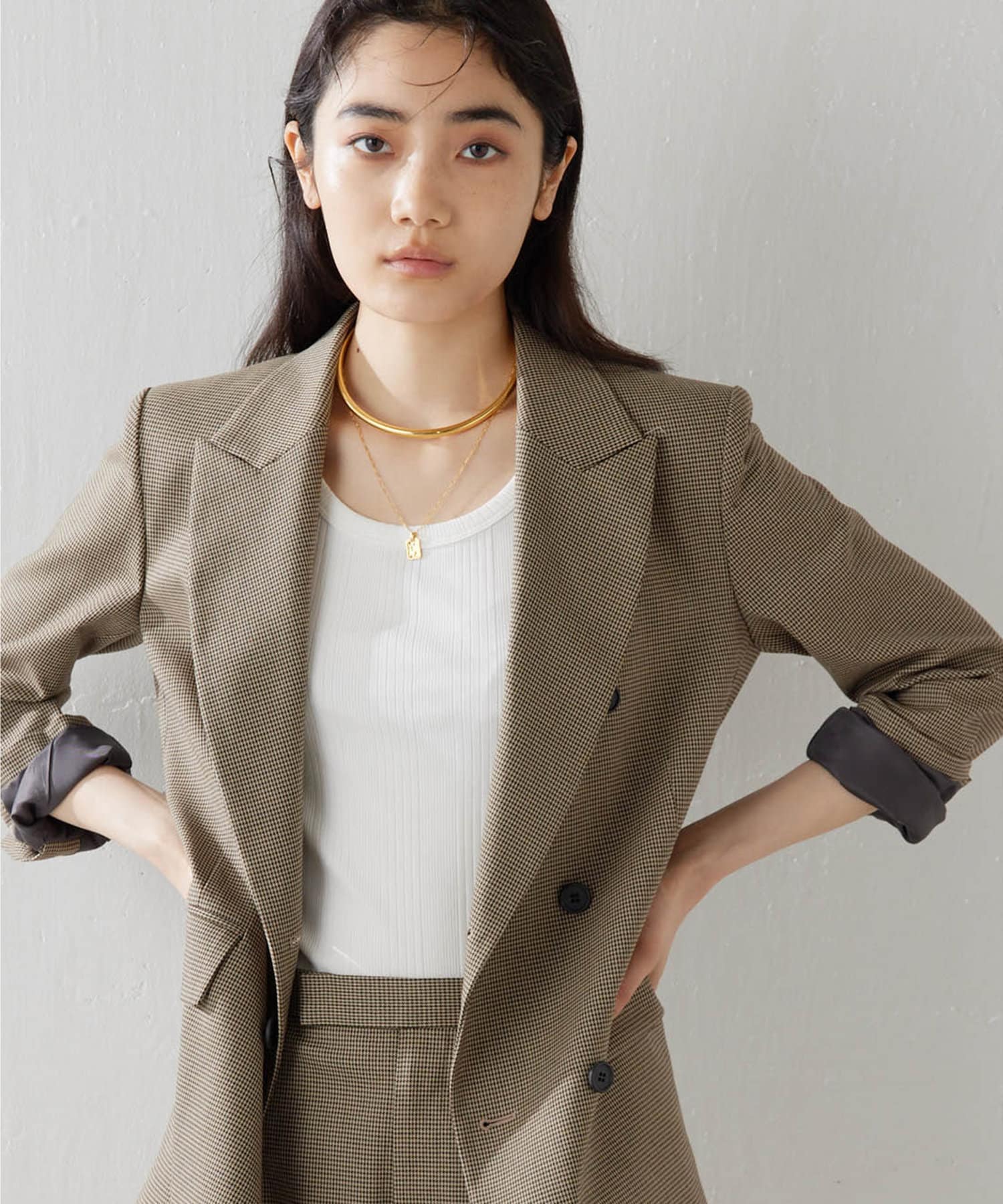 ■薄く入った肩パッドやウエスト位置、長めの着丈と程よいゆとりのあるシルエットがポイント。