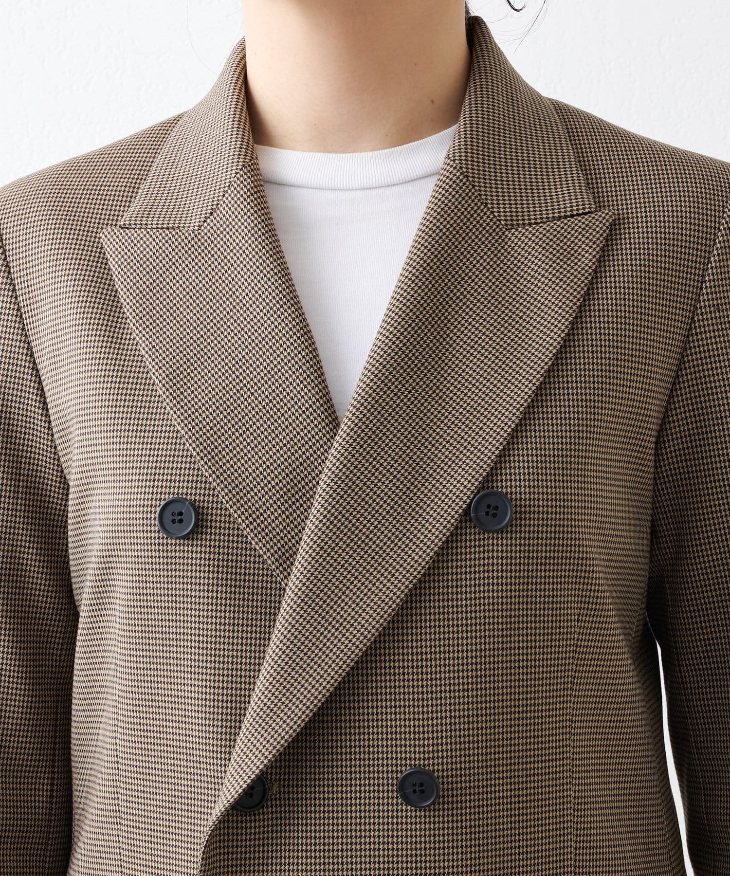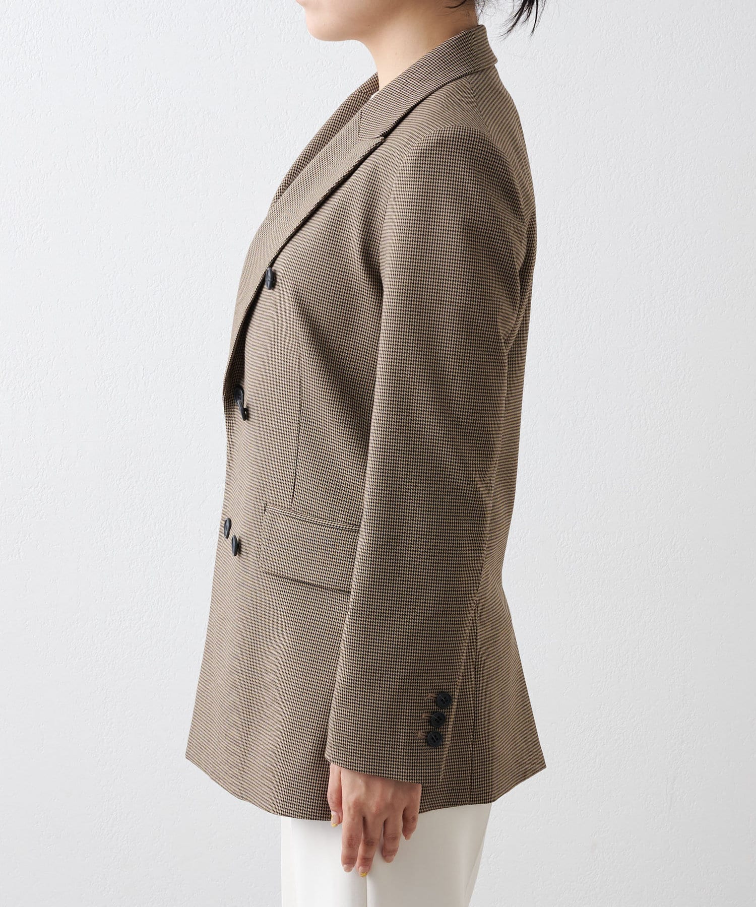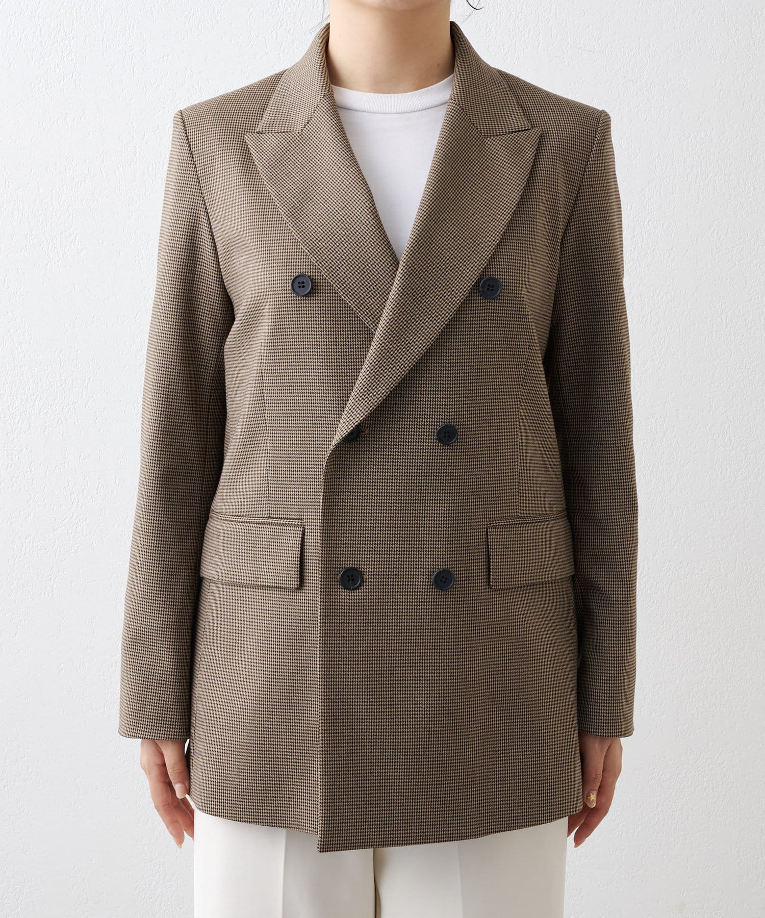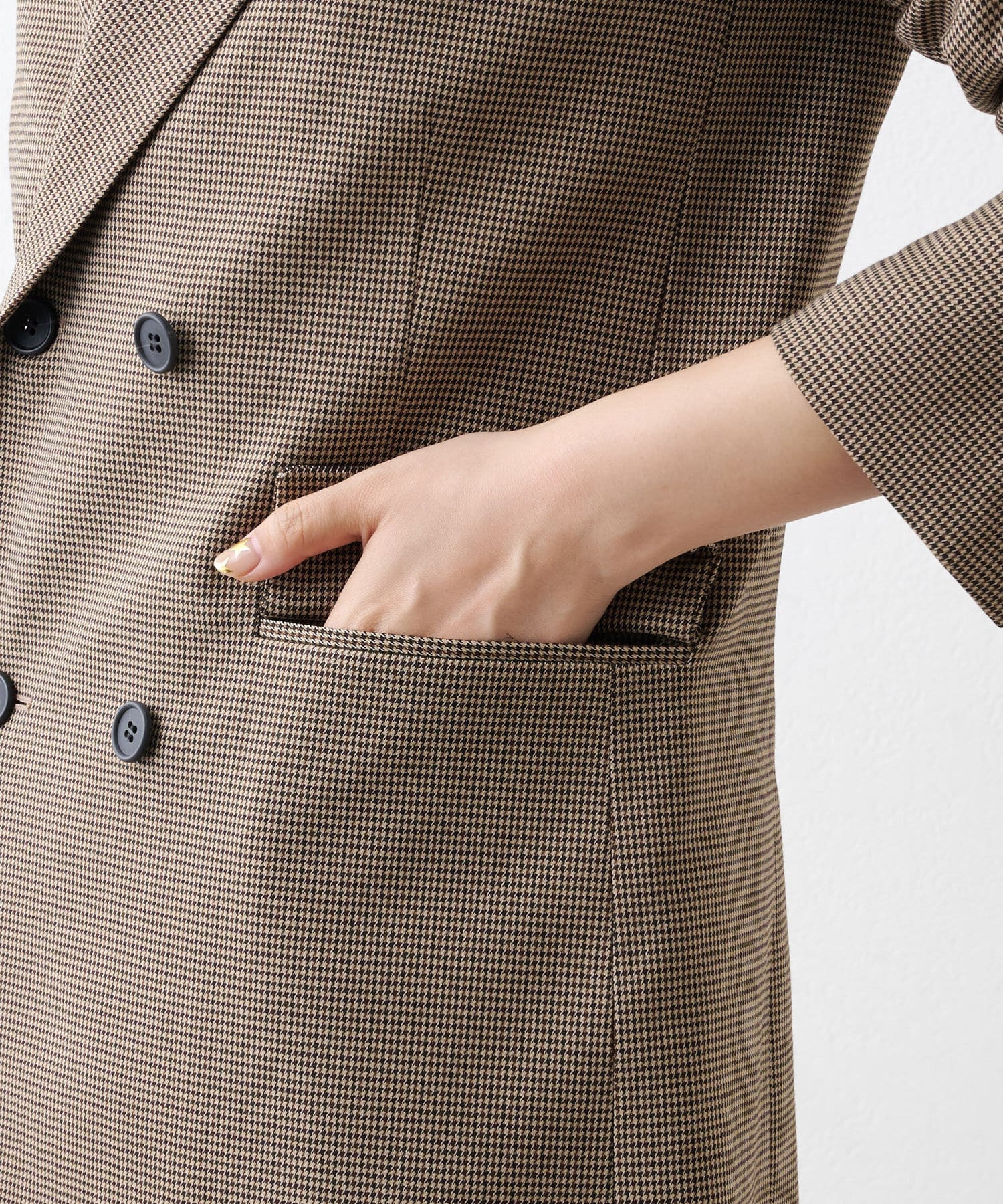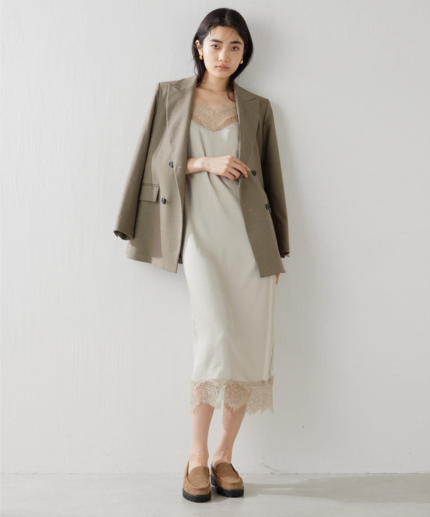 ■薄く入った肩パッドやウエスト位置、長めの着丈と程よいゆとりのあるシルエットがポイント。