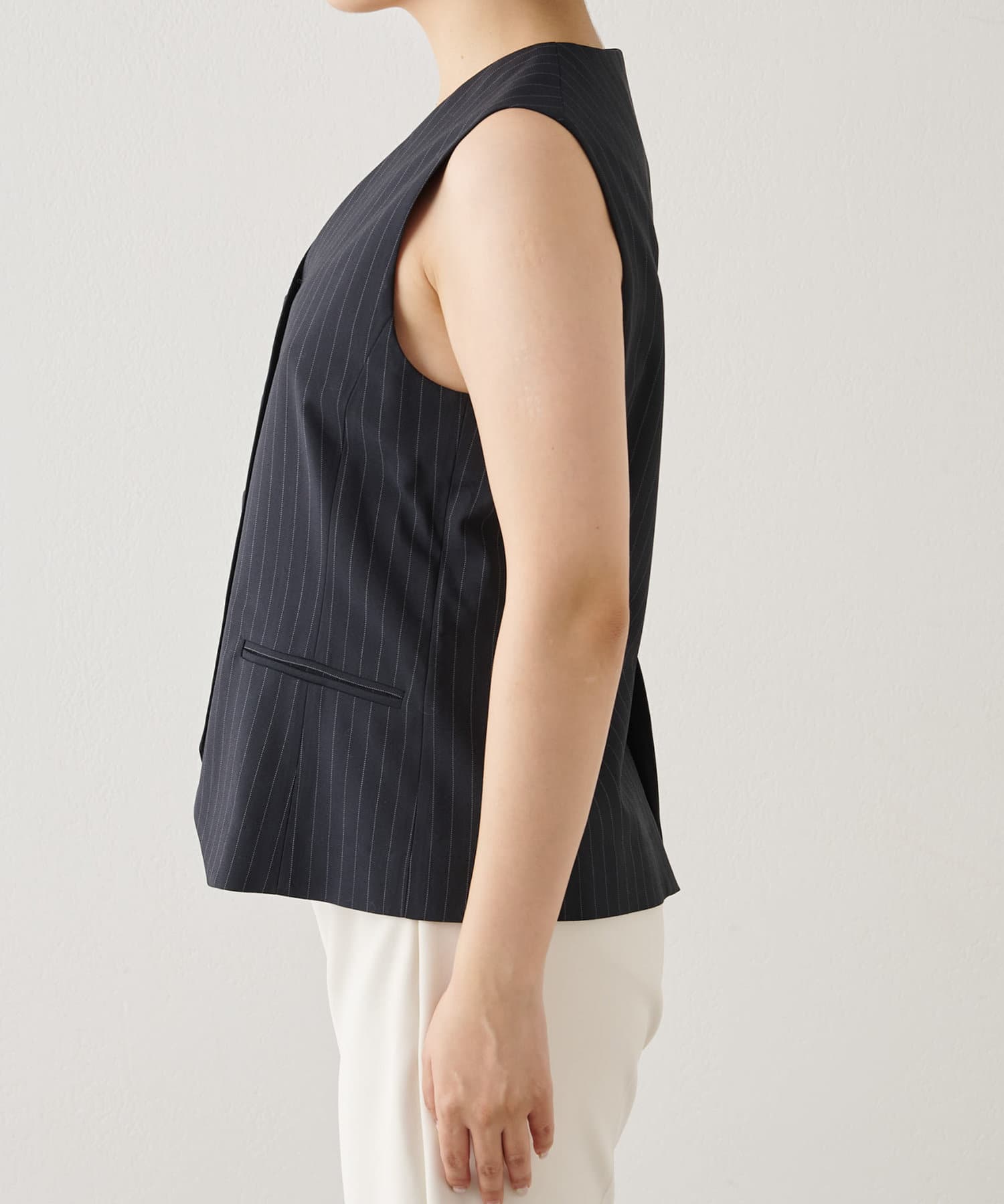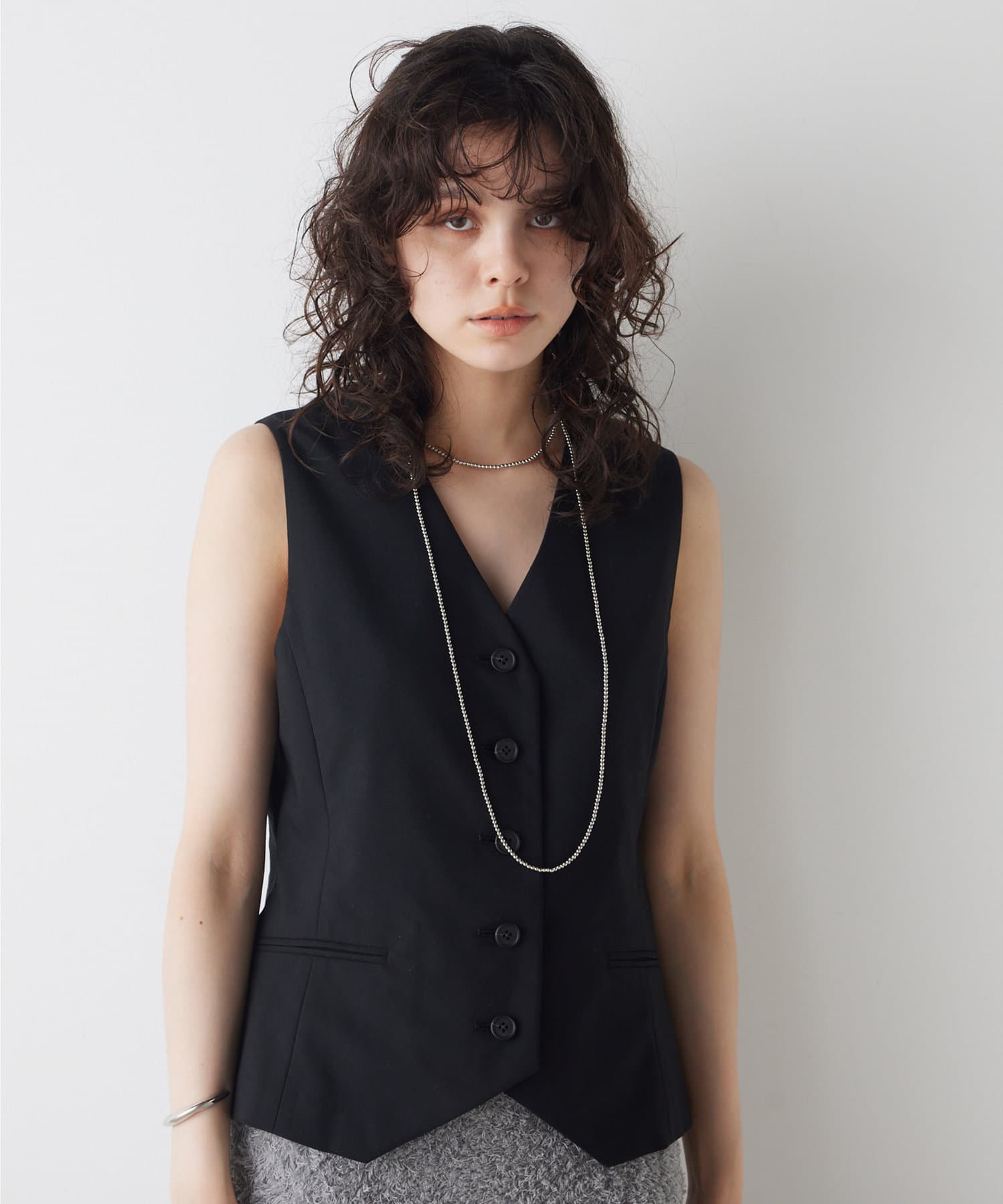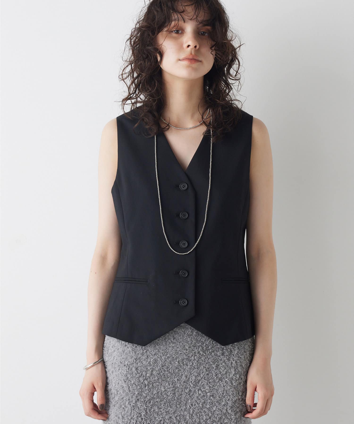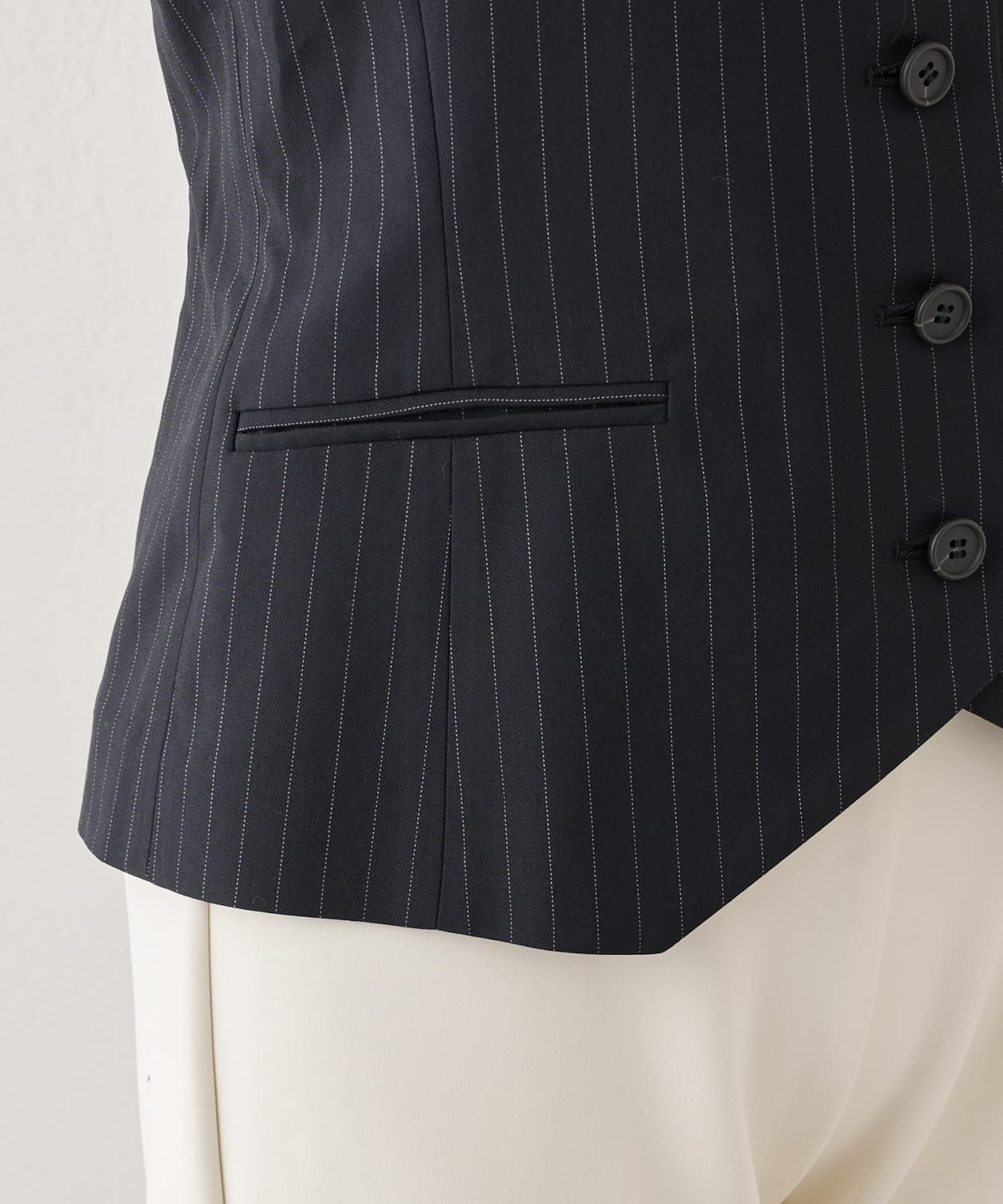 ■きれいなシルエットに仕上げたミニマムなジレ。