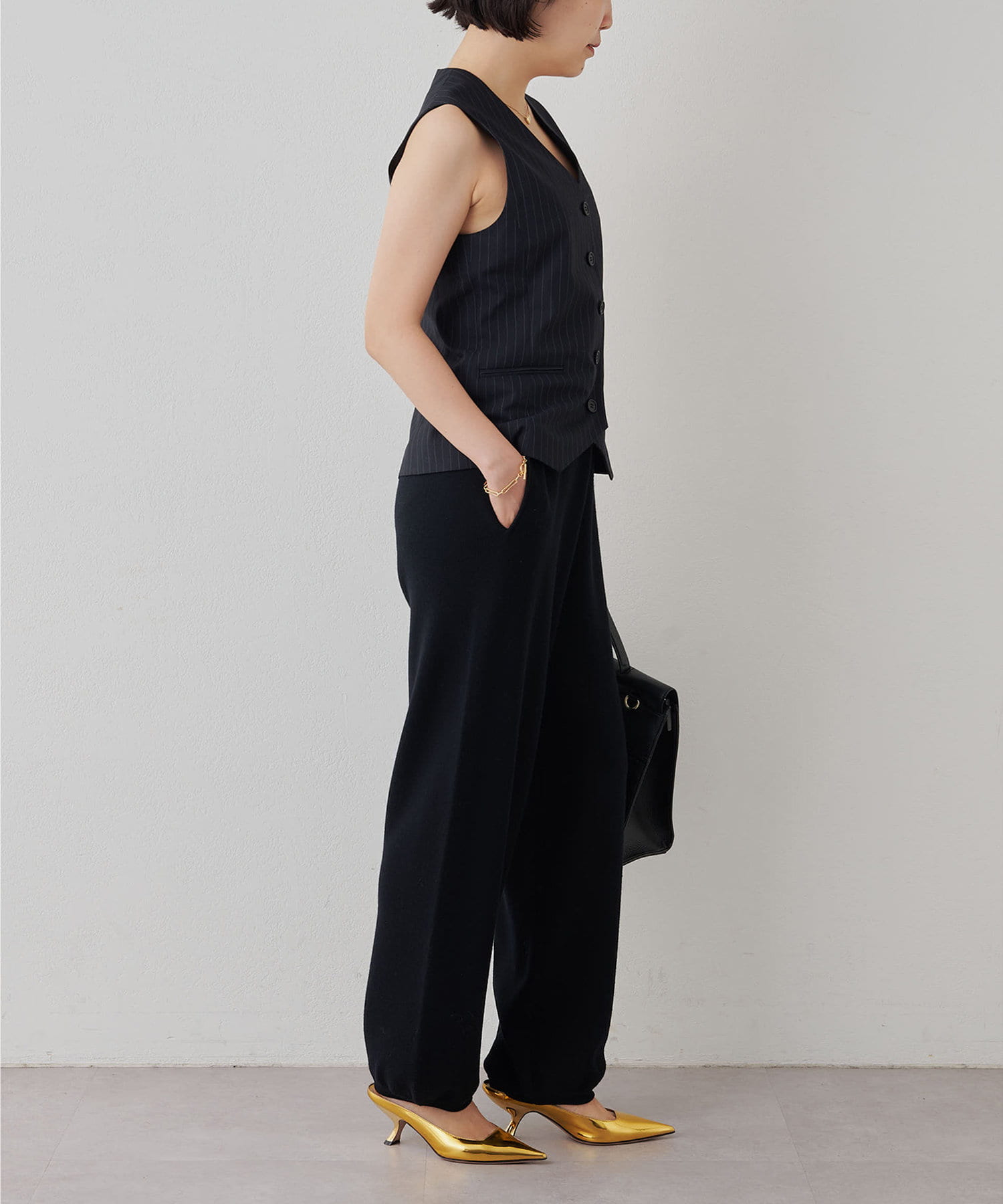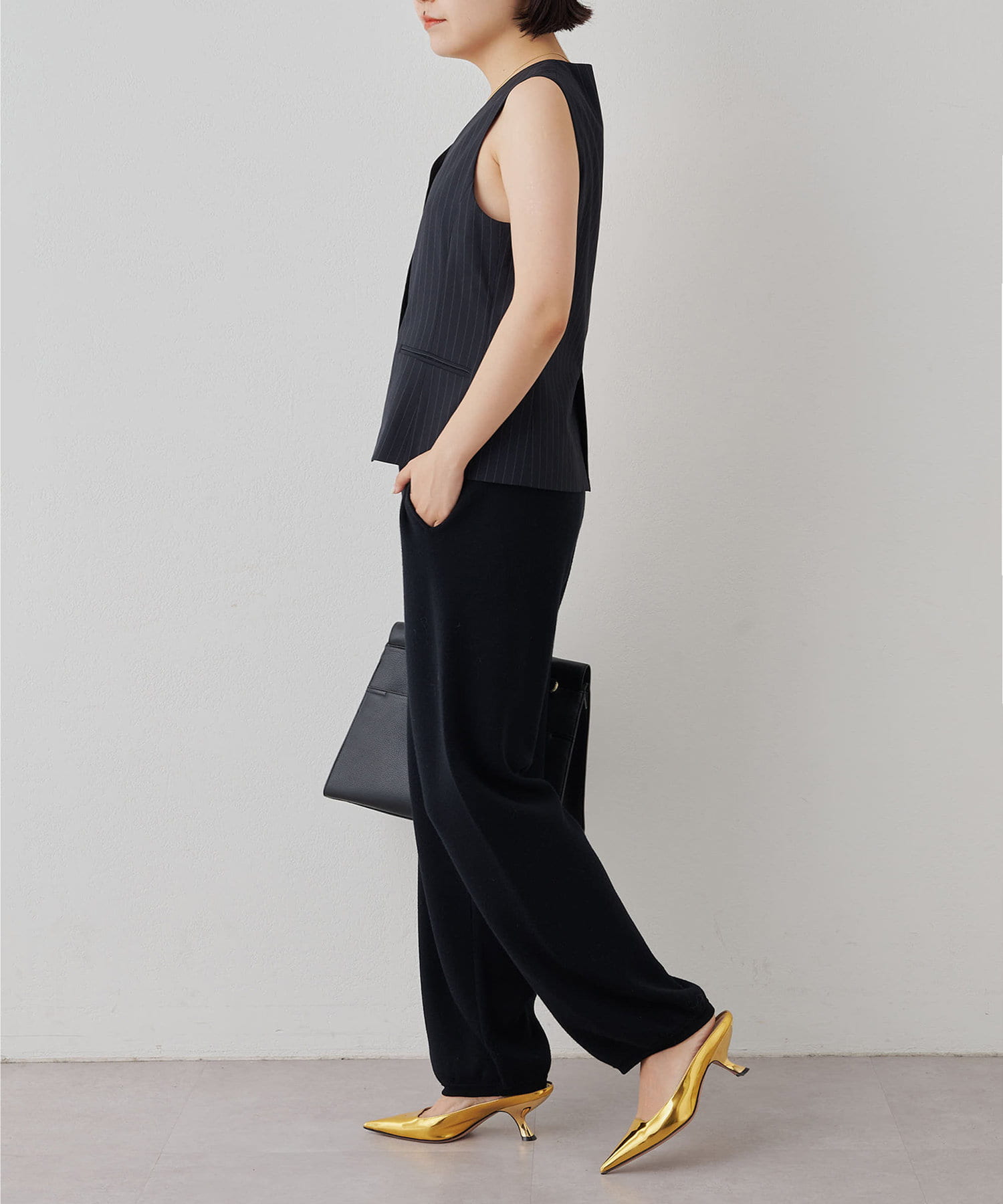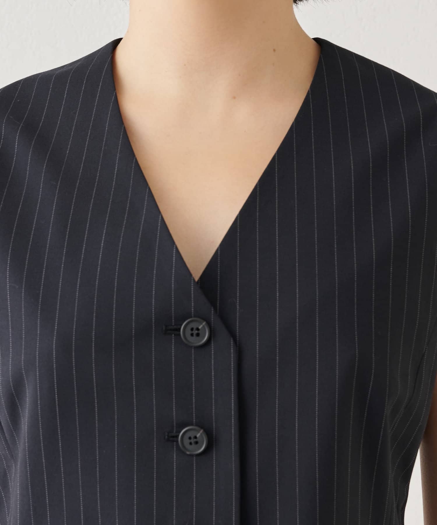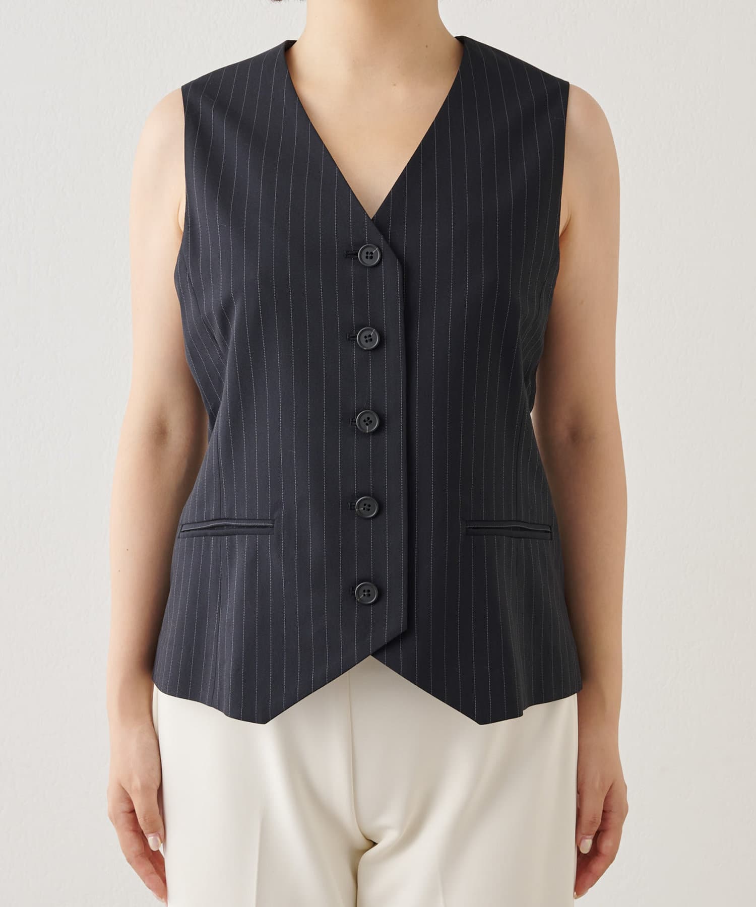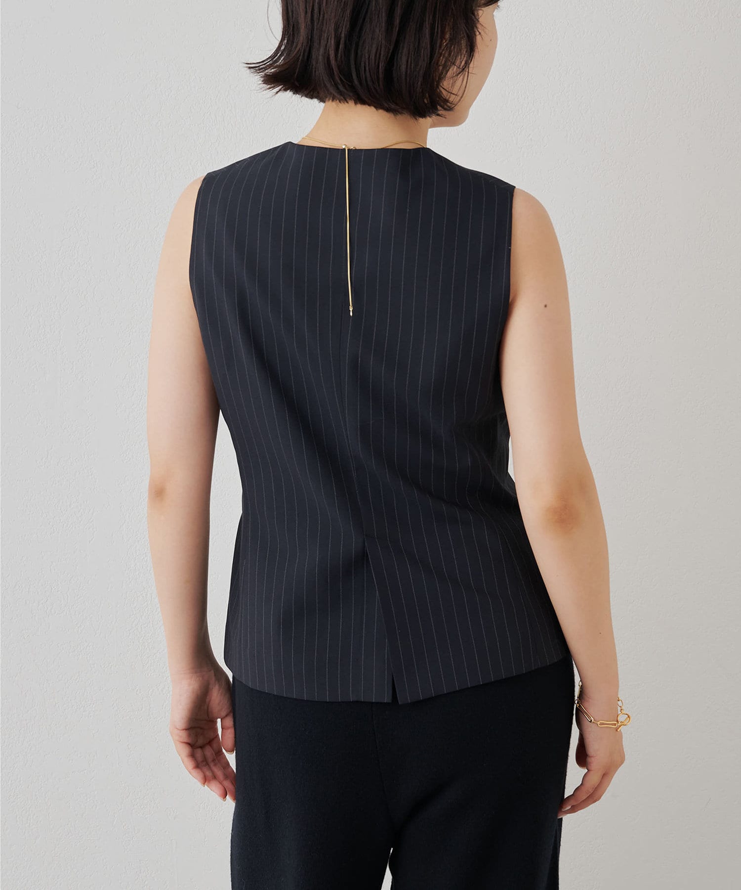 ■きれいなシルエットに仕上げたミニマムなジレ。