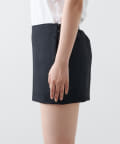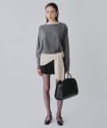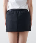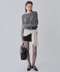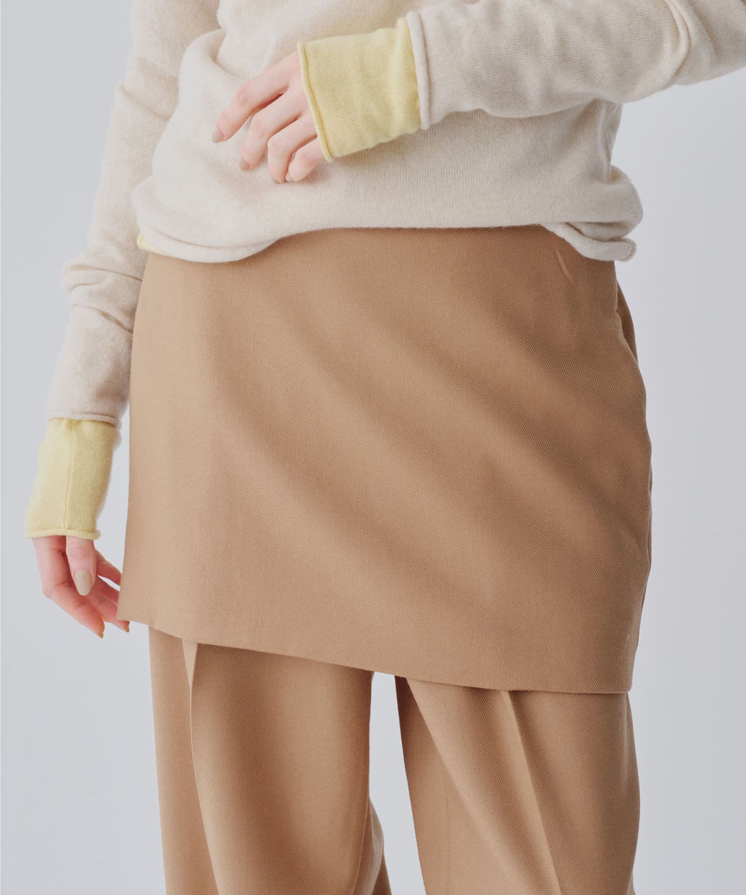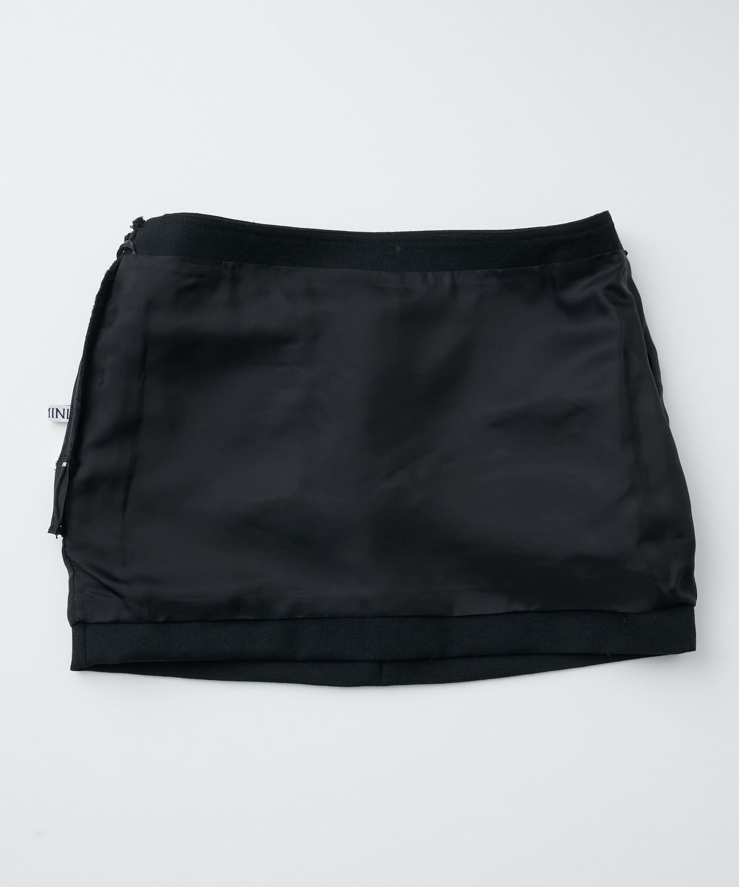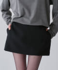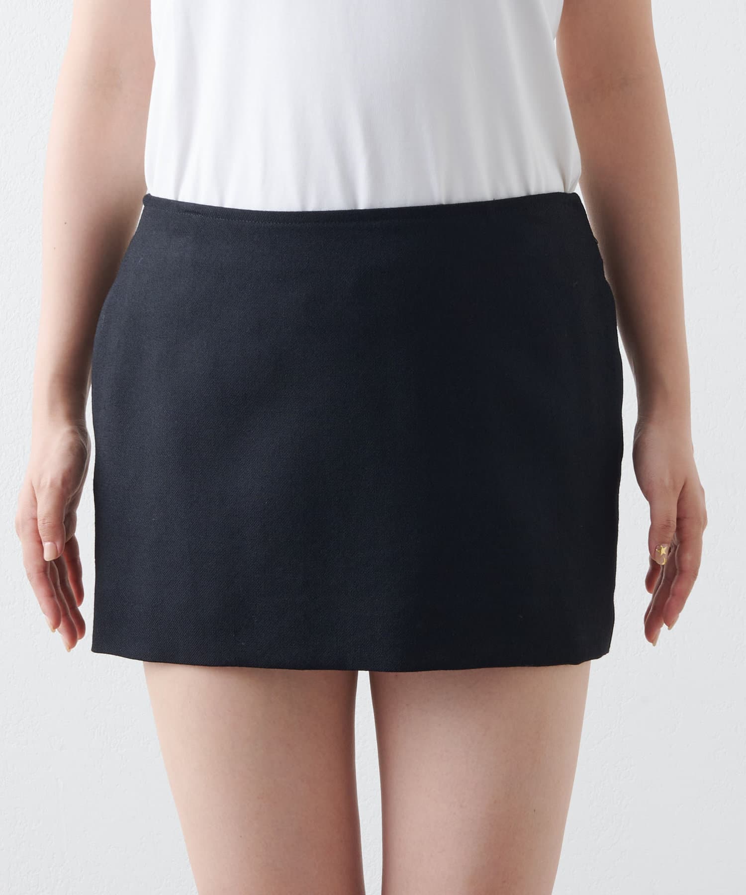 ■ドライなタッチのウールツイル素材を使用したマイクロミニスカート。