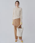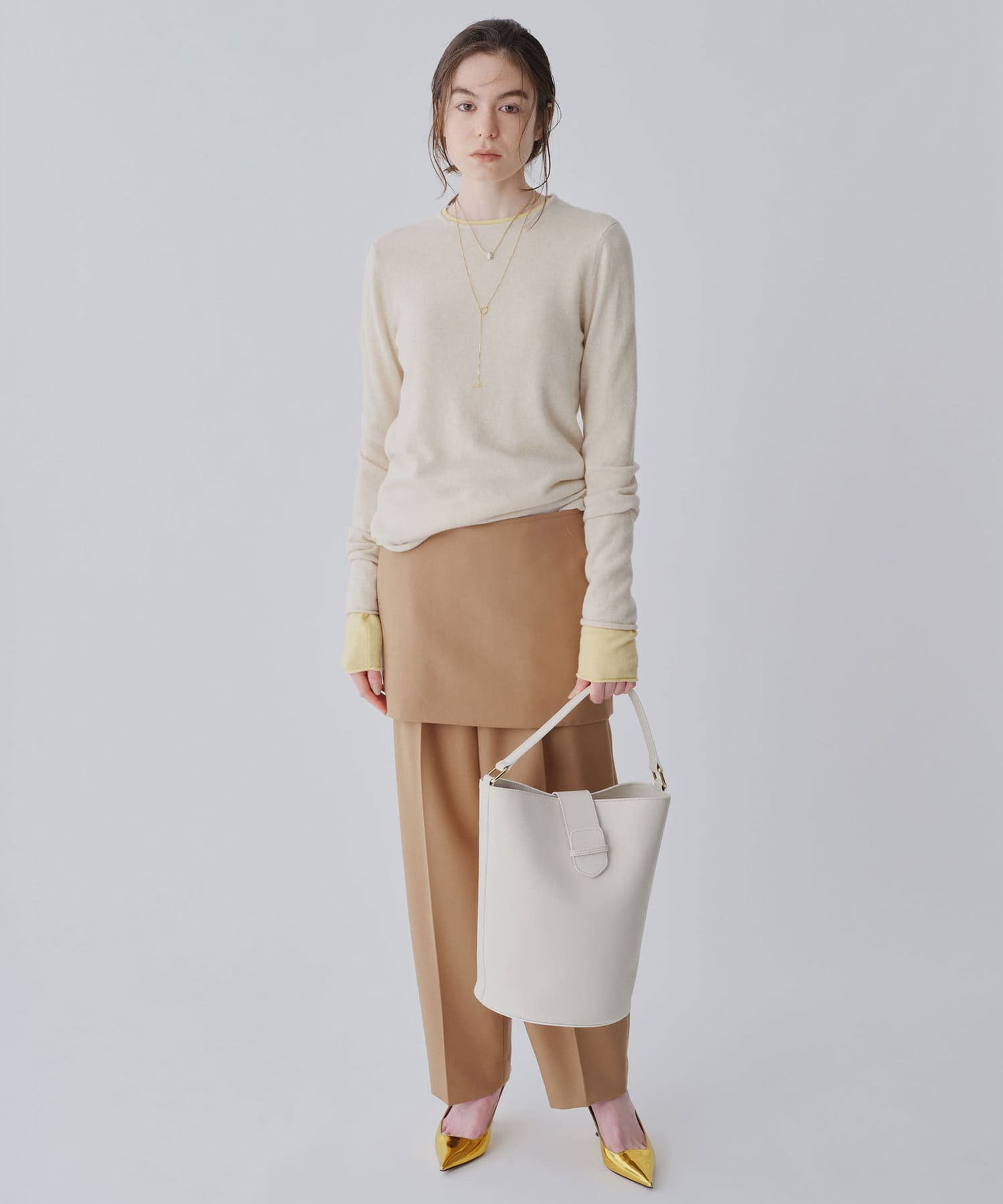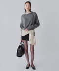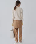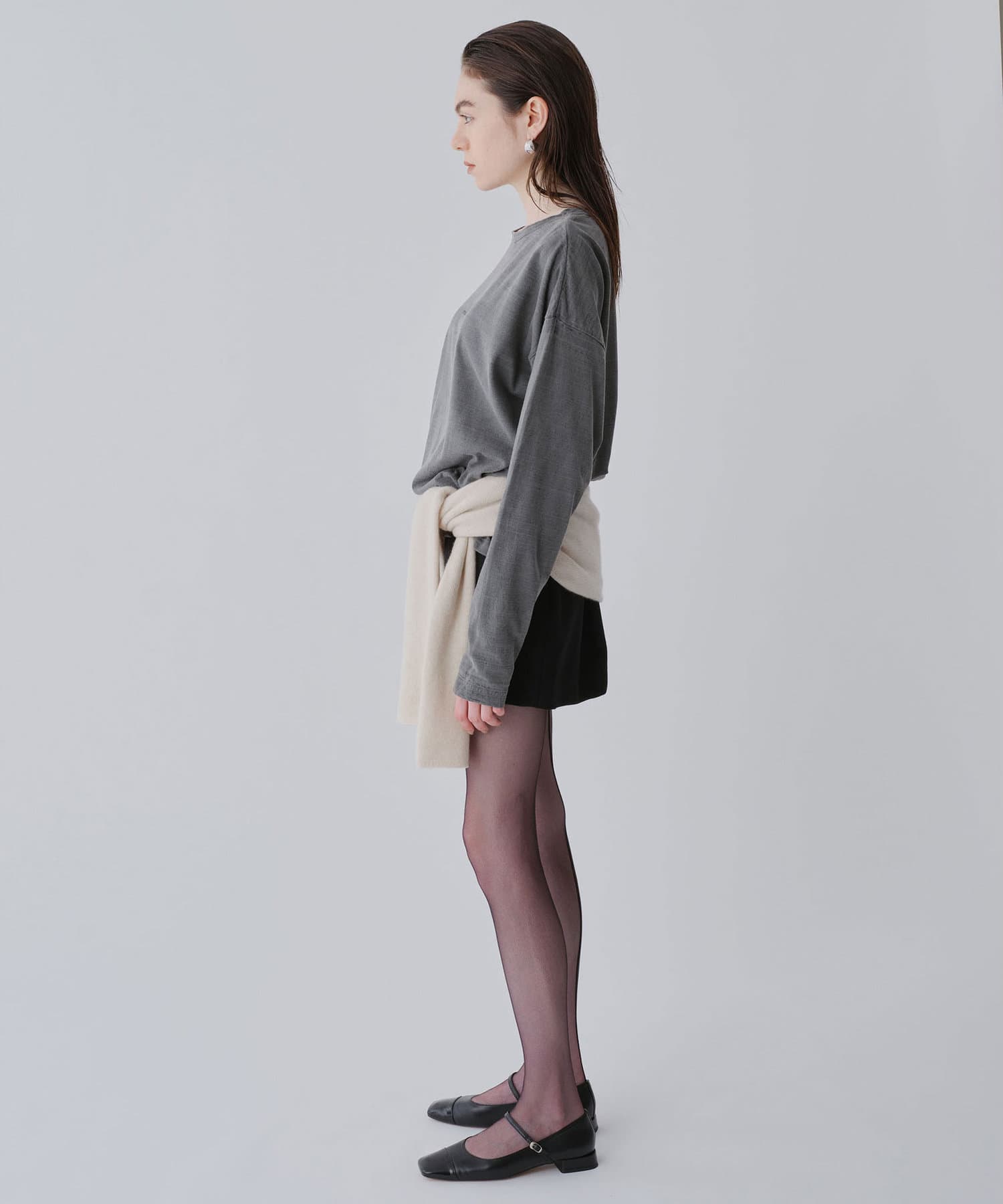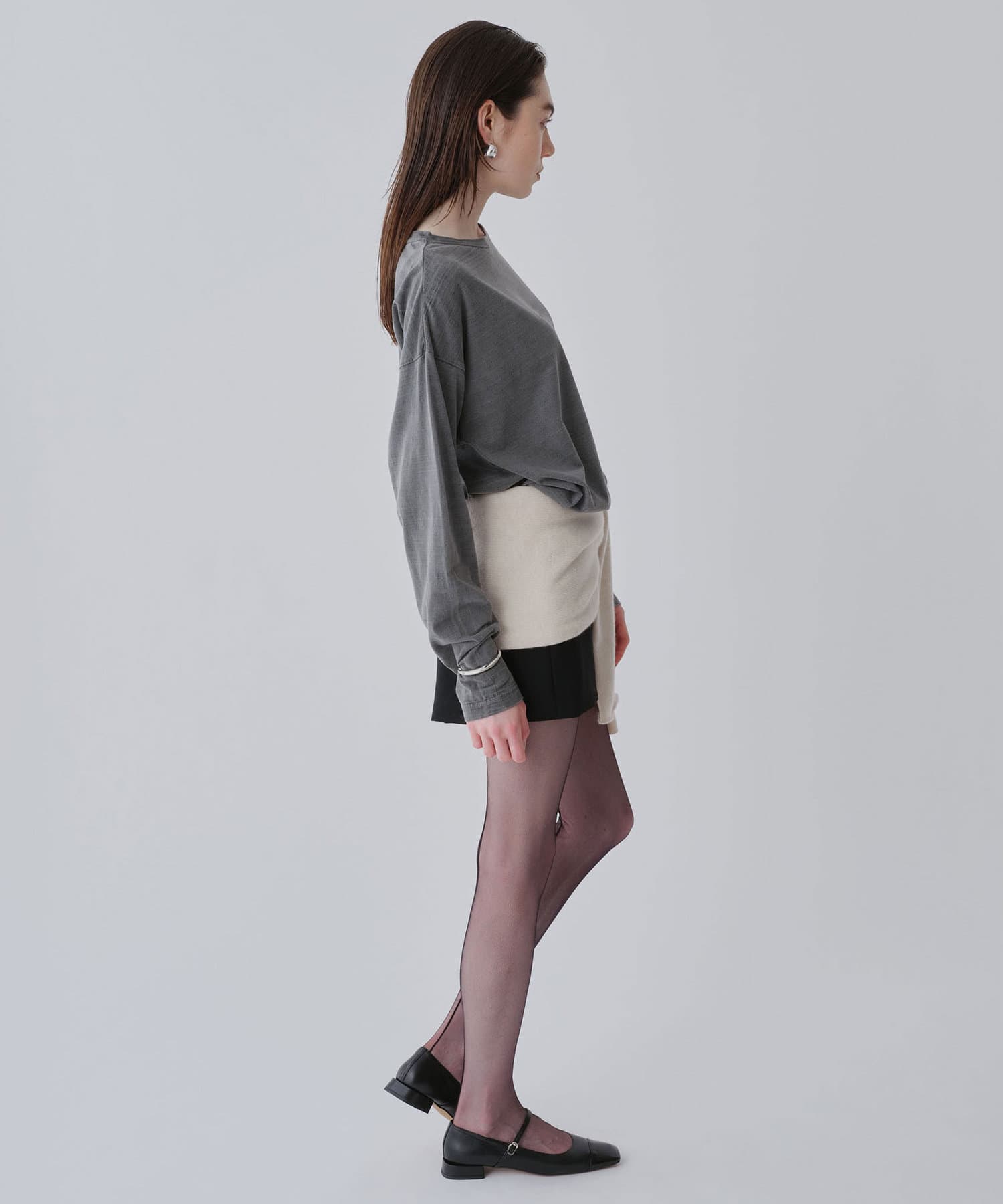 ■後ろのみゴム仕様のウエストデザインですっきりと着こなせ、レイヤードスタイルにも使いやすい一枚。