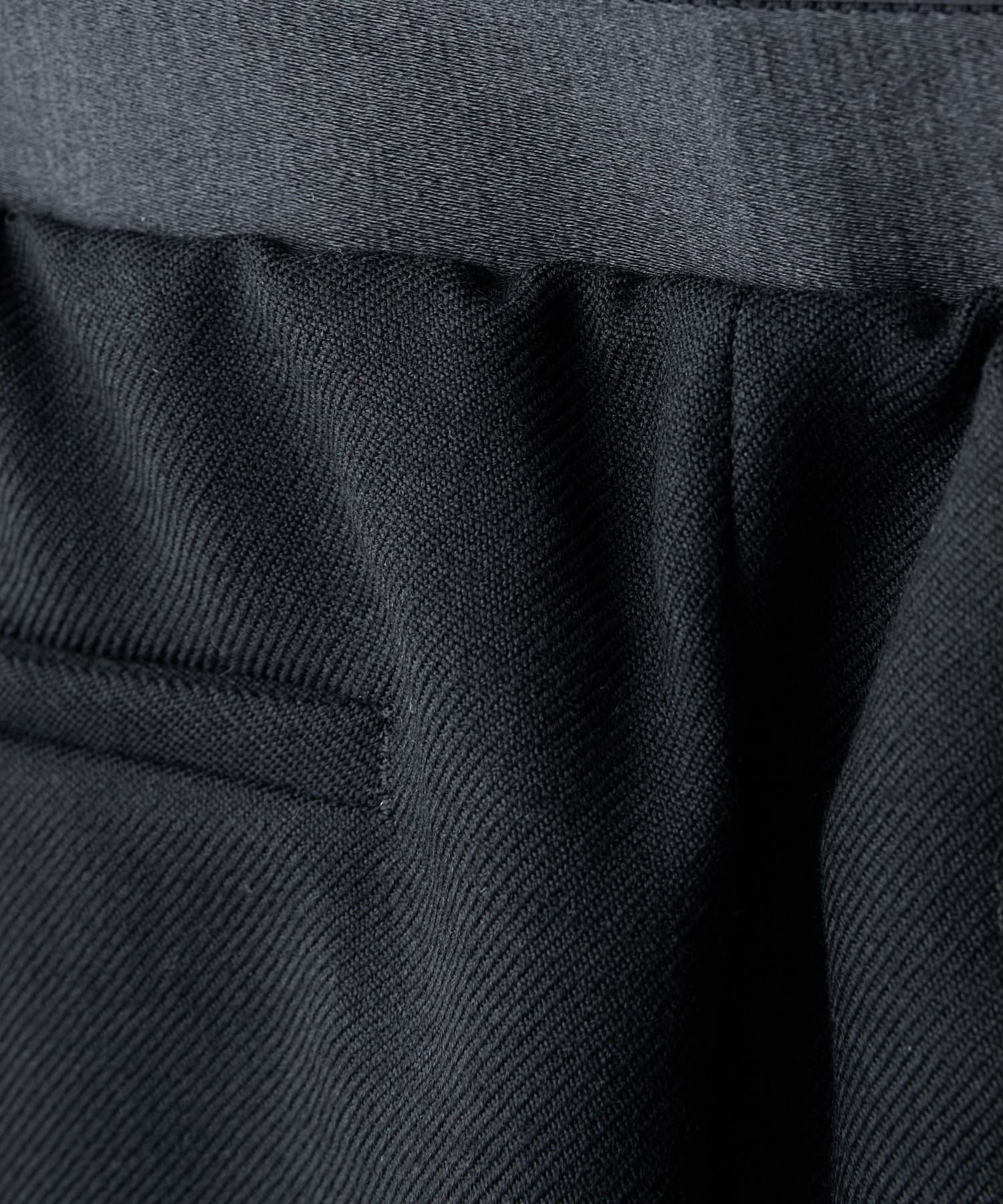 ■ウールの中でもハリとコシのある原料を使用した素材は、程よい肉感を持ち綺麗なシルエットを構築。
