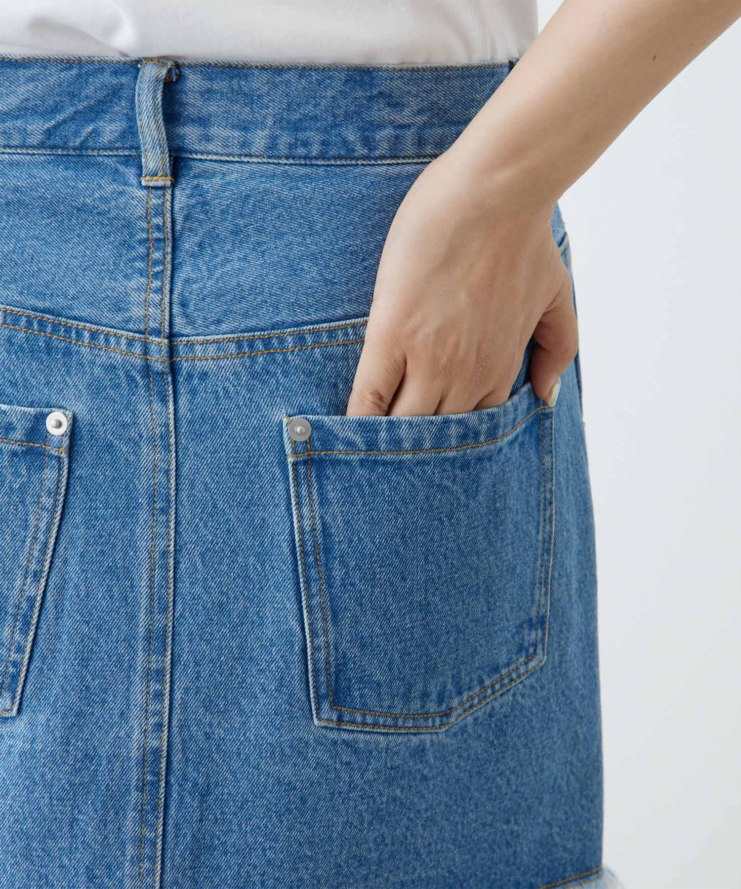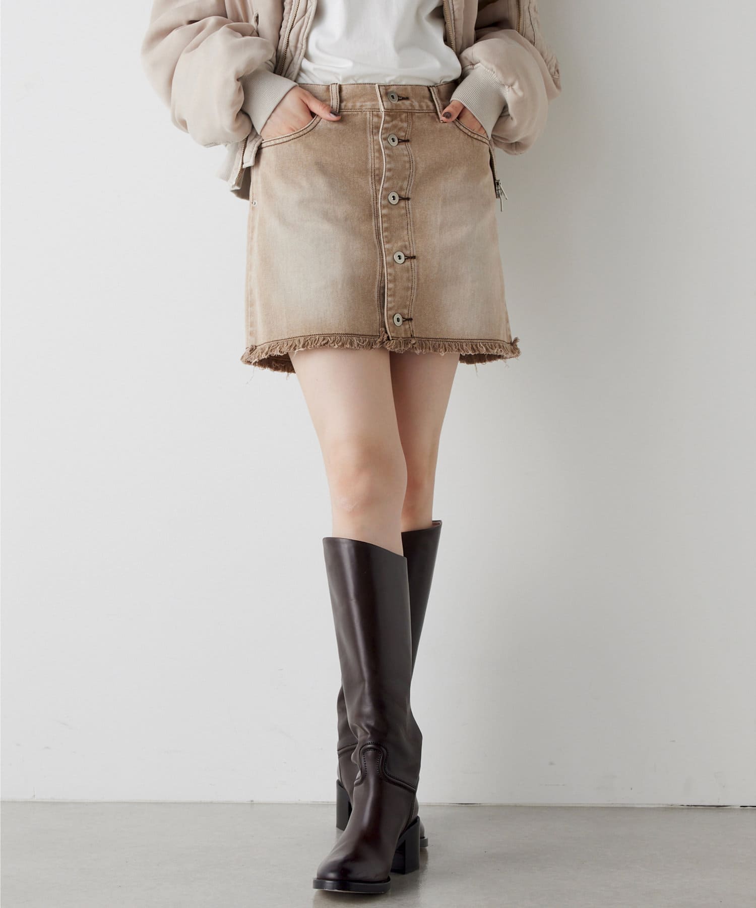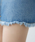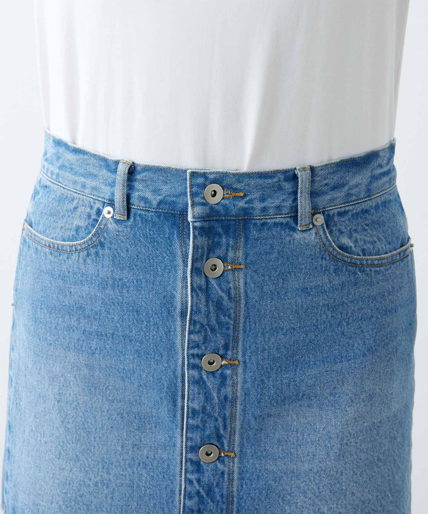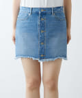 ■フロントボタンがポイントになったミニ丈のデニムスカート。