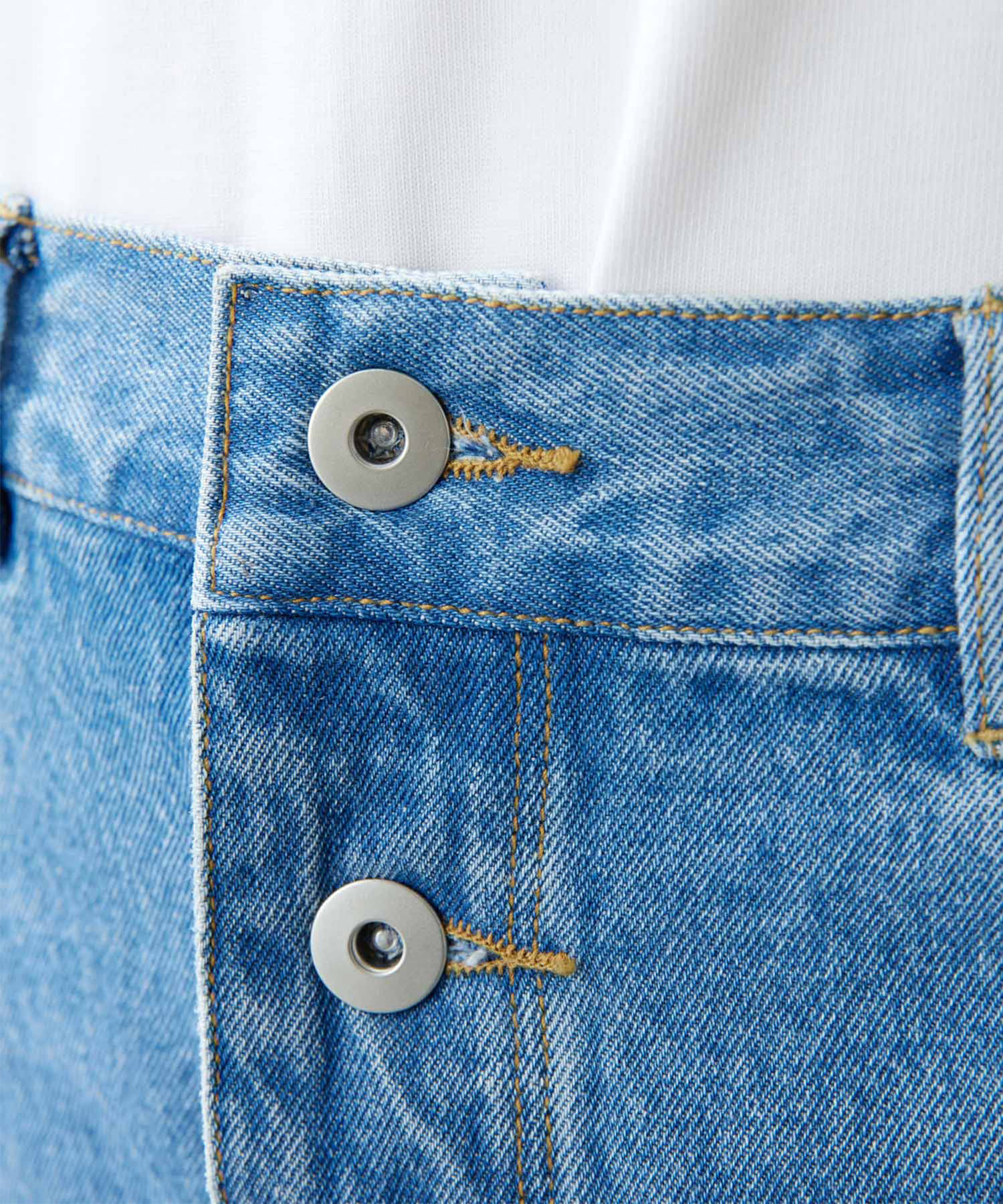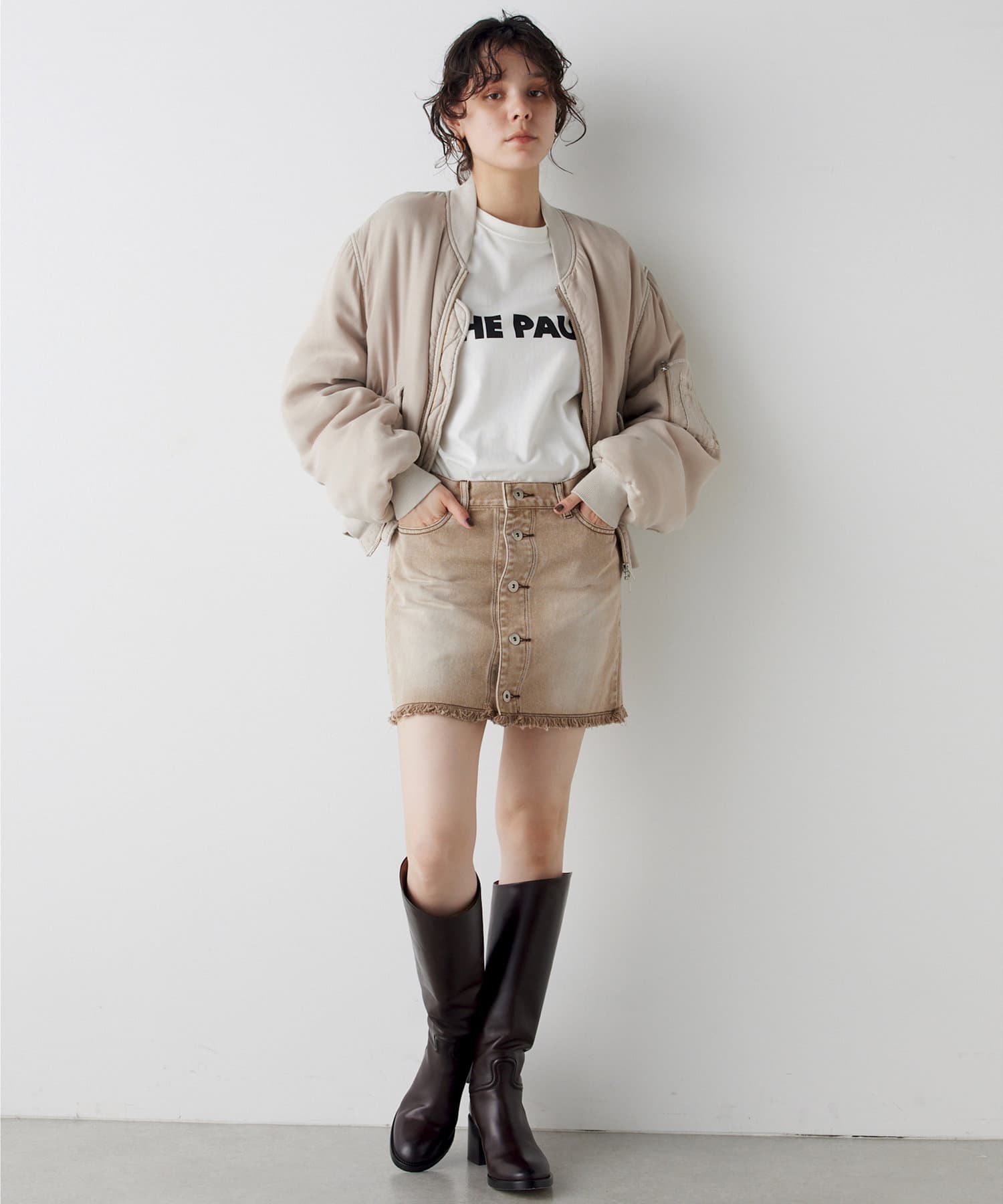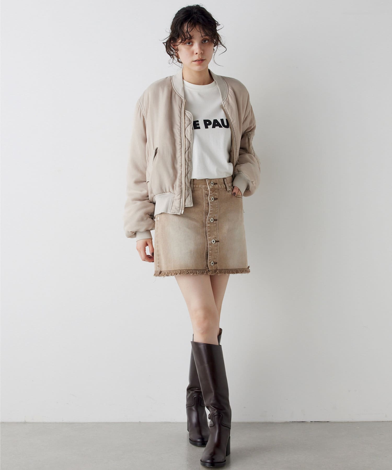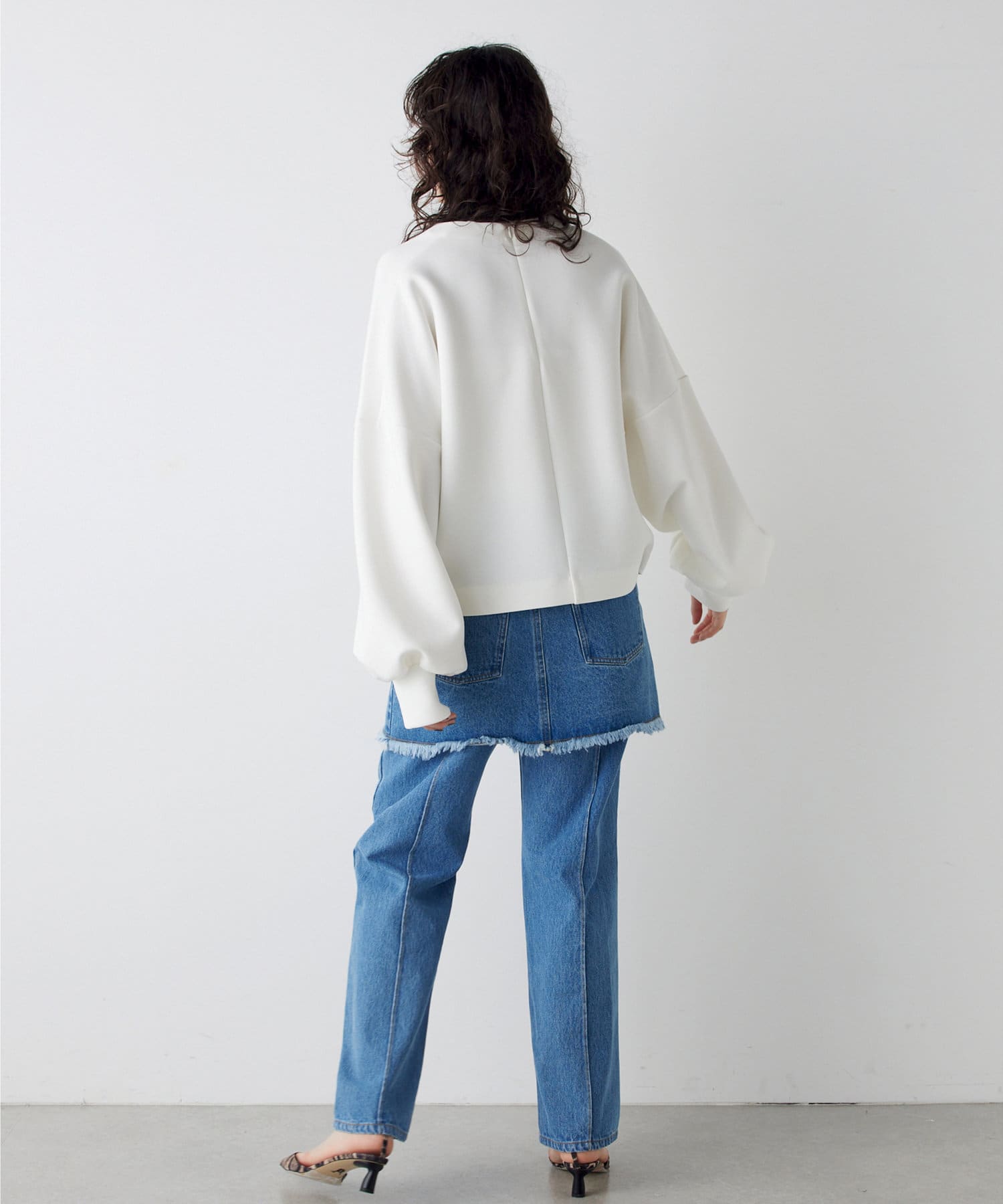 ■一枚ではもちろん、同素材のデニムや様々なボトムの上に重ね履きするスタイリングもおすすめ。