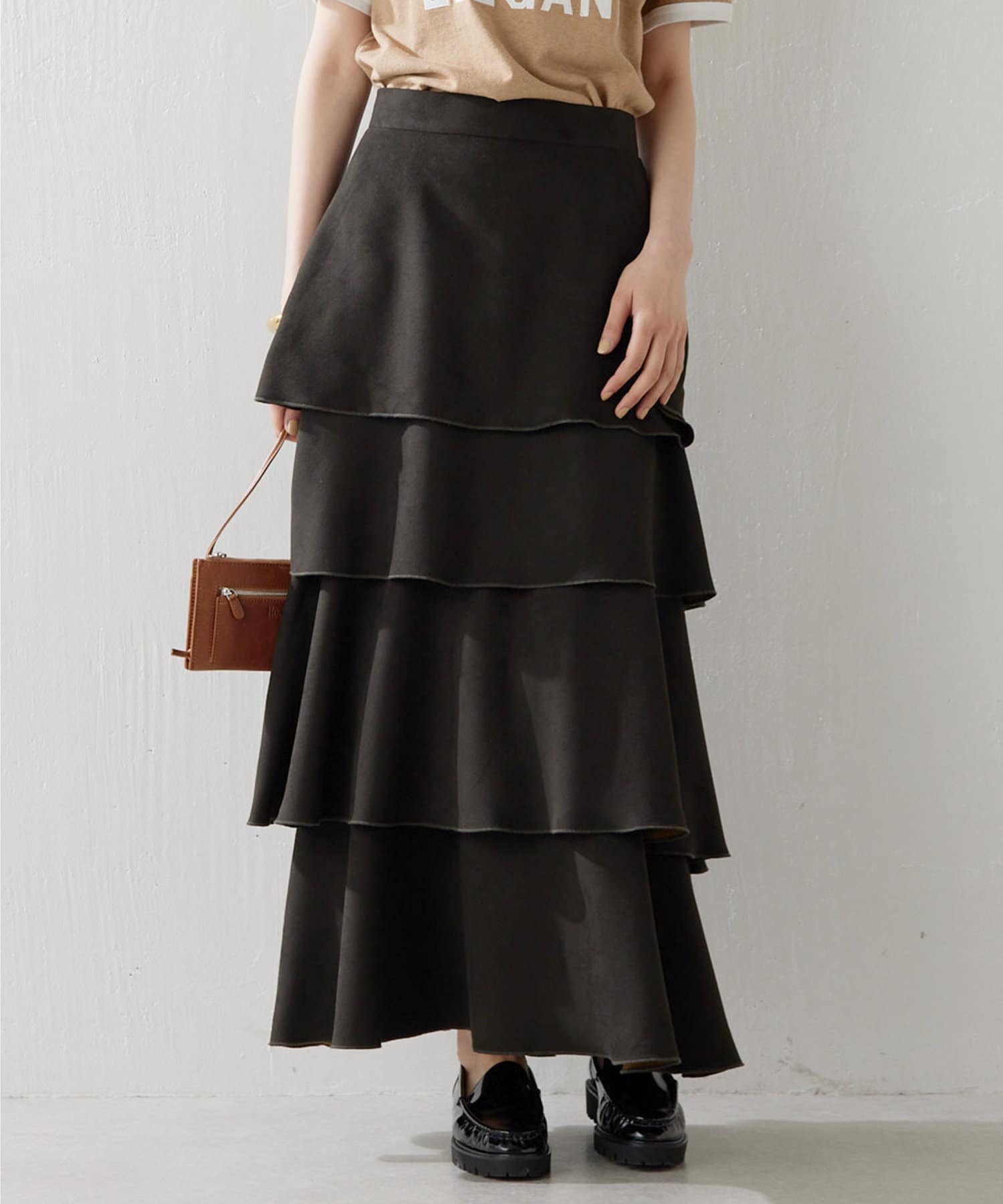 ■広がりすぎないティアードシルエットが大人っぽいムードを感じる一枚。
