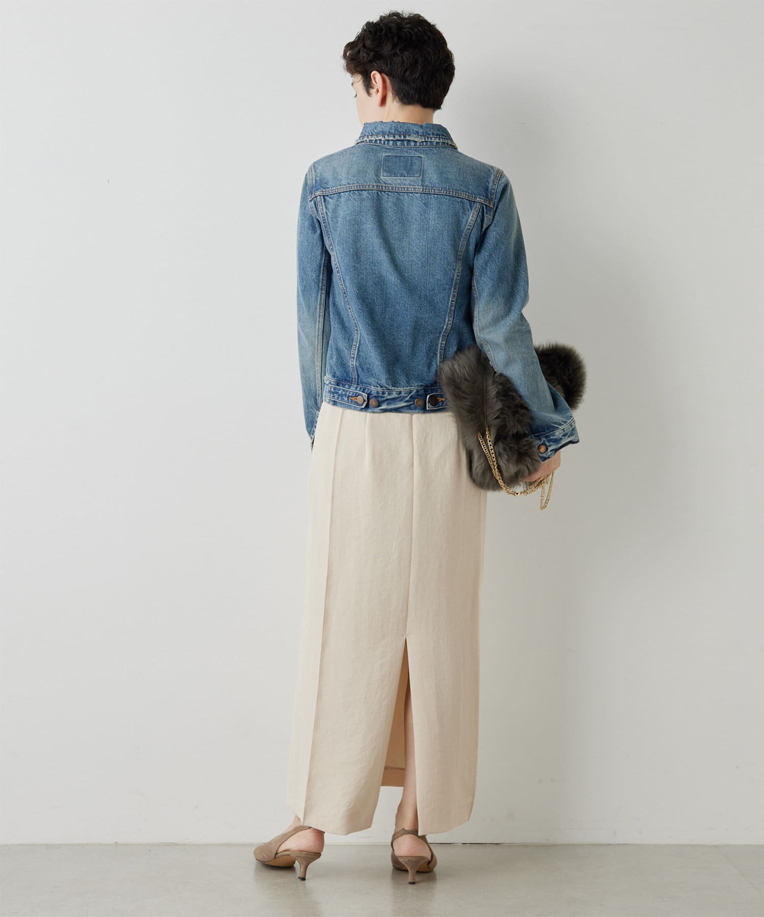 ■脇ハギをなくして前後ともにピンタックを施し、スクエアシルエットを表現した一枚。