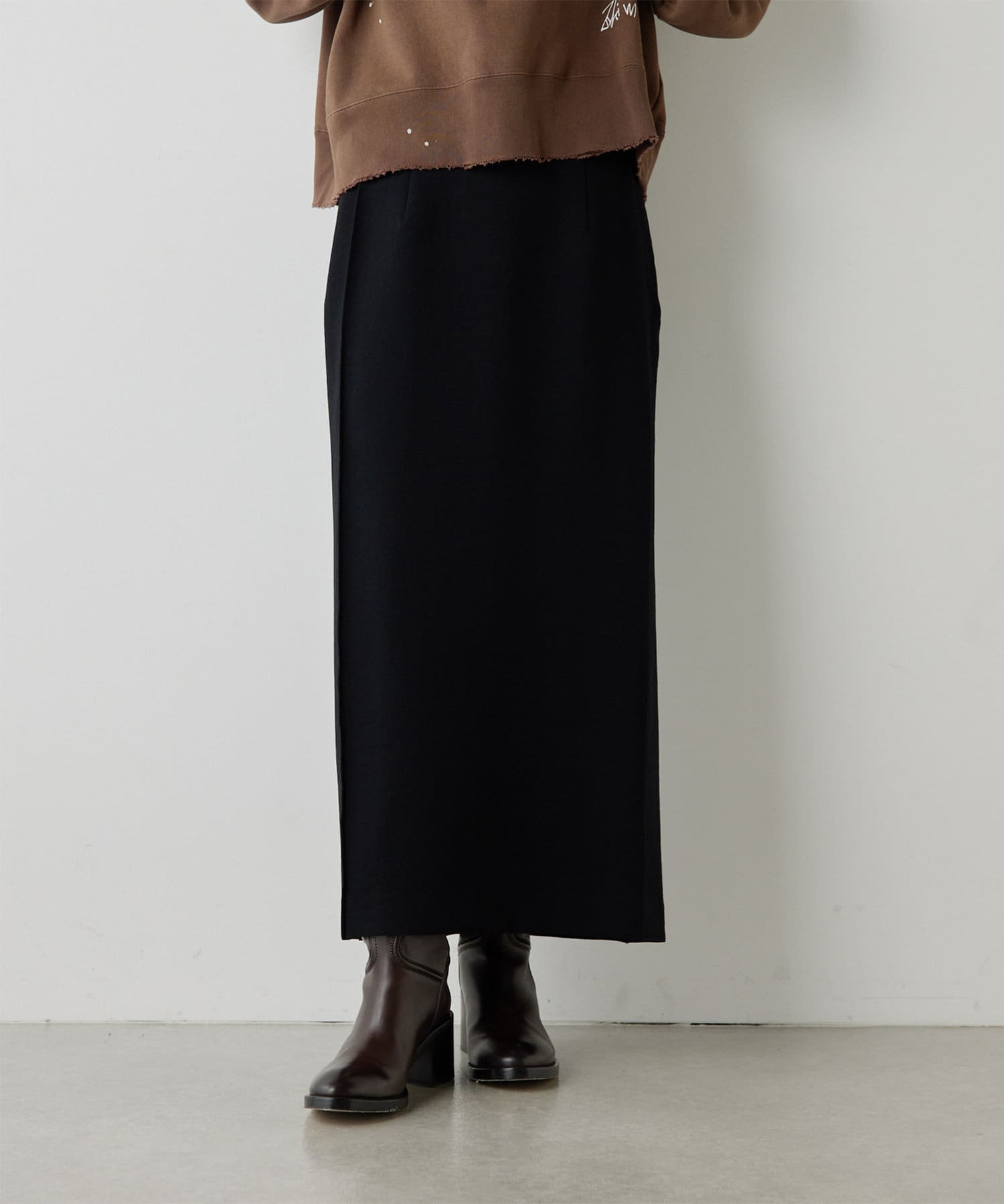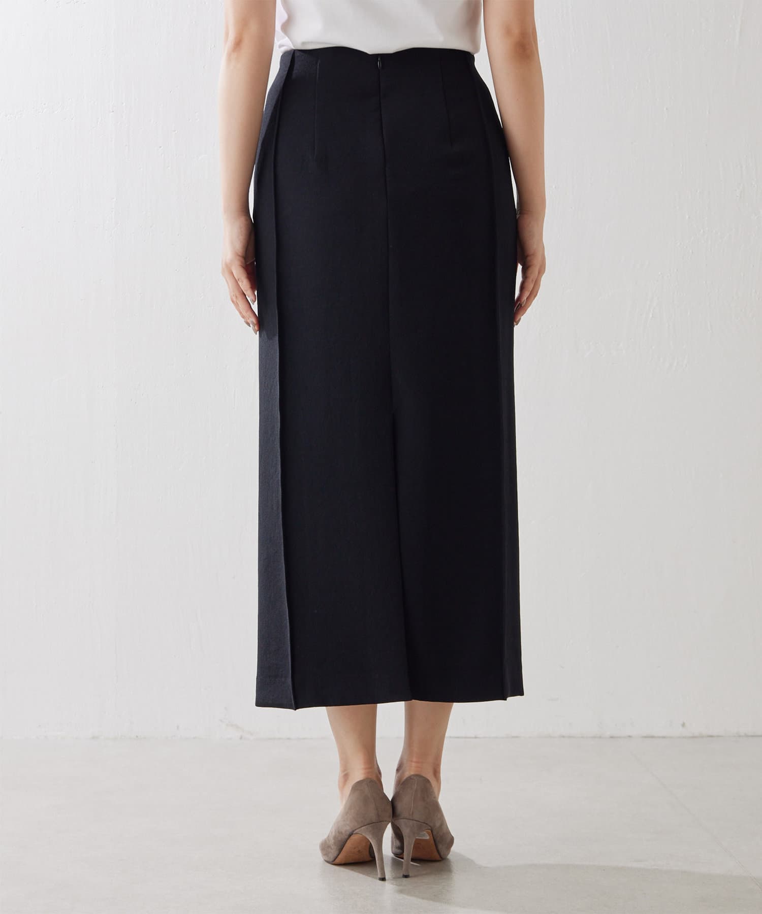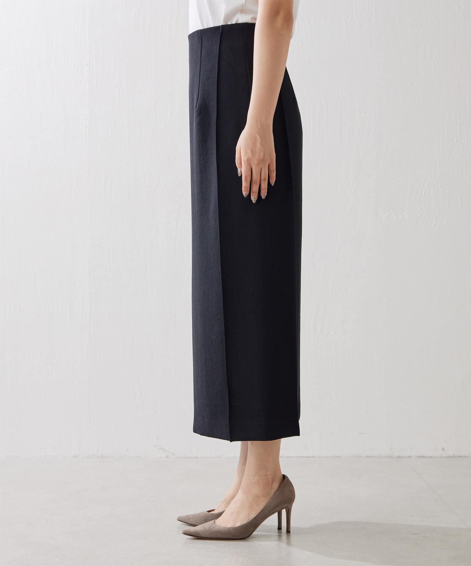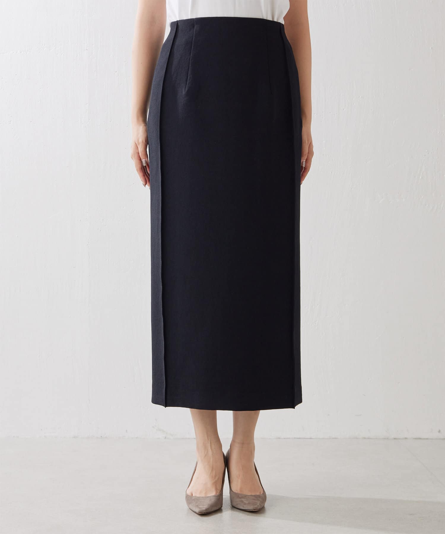 シャープなスクエアシルエットを描くストレートスカート