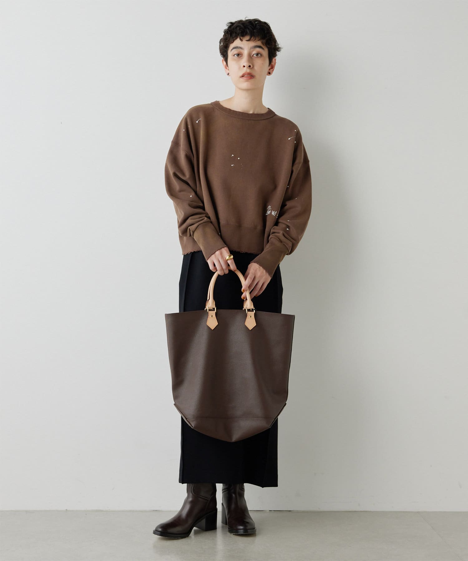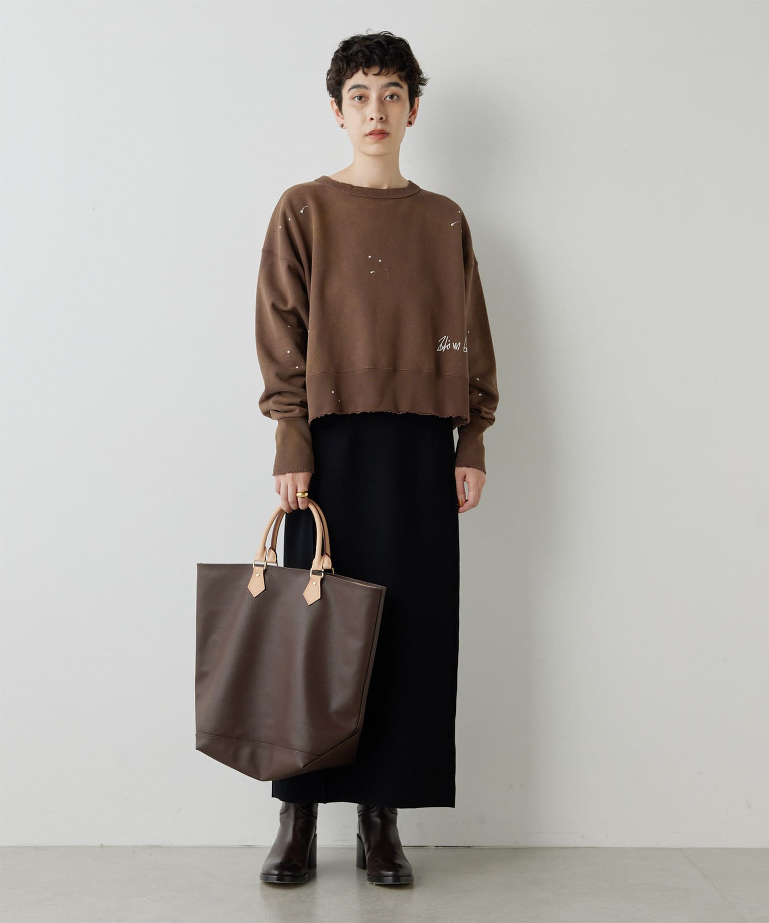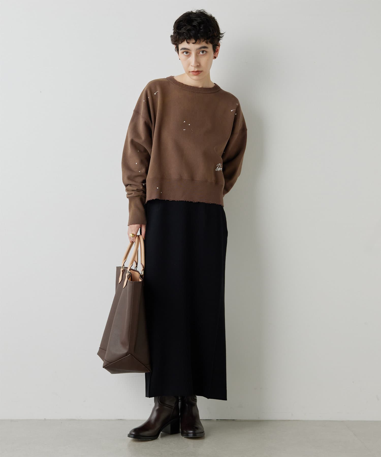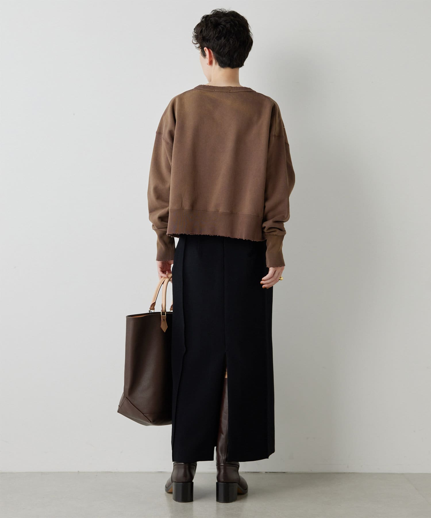 シャープなスクエアシルエットを描くストレートスカート