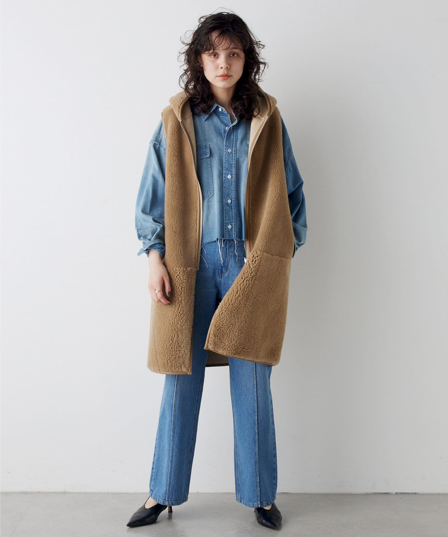 ■単品使いはもちろん、同素材のミニスカートとレイヤードしたり、セットアップ風に楽しむスタイルもおすすめ。