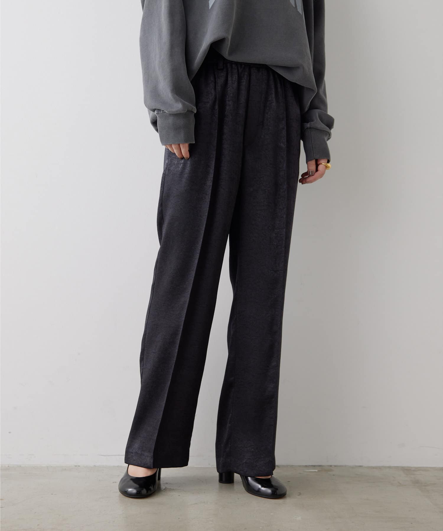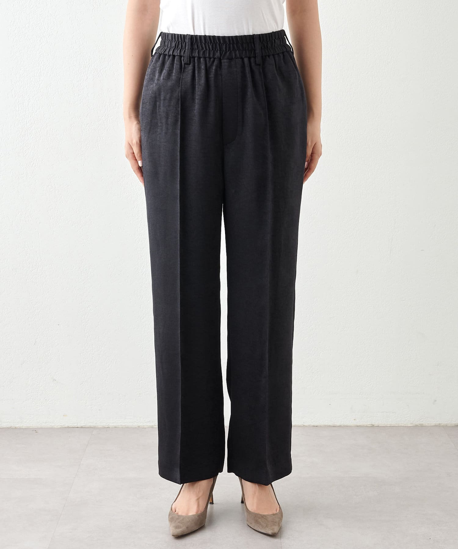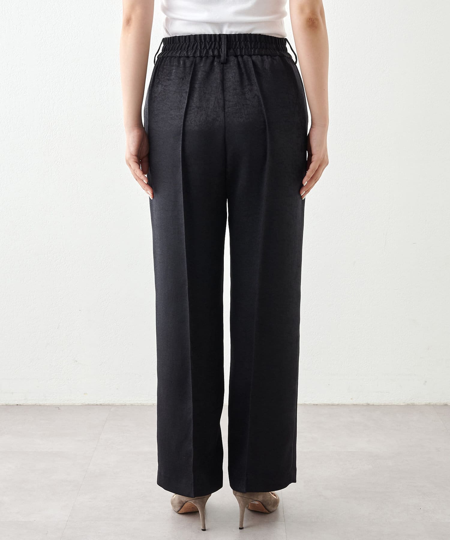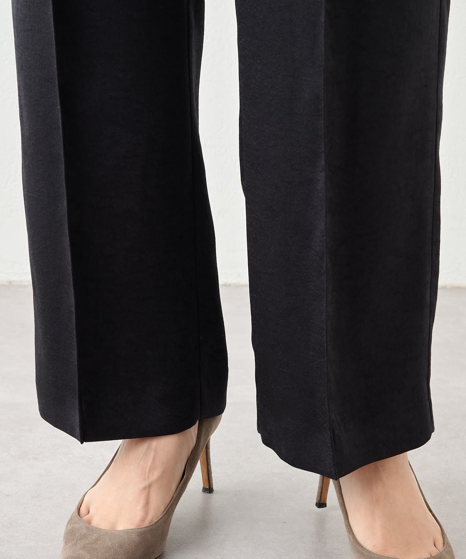 ■上品な光沢感が華やかな印象のストレートパンツ。