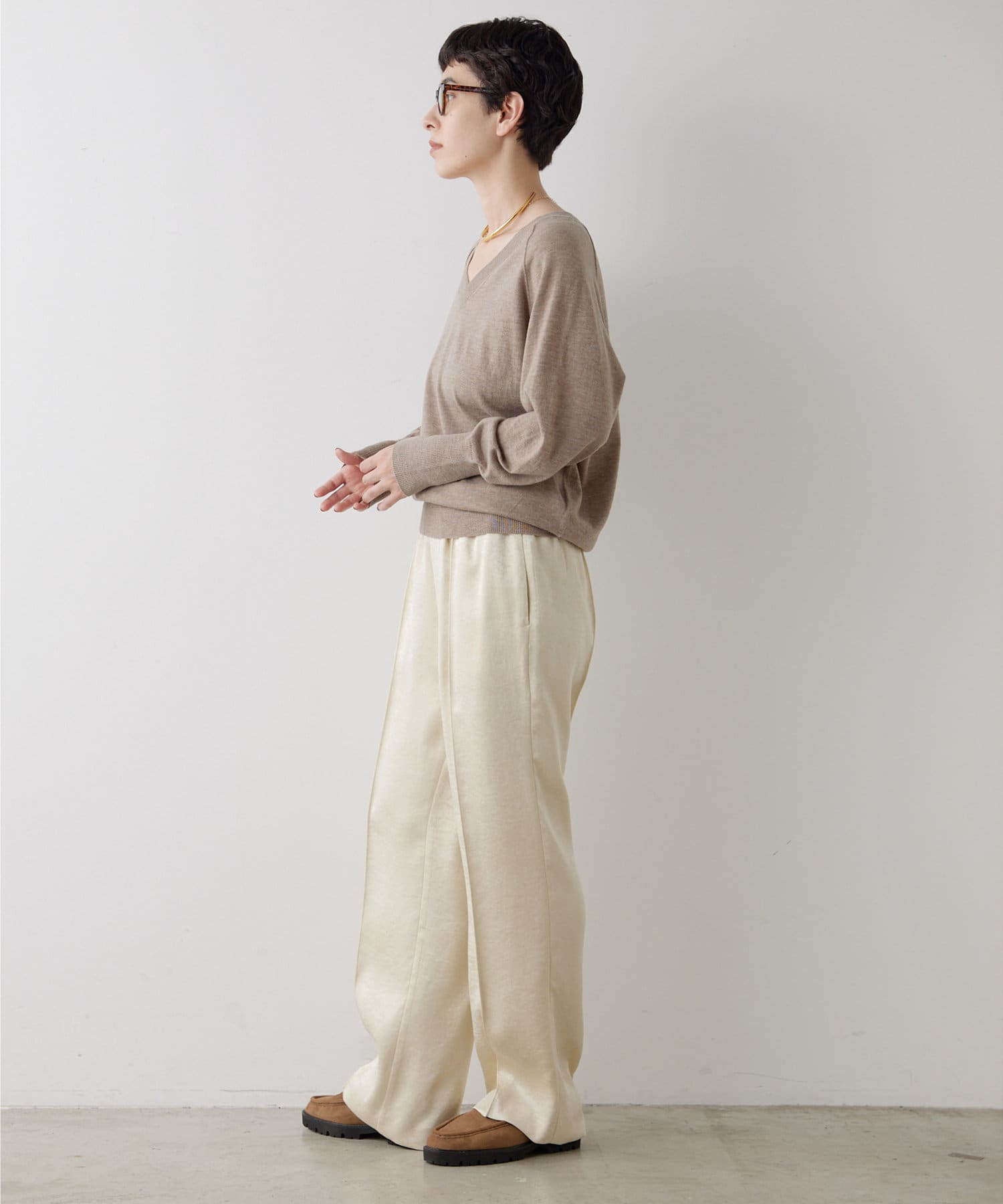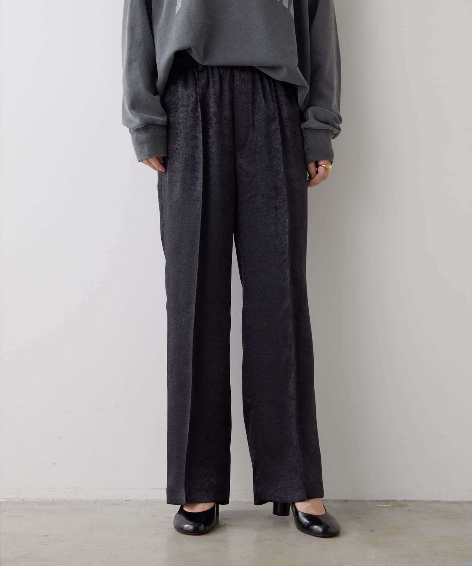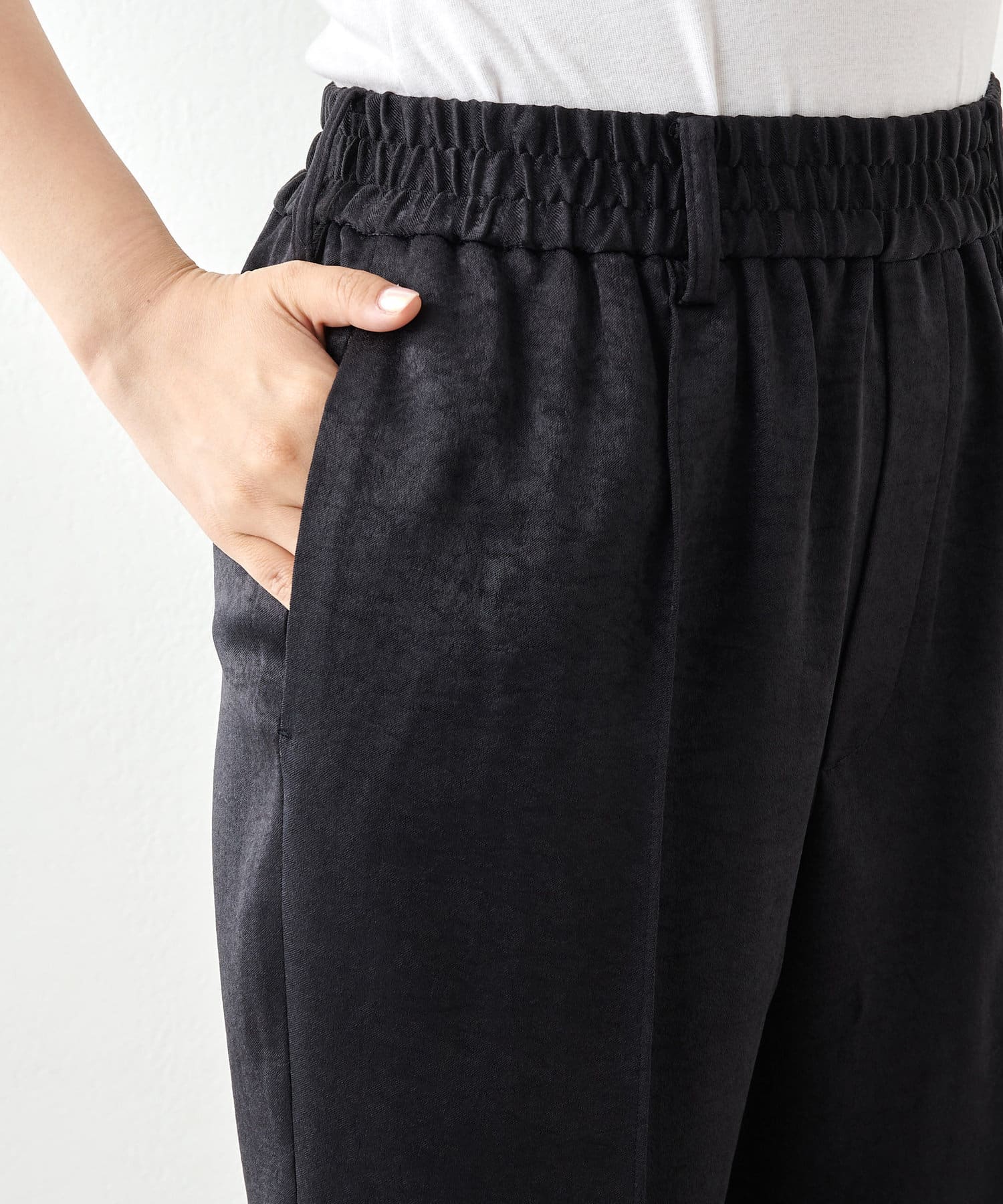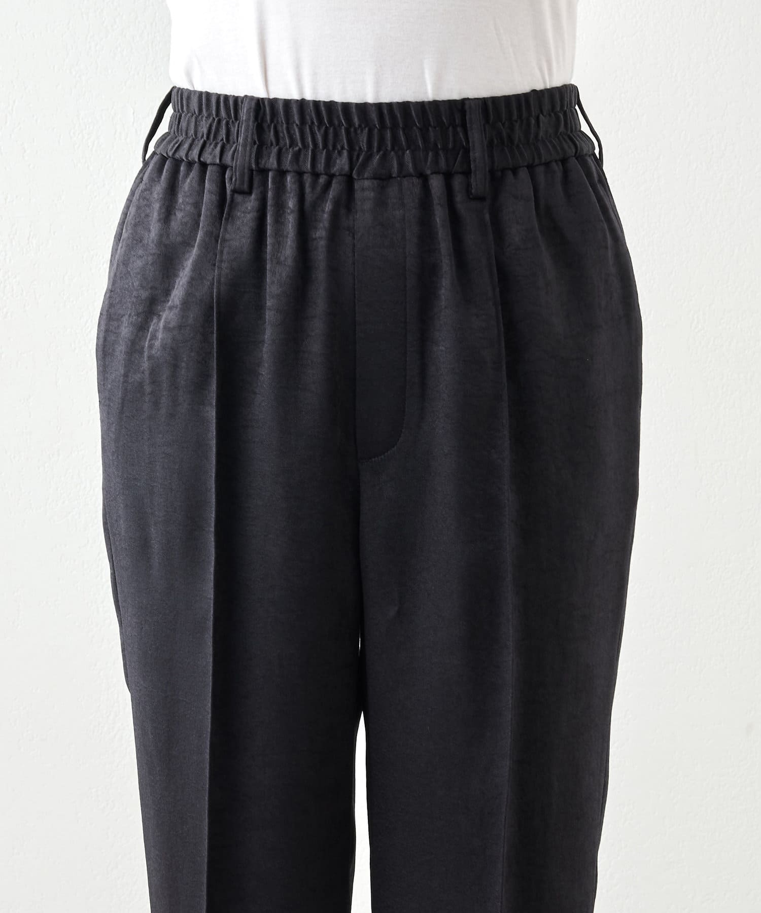 ■上品な光沢感が華やかな印象のストレートパンツ。