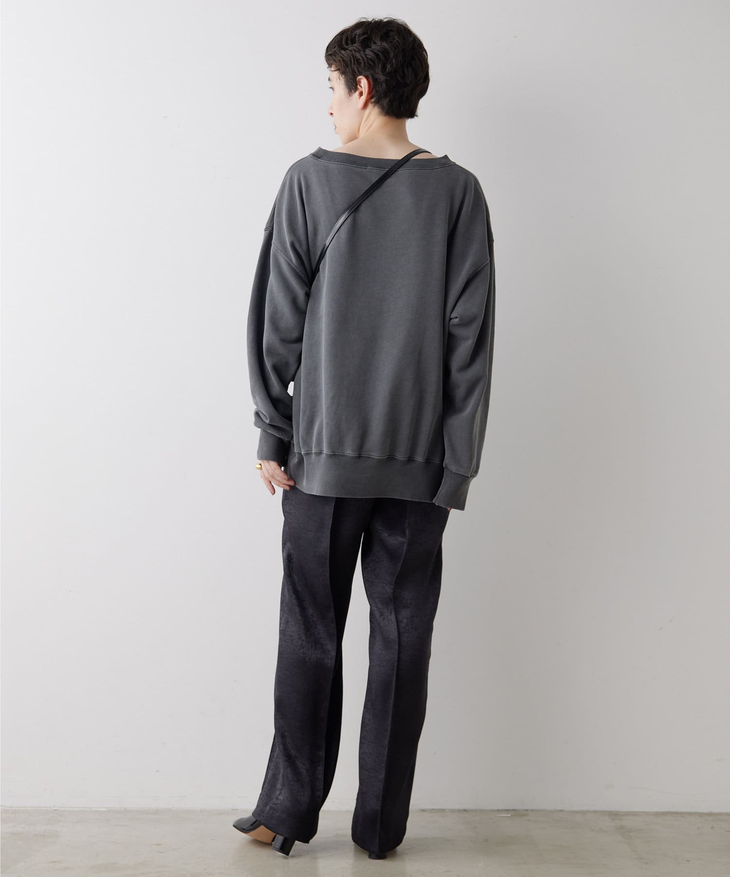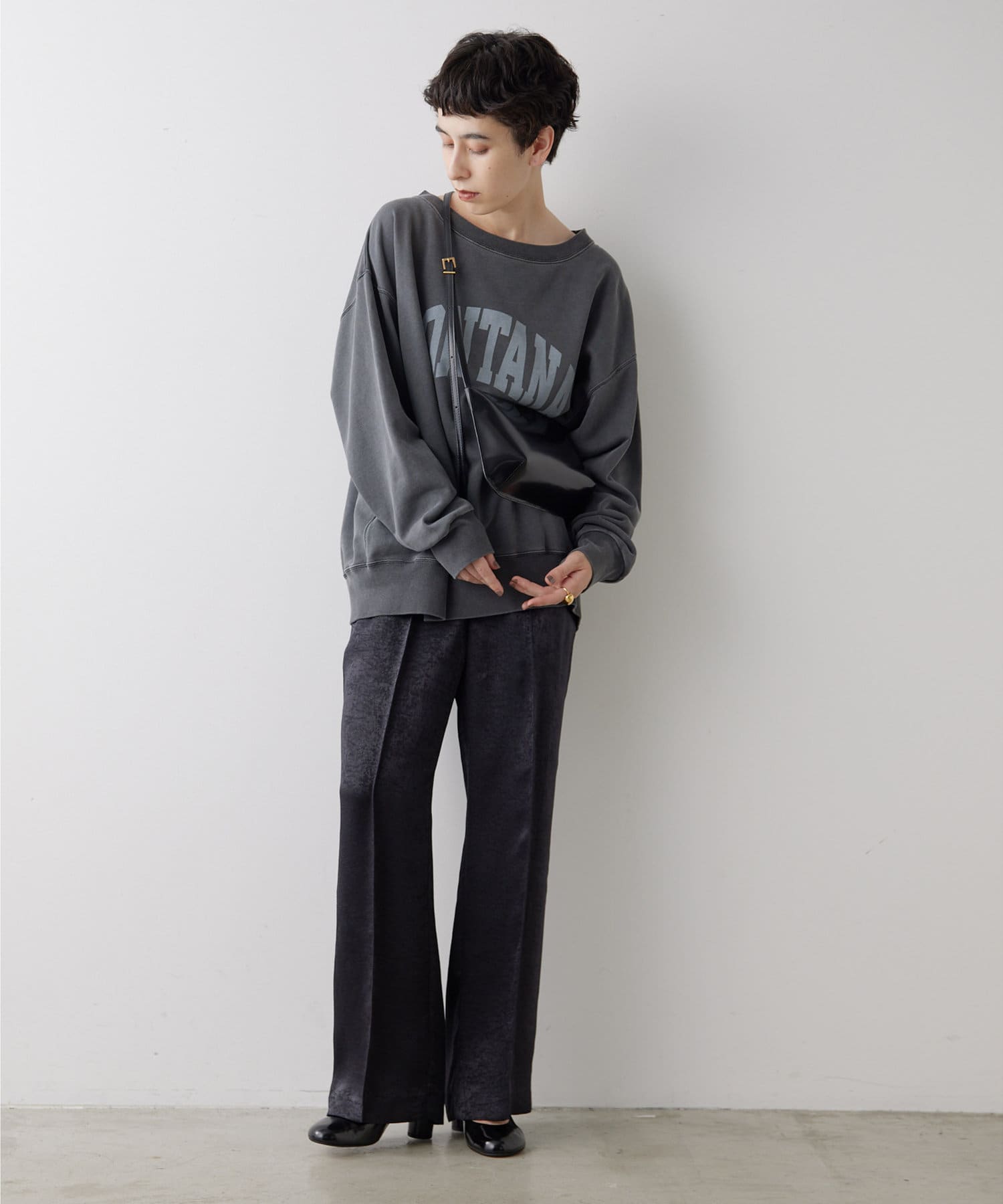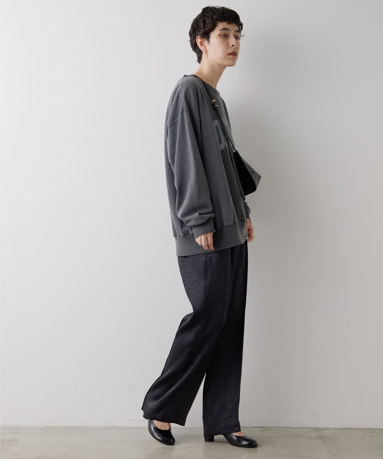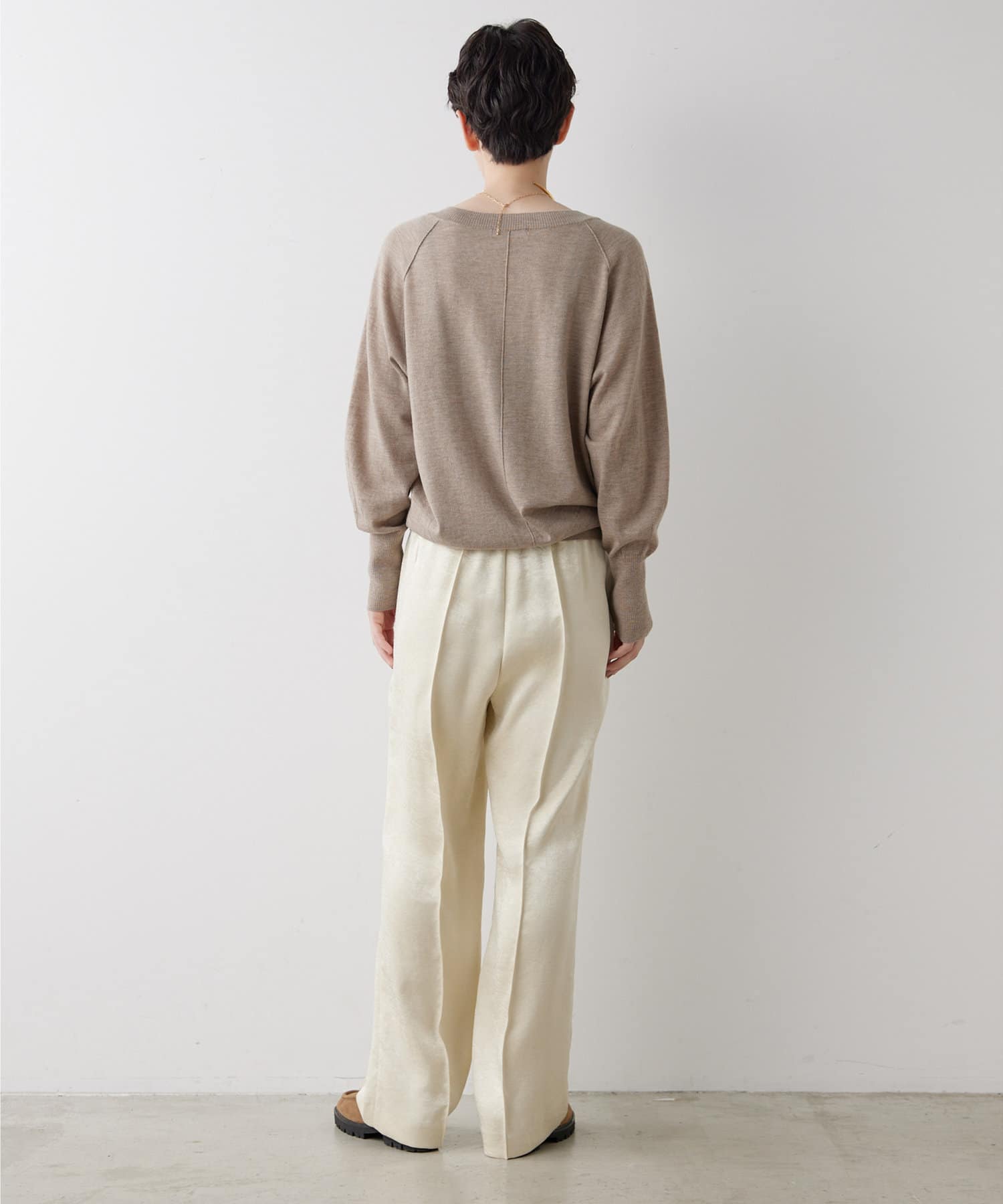 ■上品な光沢感が華やかな印象のストレートパンツ。