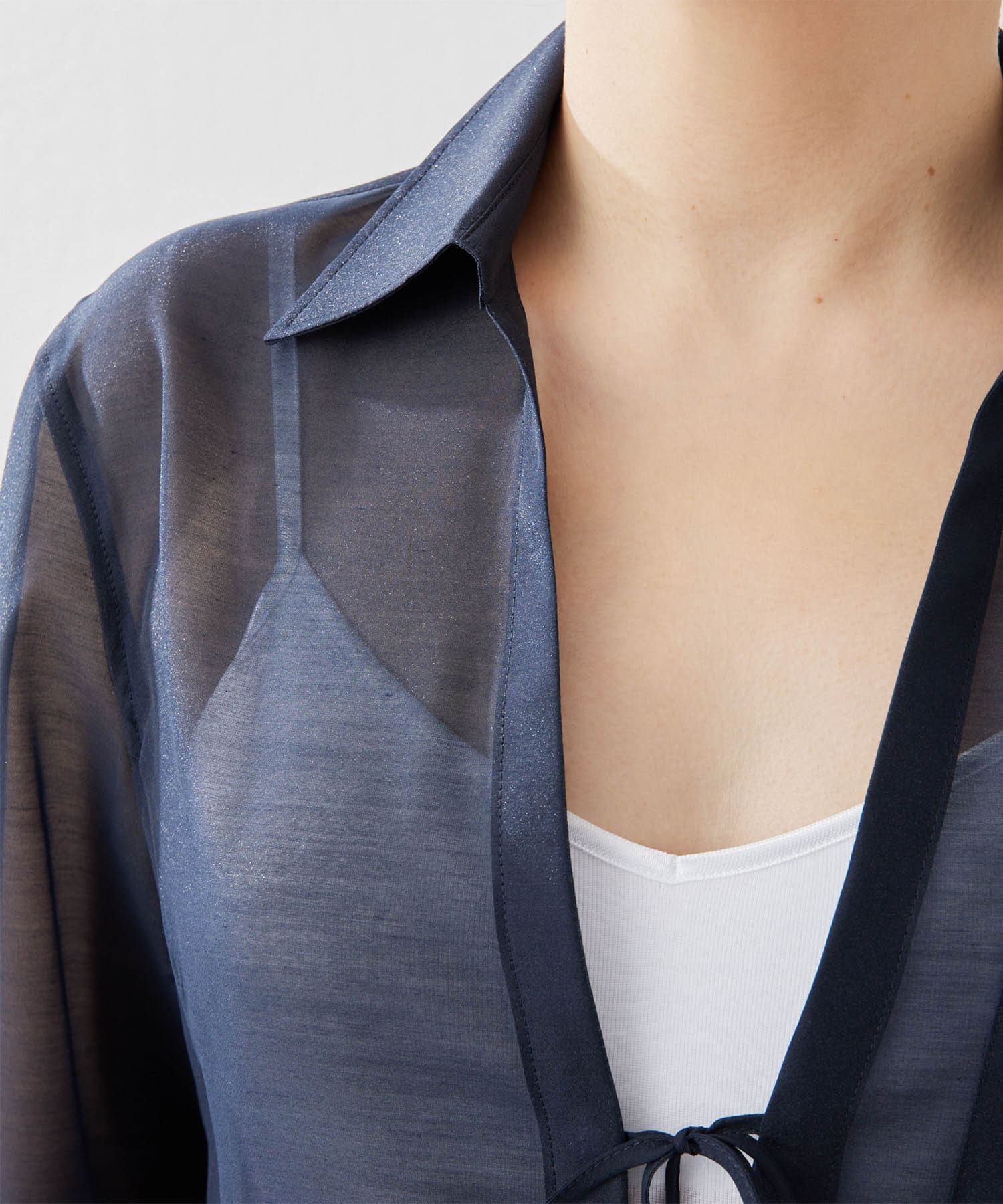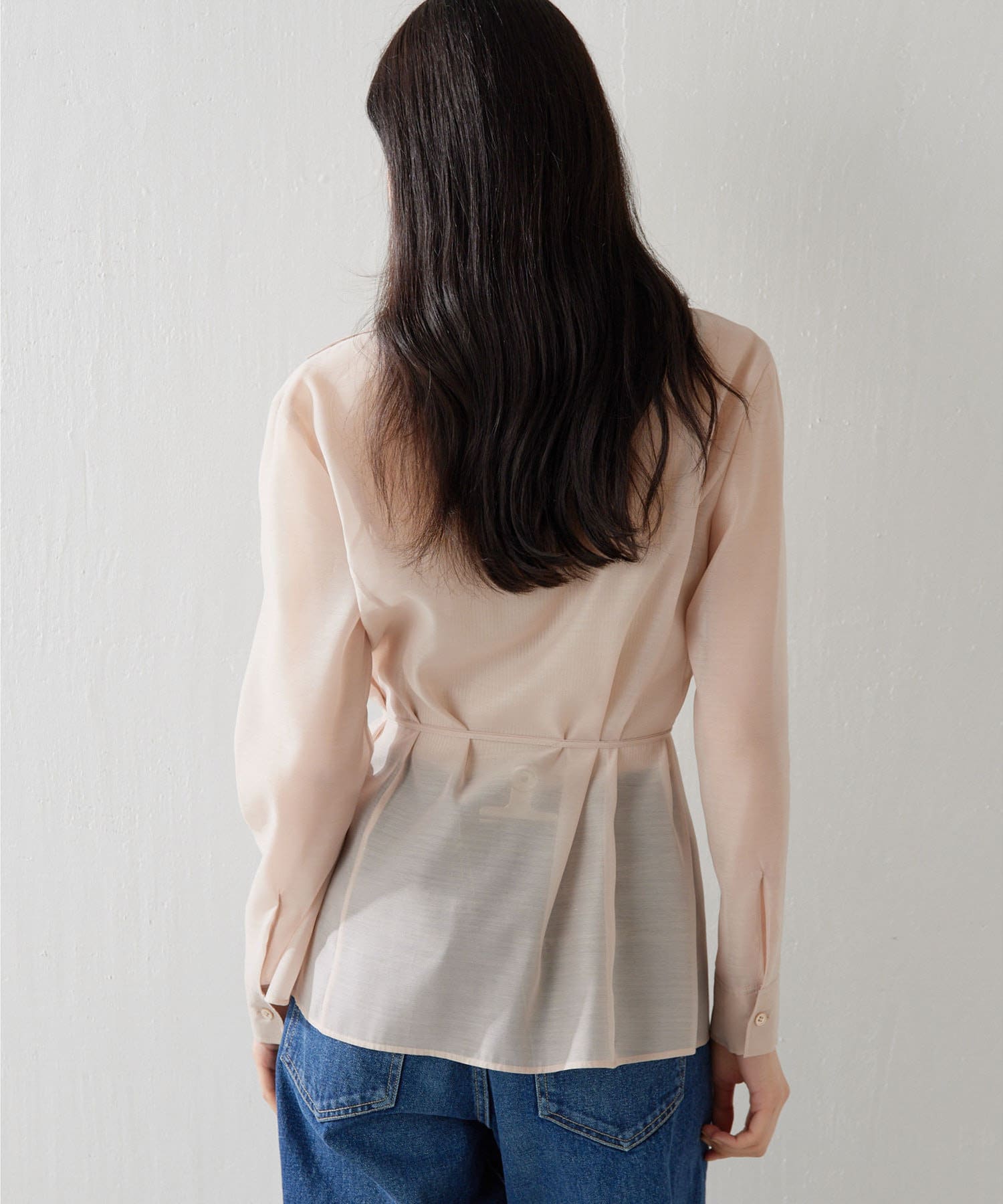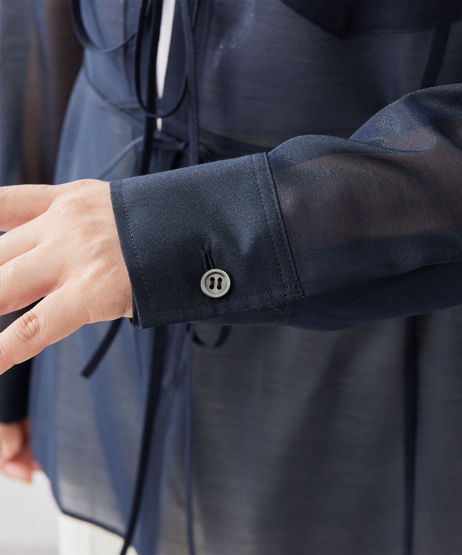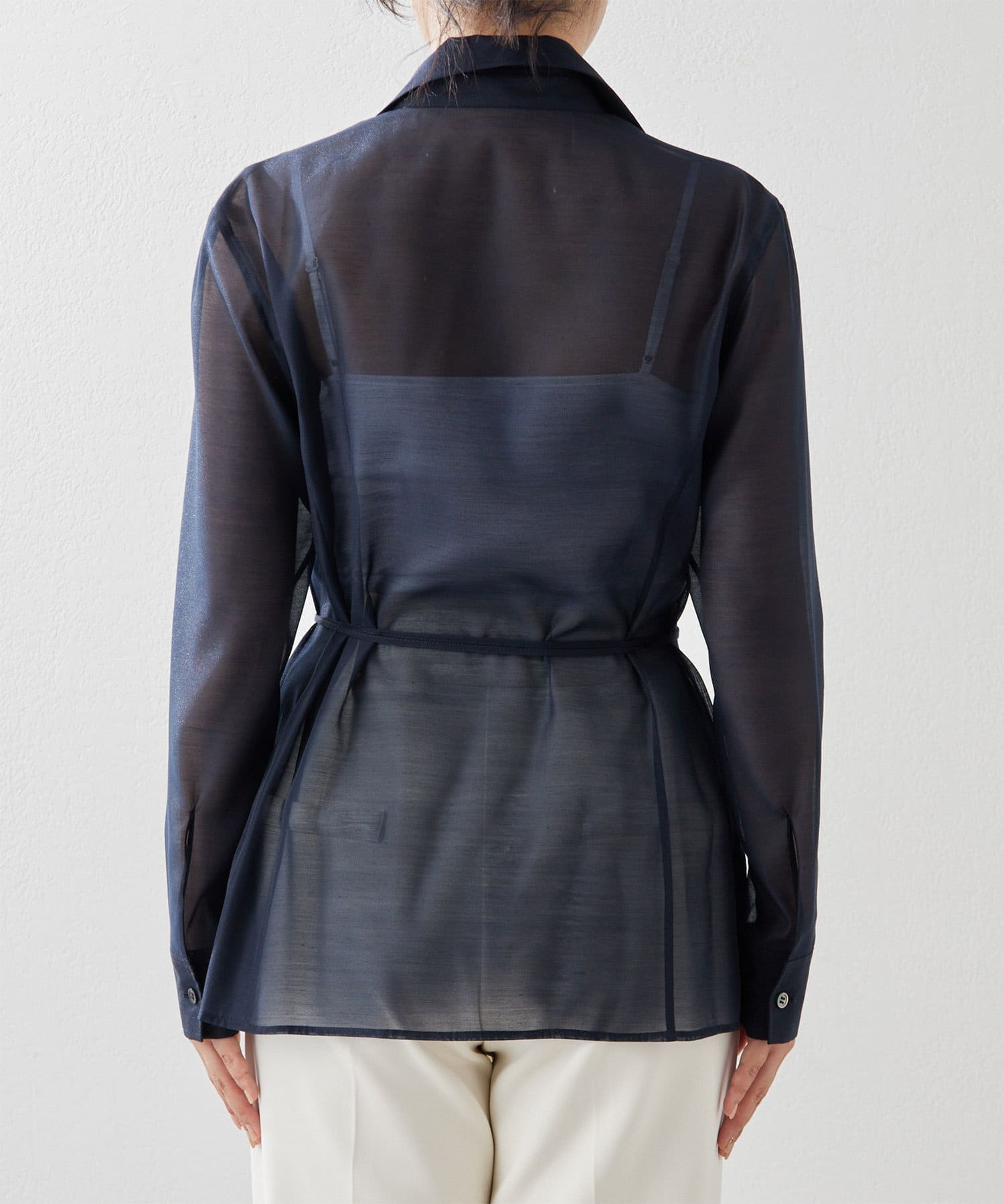 洗練された印象に導く、モダンなオーガンジーシャツ