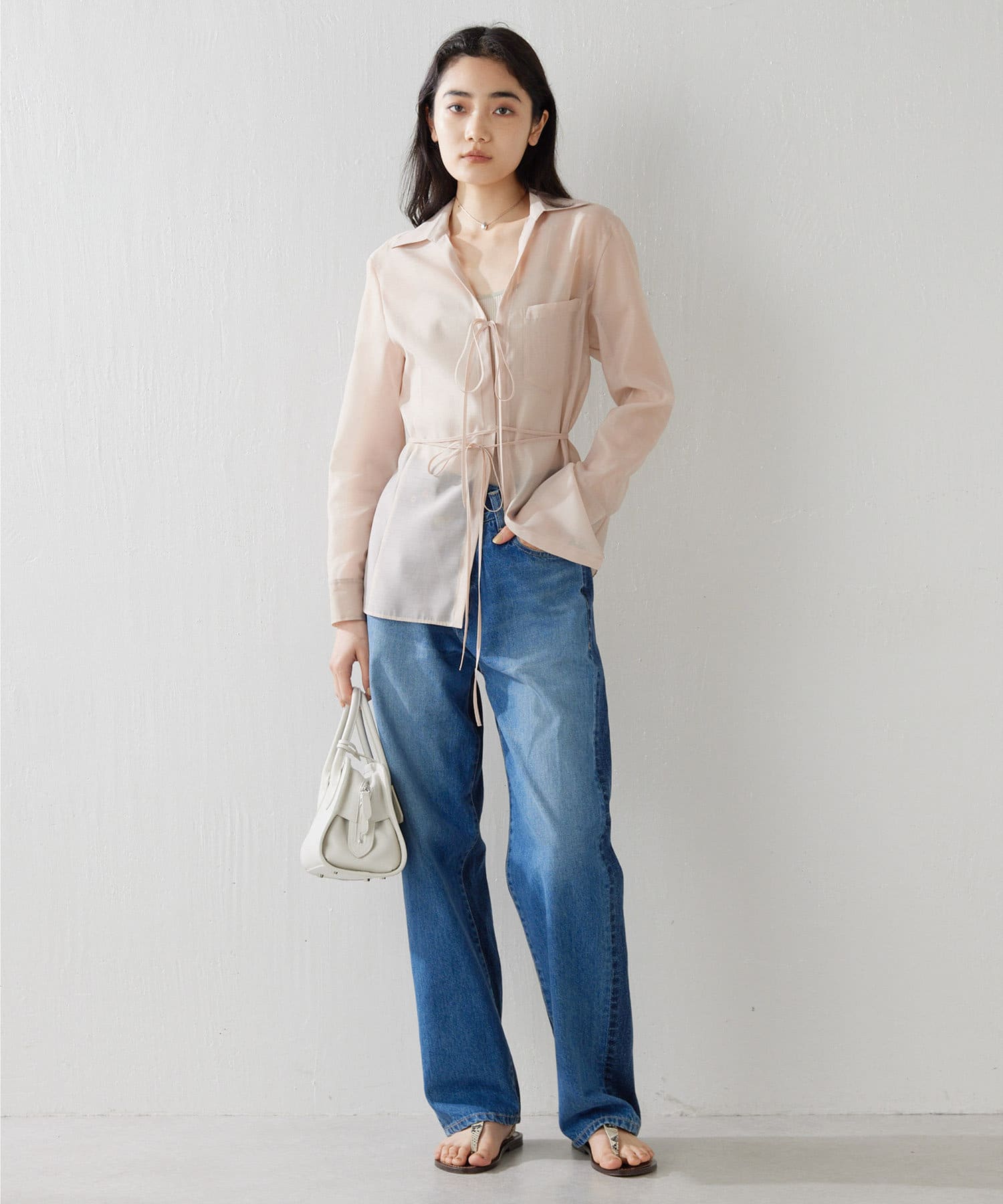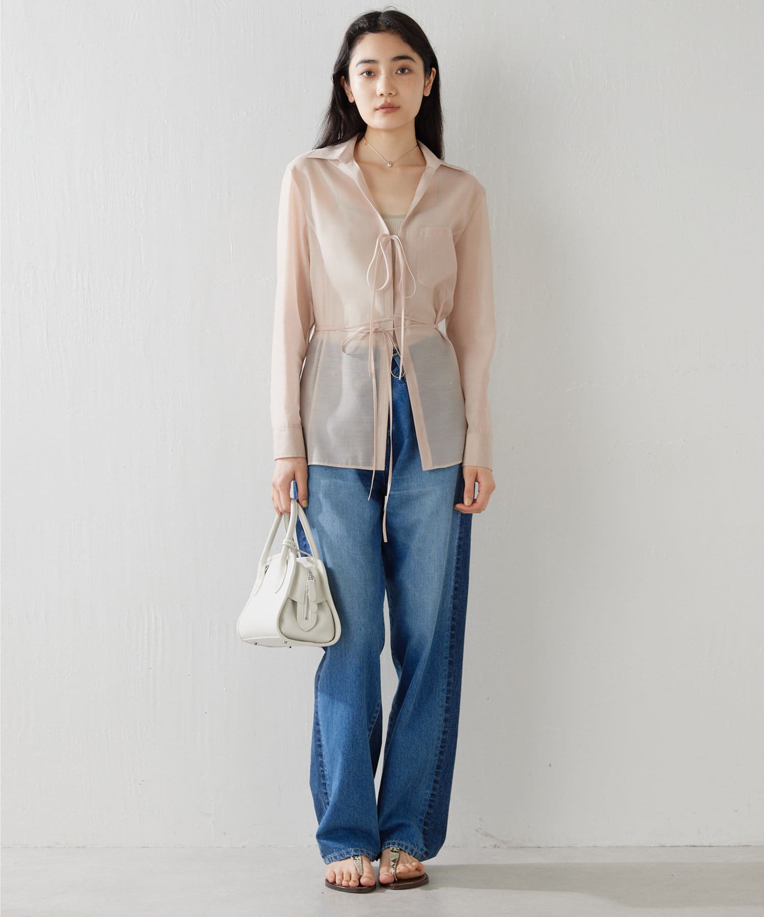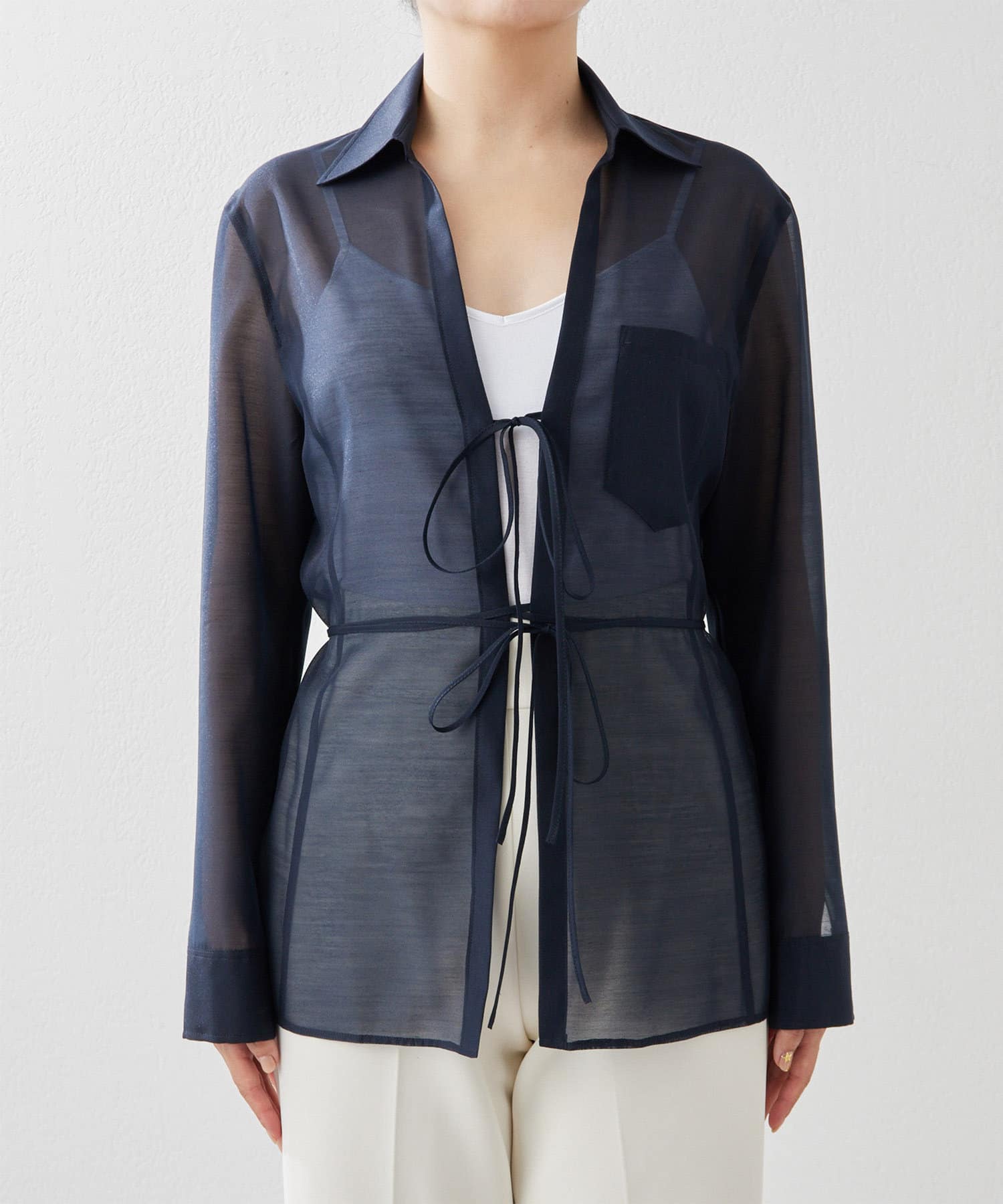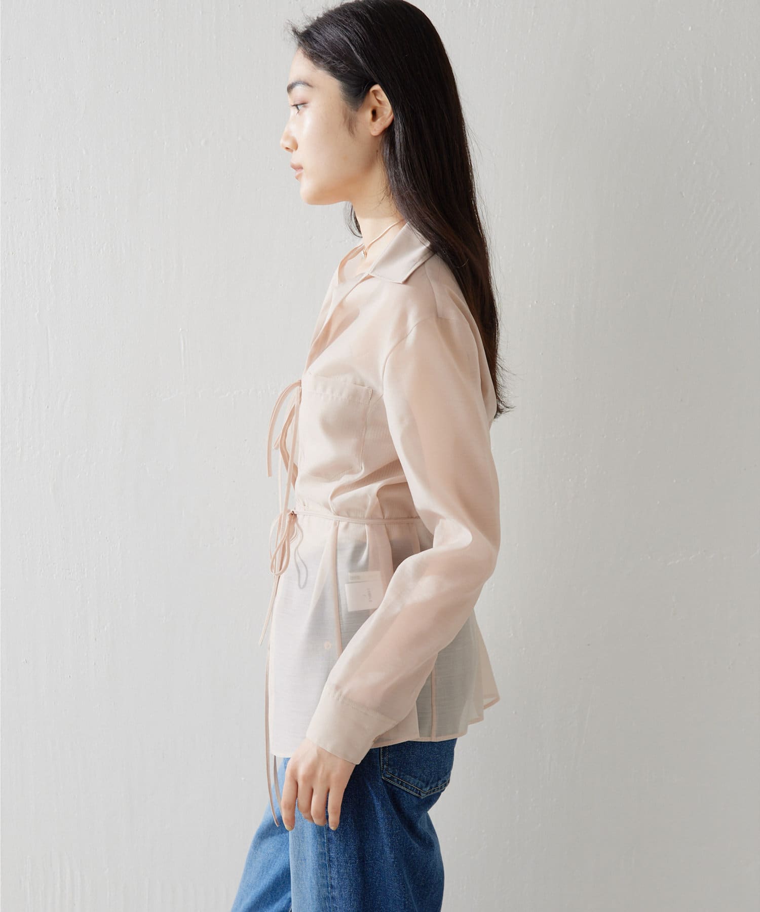 洗練された印象に導く、モダンなオーガンジーシャツ