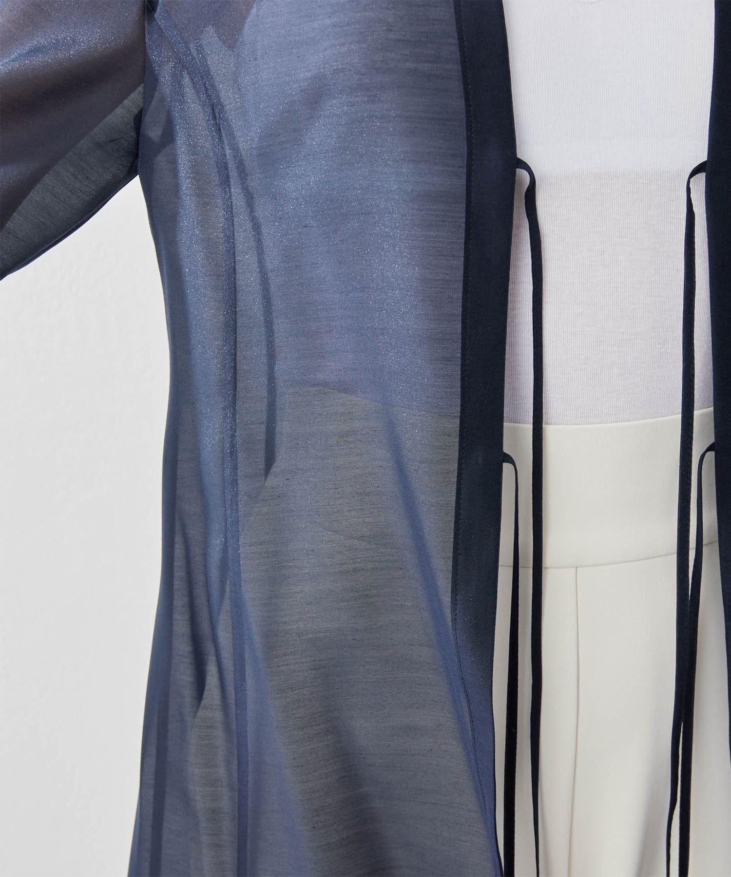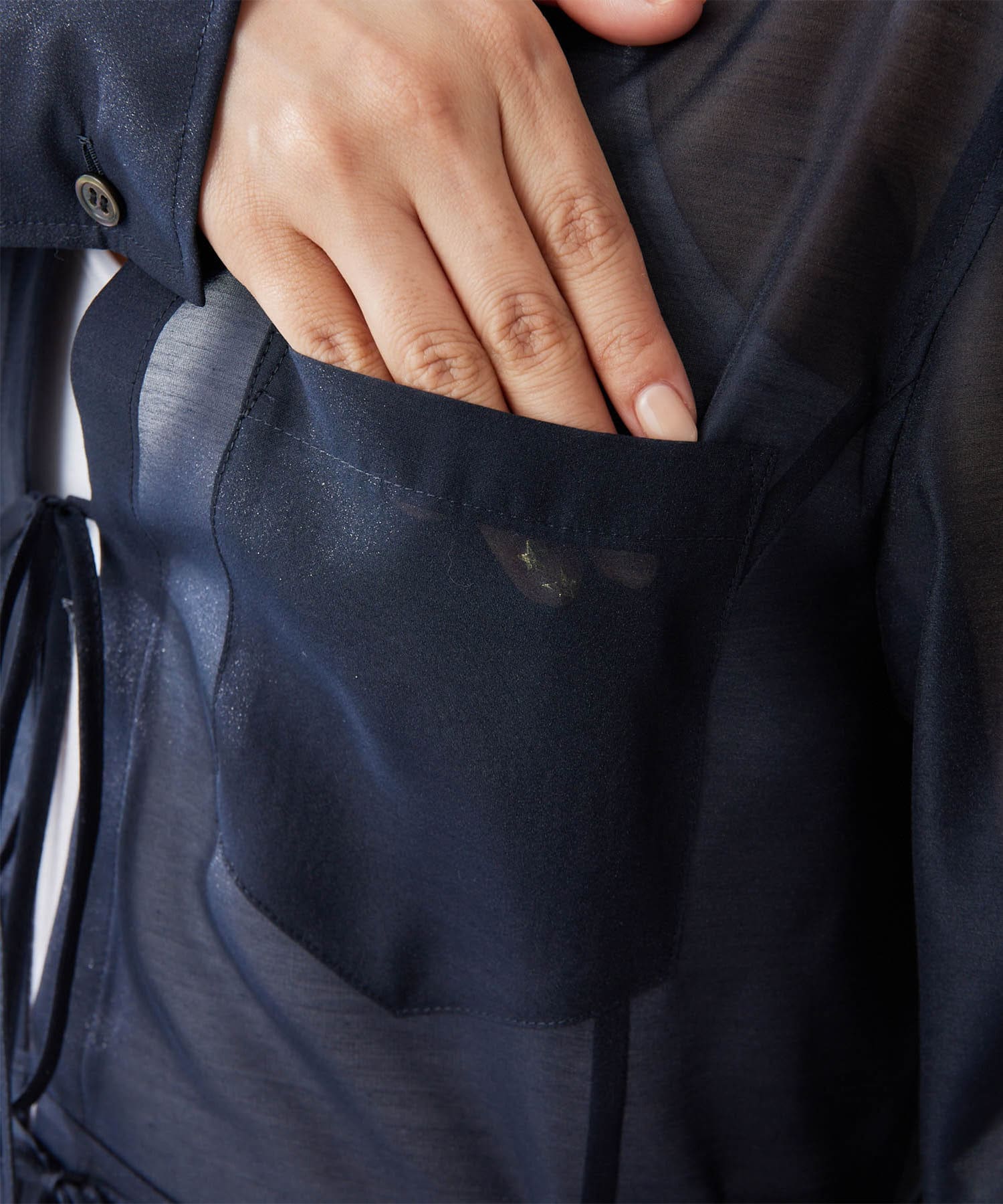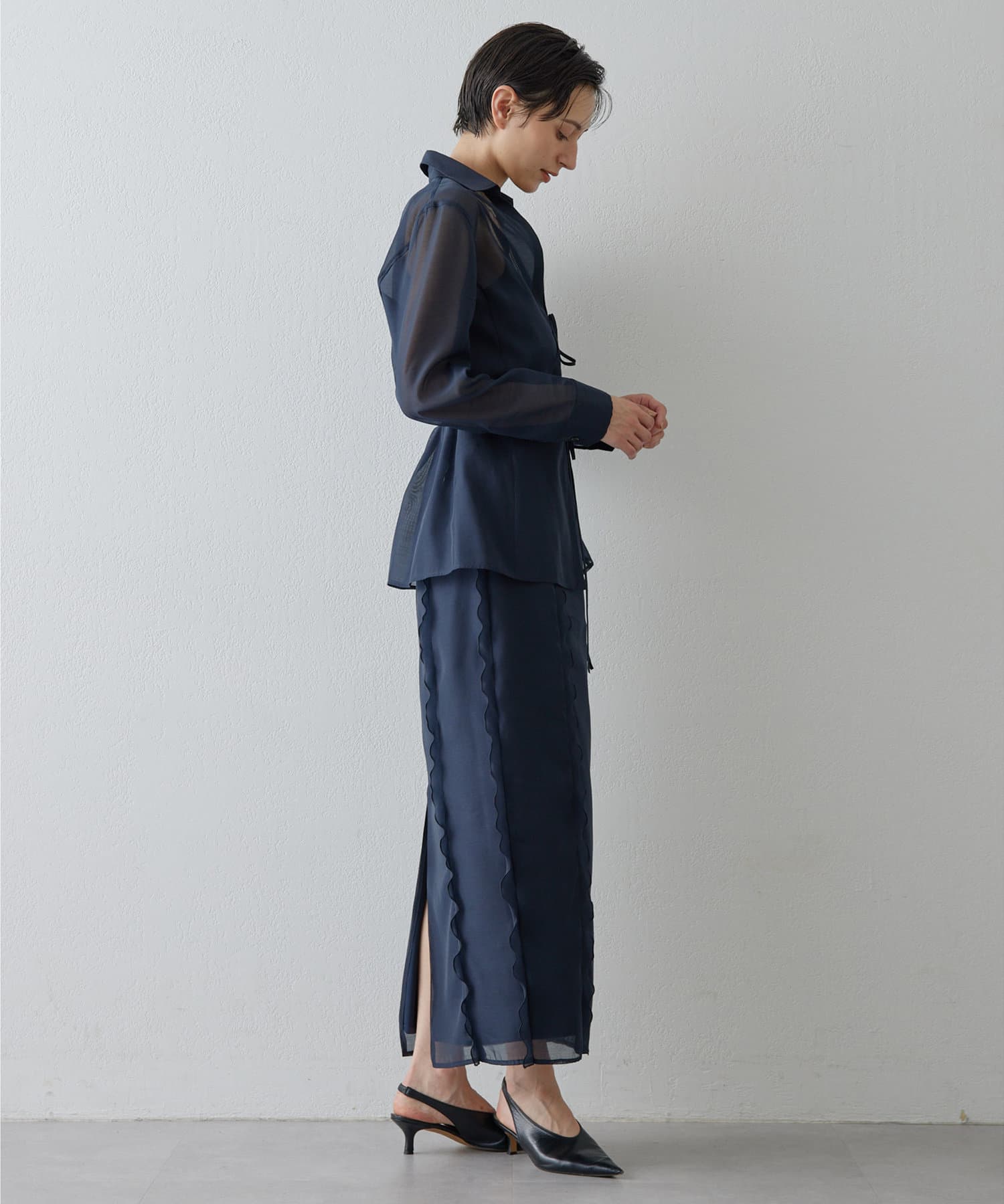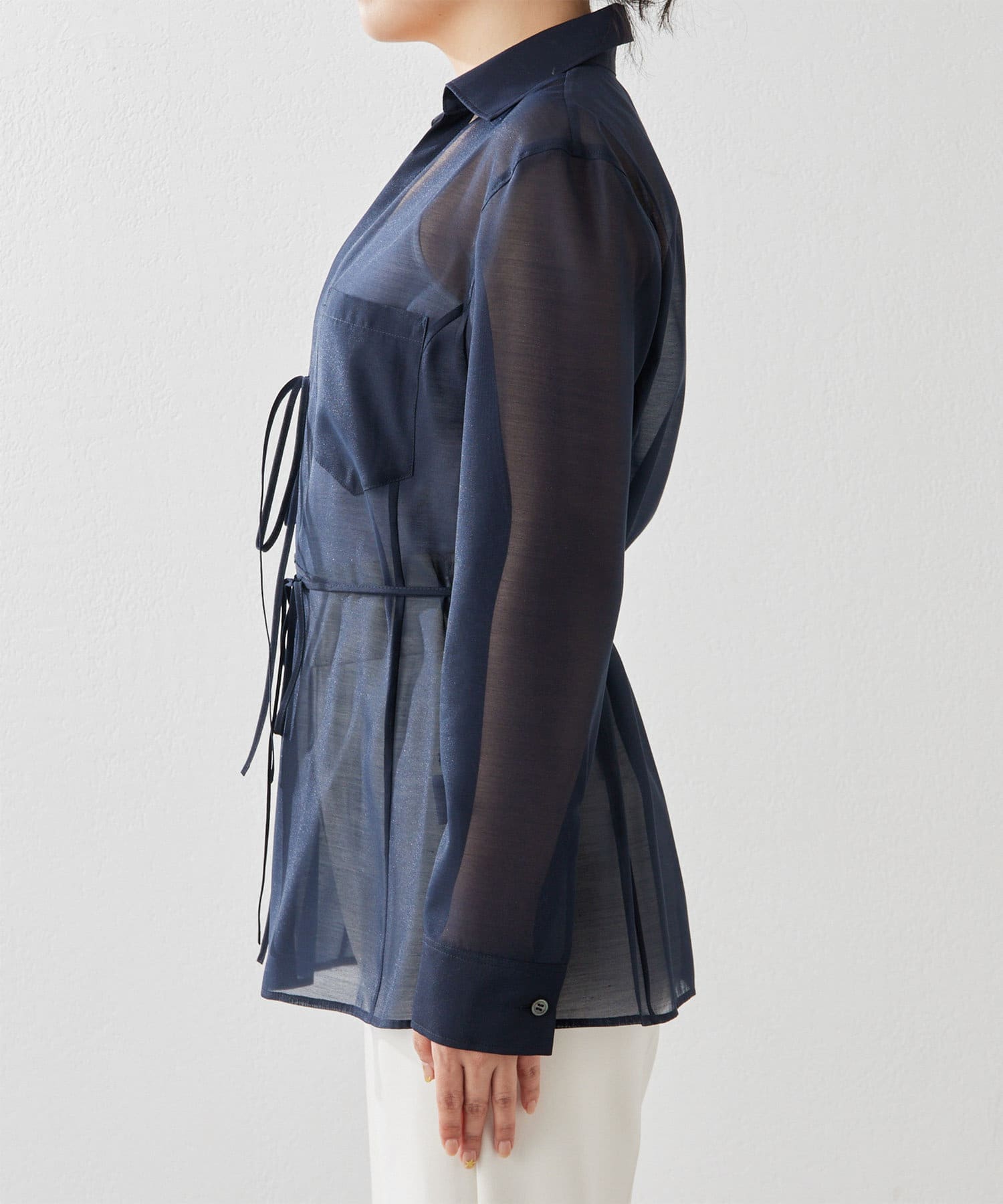洗練された印象に導く、モダンなオーガンジーシャツ