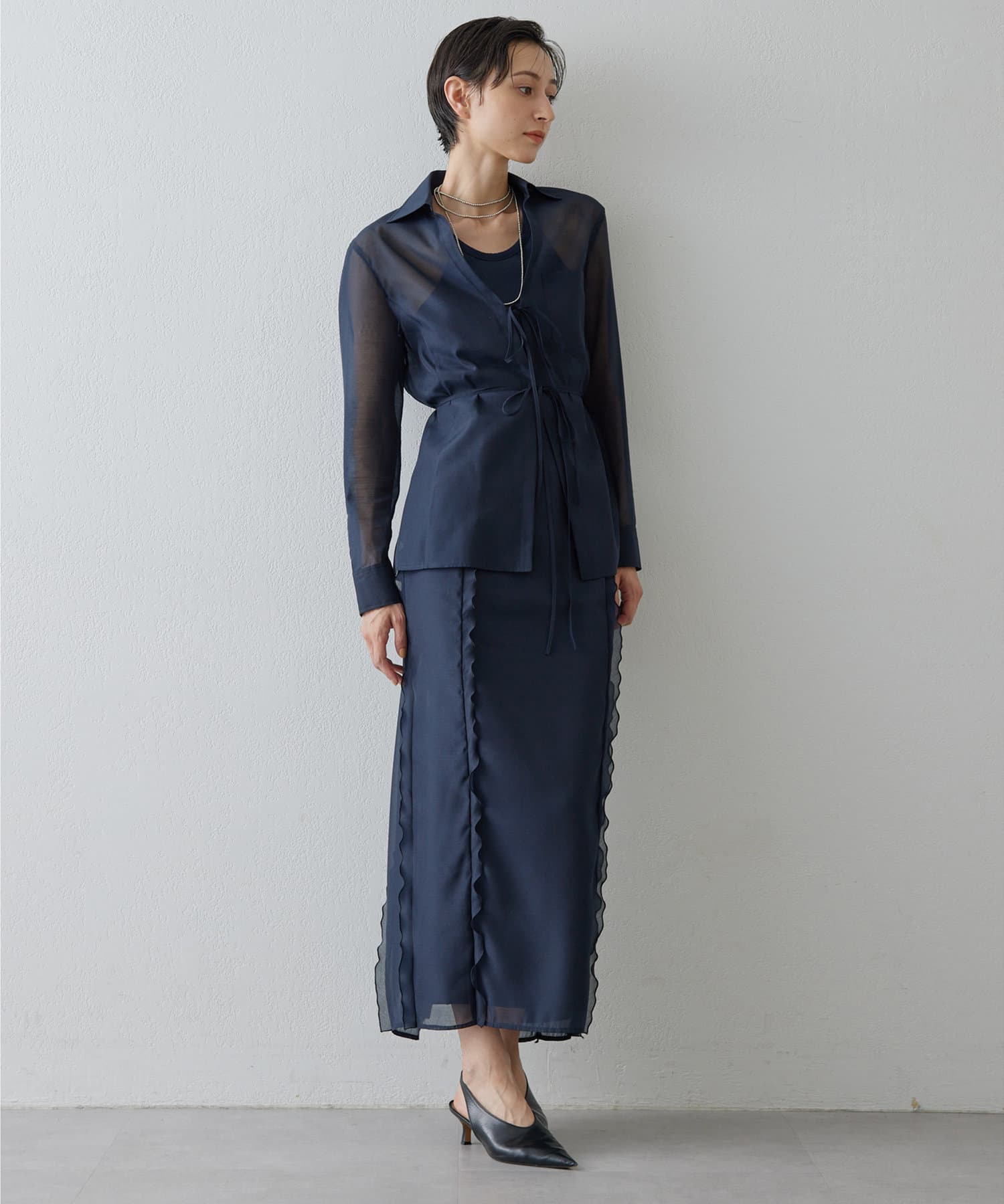 ■同素材のオーガンジーフリルスカート(ブランド品番:WGZ1042101A0005)とのセットアップもおすすめ。
